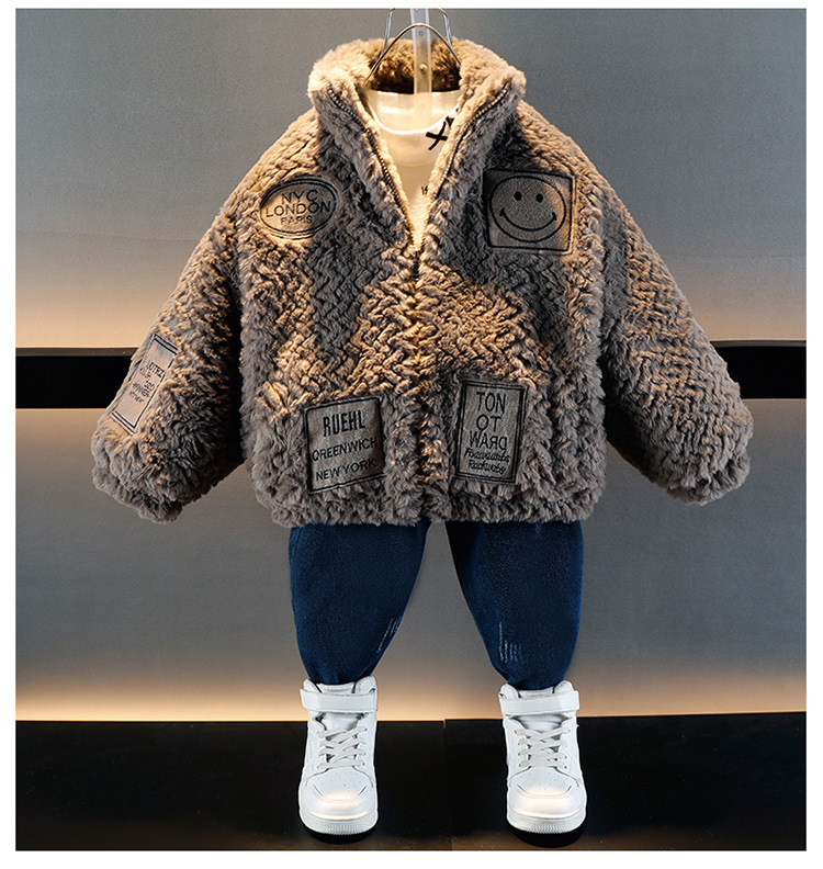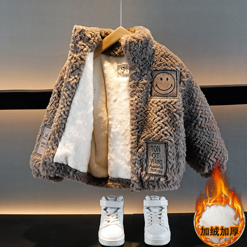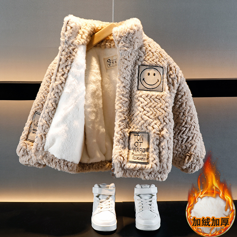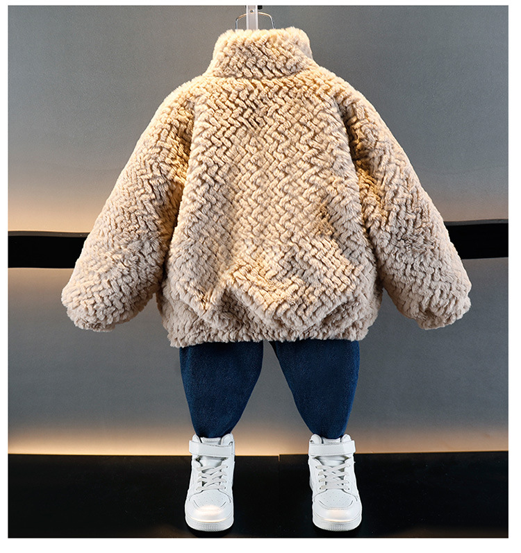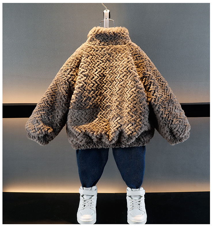 소년의 가을과 겨울 푹신한 스웨터 코트 2024 새로운 아기 유행 서양식 어린이 두꺼운 겨울 코트스토어 가기