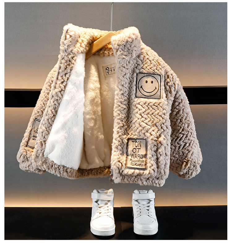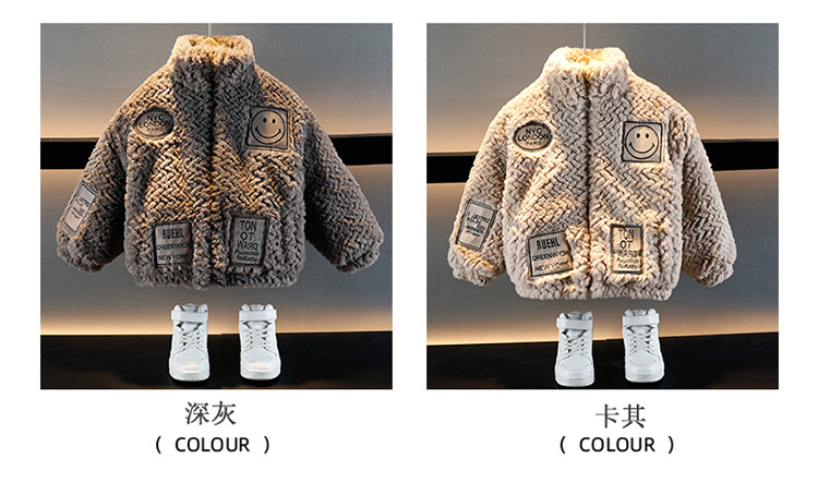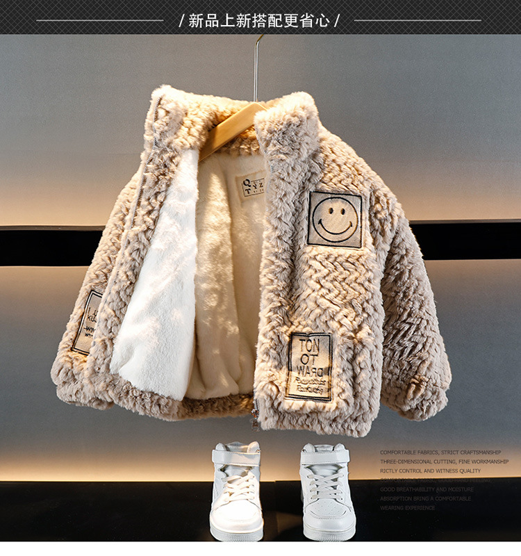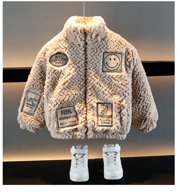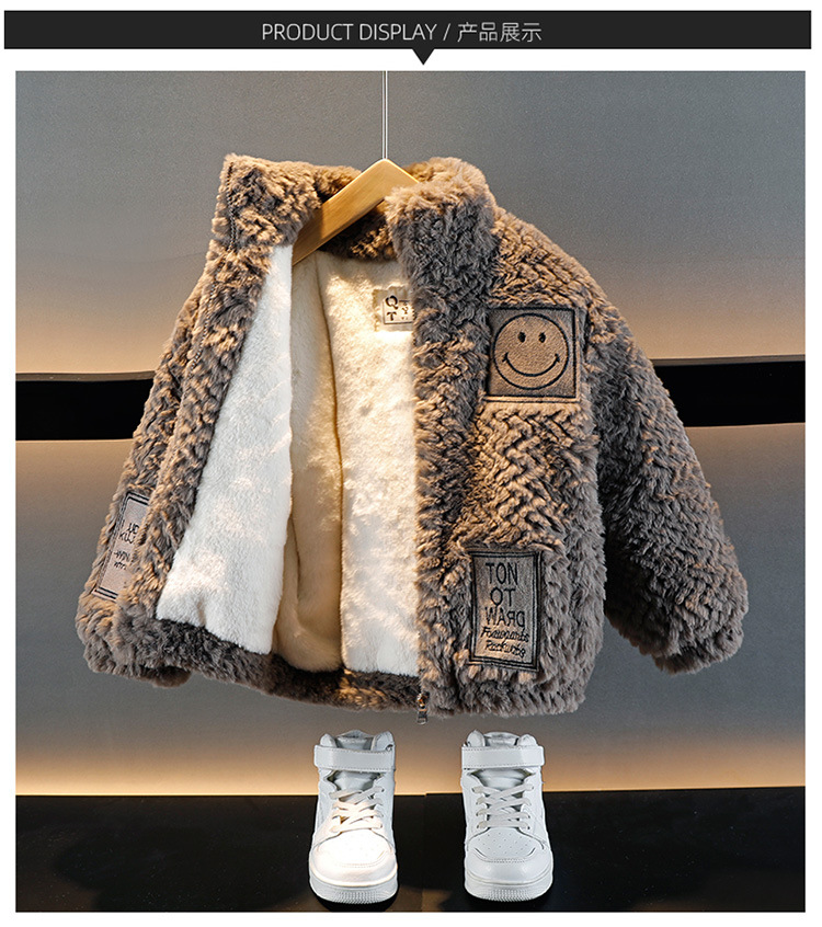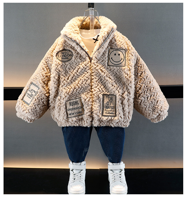 소년의 가을과 겨울 푹신한 스웨터 코트 2024 새로운 아기 유행 서양식 어린이 두꺼운 겨울 코트스토어 가기