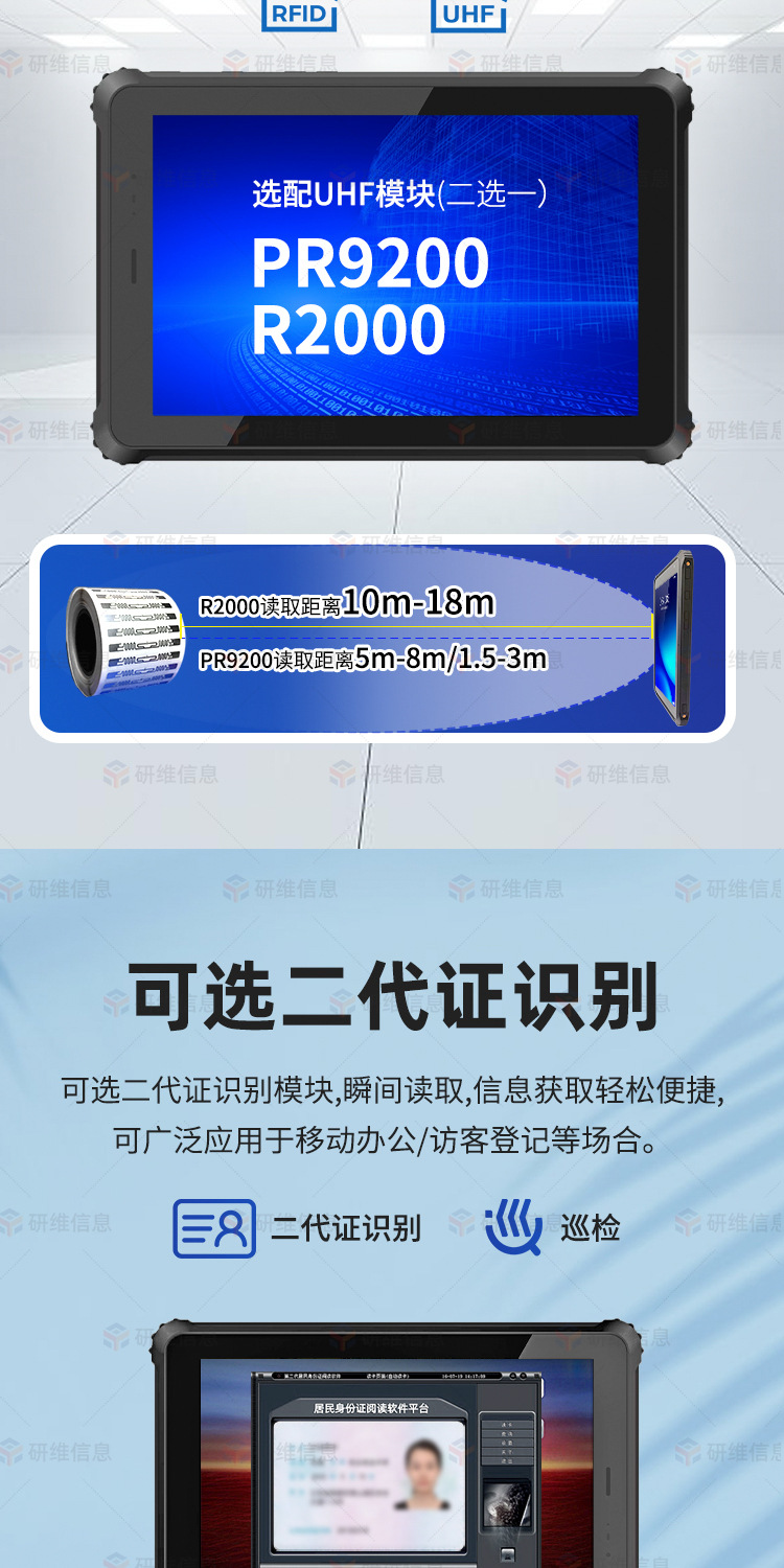 超高频(PR9200,距离1:1.5M-3M:距离2:5M-8M或者 R2000,距离10M-18M 二选一)