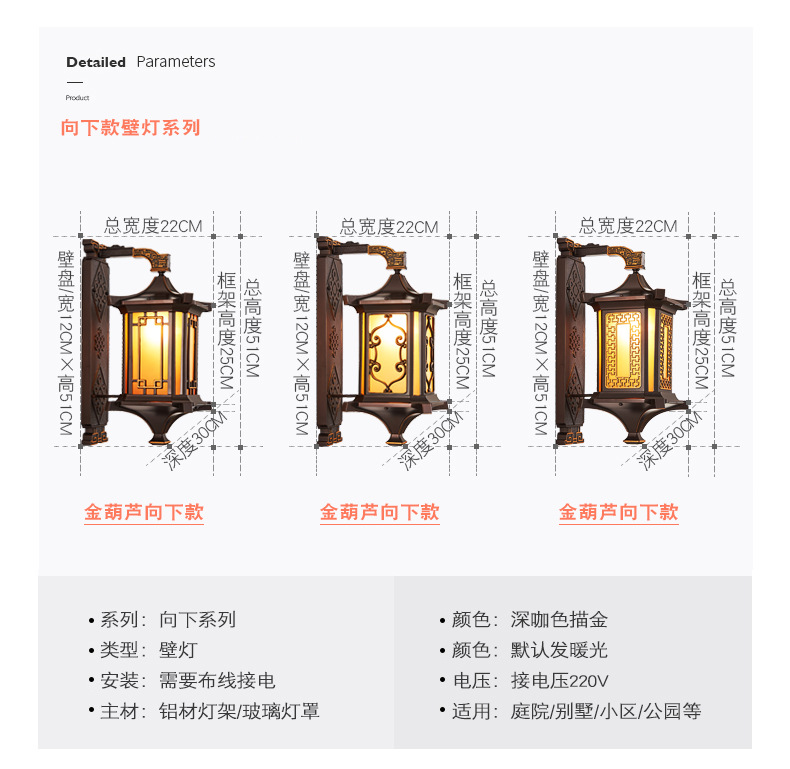 • 황금 조롱박 벽 램프 [하향-갈색 유리] 새로운 스타일