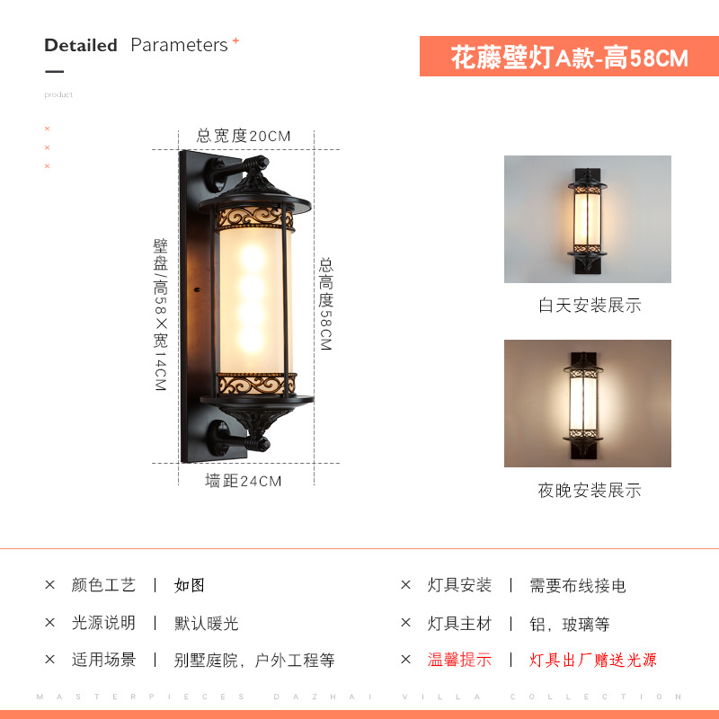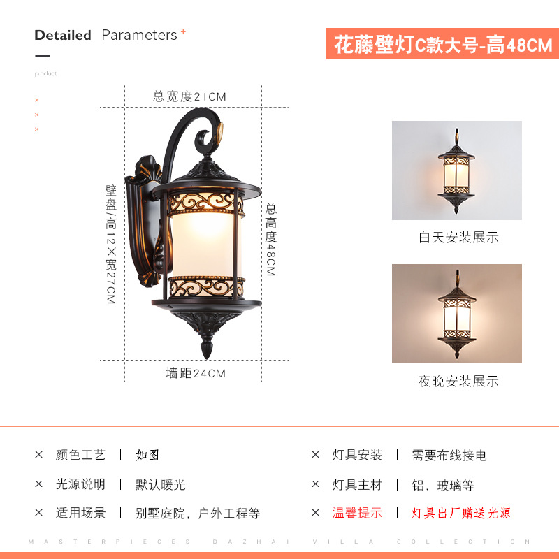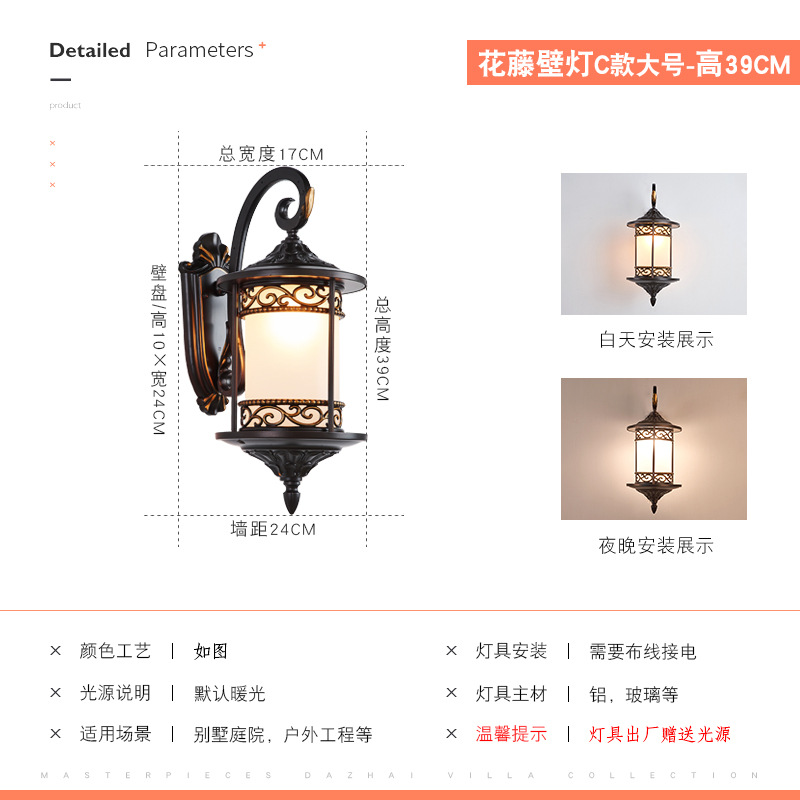 유럽 스타일의 야외 벽 램프 방수 슈퍼 밝은 복도 통로 램프 야외 안뜰 빌라 도어 발코니 외부 벽 램프 양쪽에