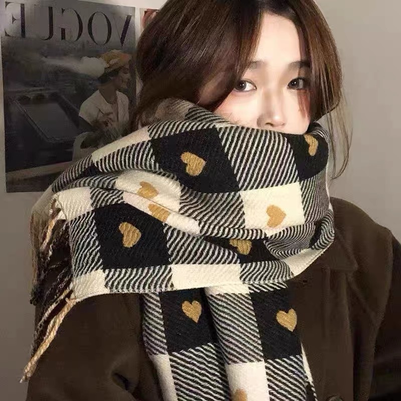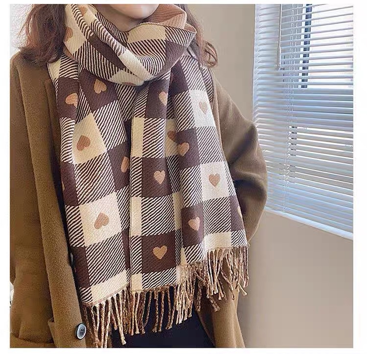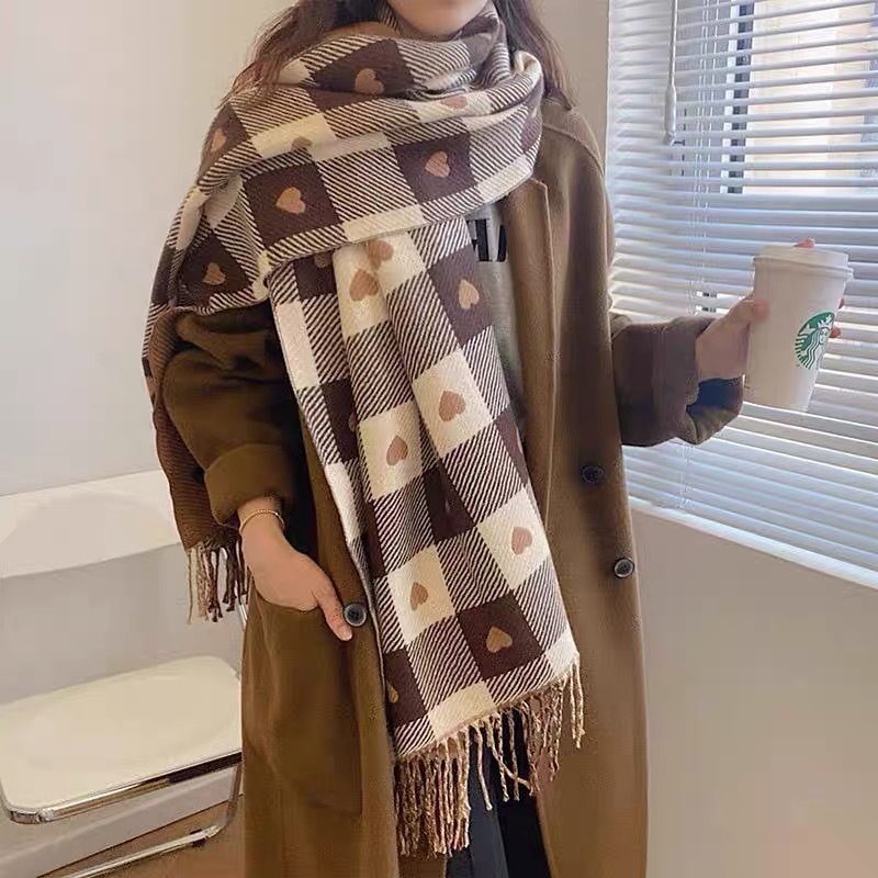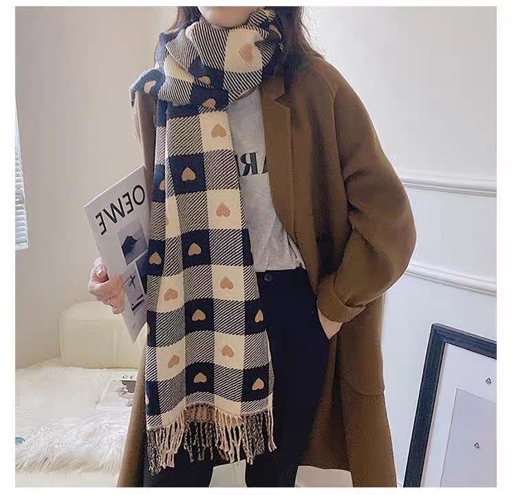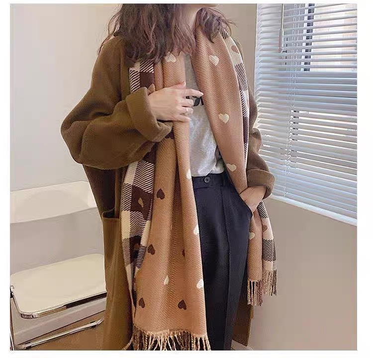새로운 가을과 겨울 모방 캐시미어 여성 양면 사랑 격자 무늬 스카프 술 따뜻한 큰 목도리 올매치 두꺼운 스카프스토어 가기
