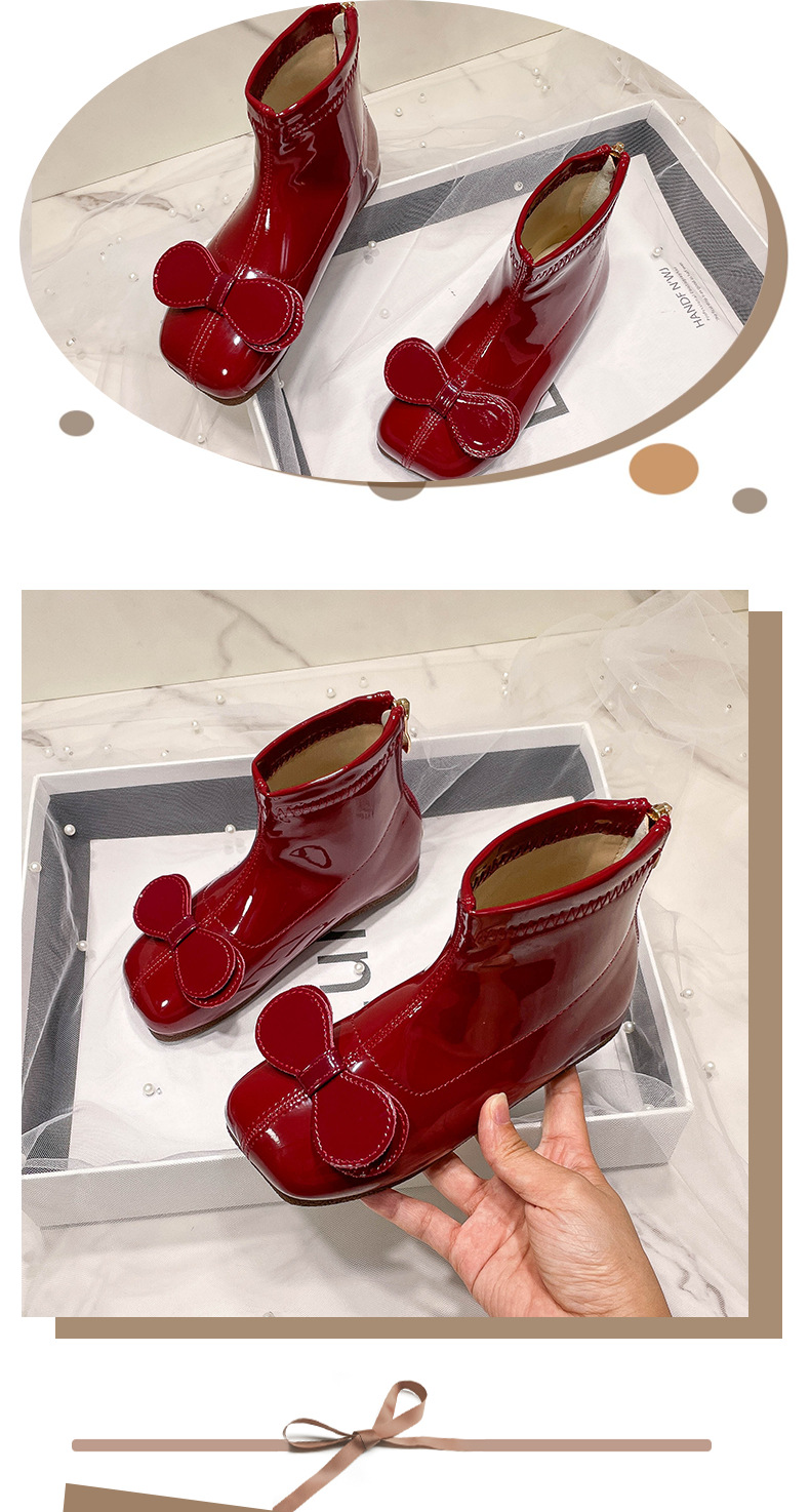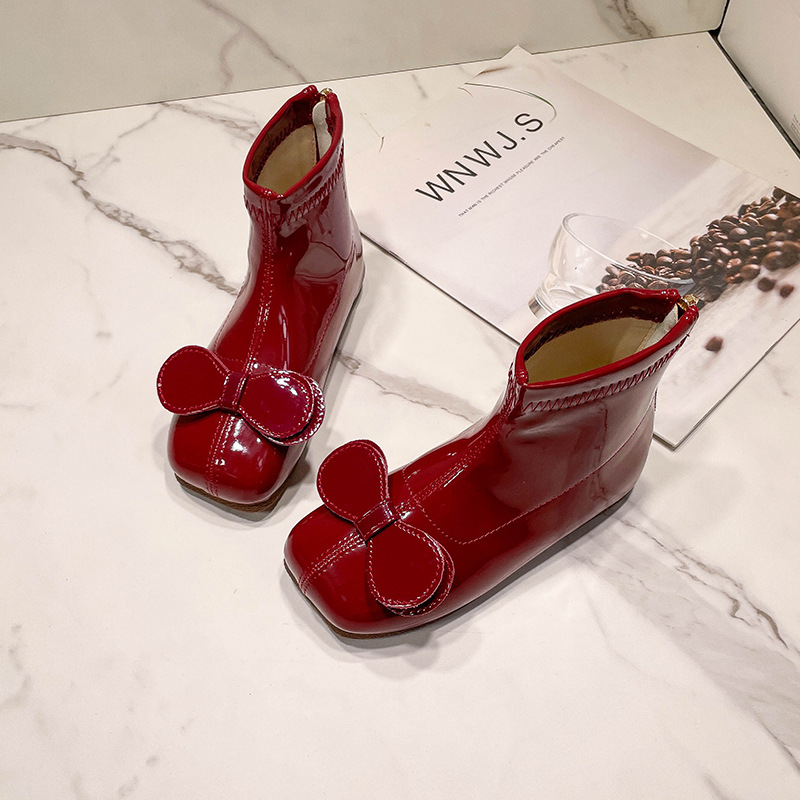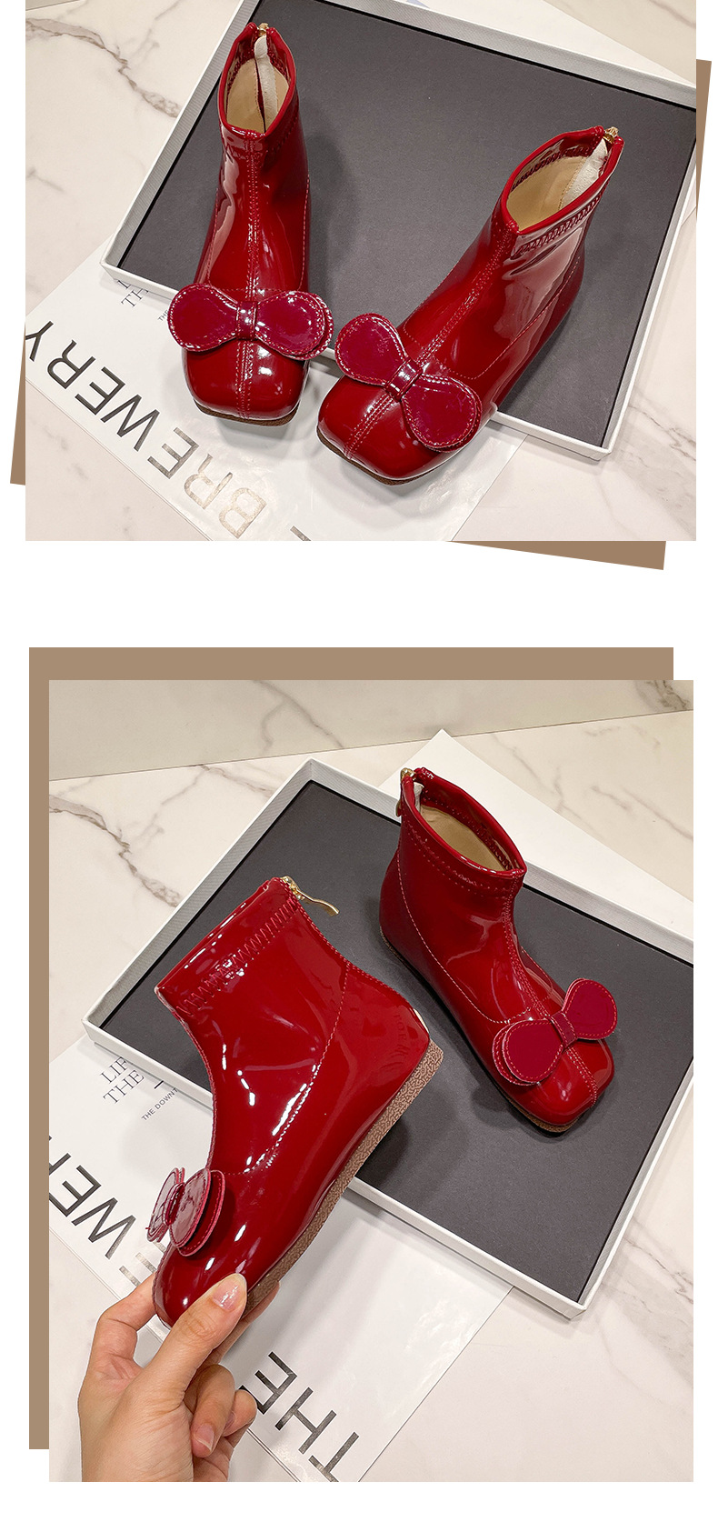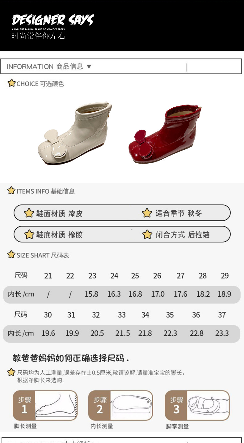 여아 신발 아동 숏부츠 여아 페이턴트 가죽 마틴 부츠 레드 2025 가을 겨울 신상 부드러운 밑창 아기용 플리스 가죽 부츠