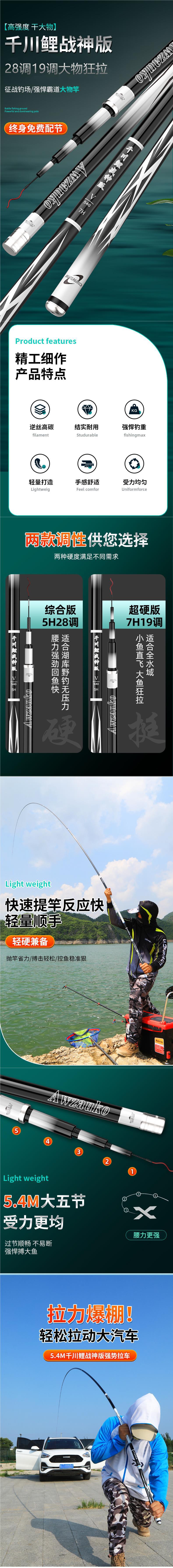 Qianchuan 잉어는 낚싯대 5 세대 6 슈퍼 하드 울트라 라이트 28 조정 19 긴 손로드 건 둥지 막대 큰 물체의 버전을 탄다