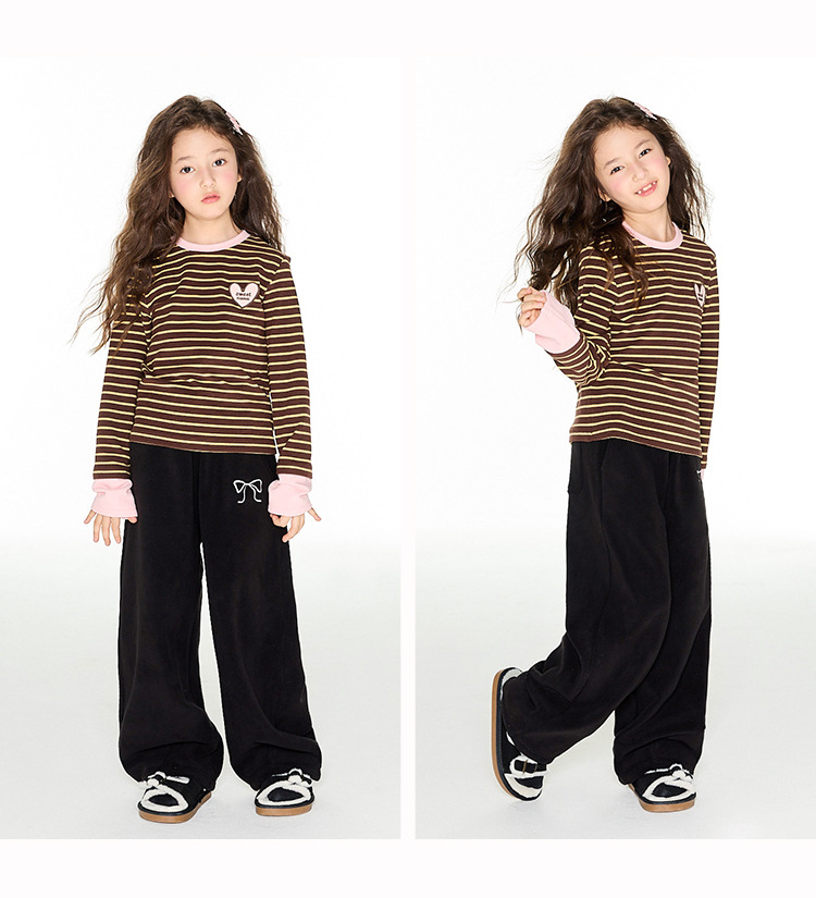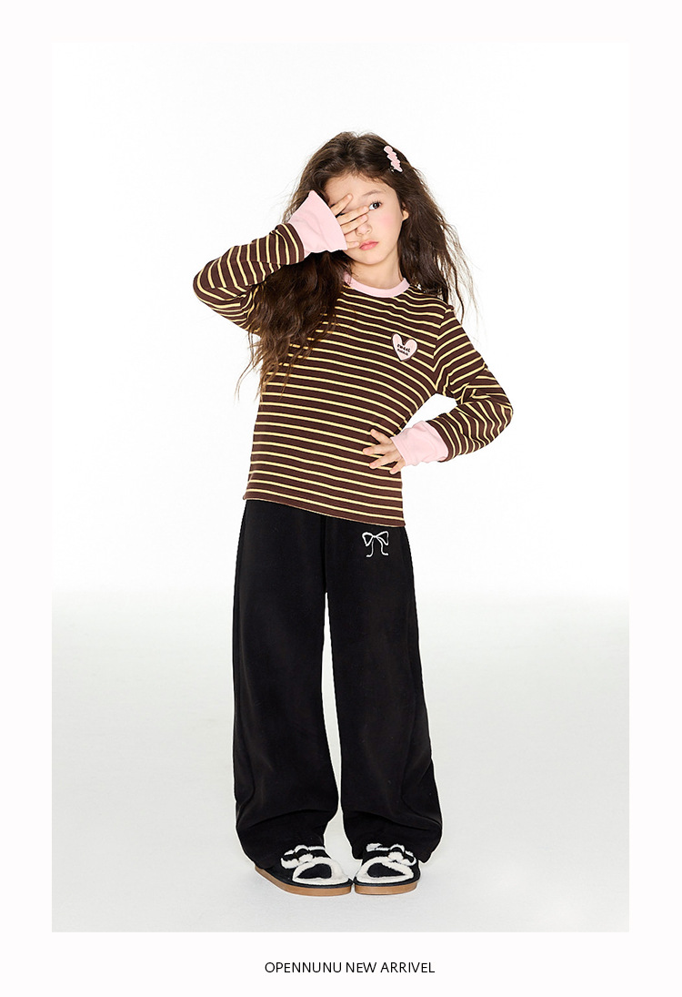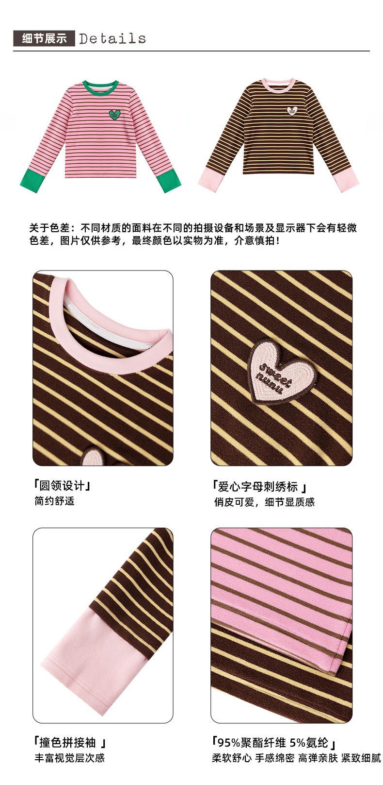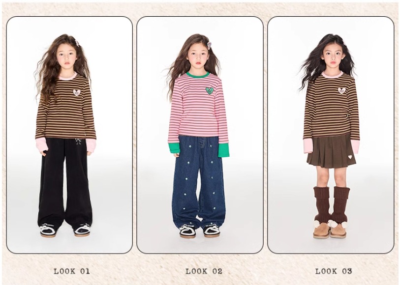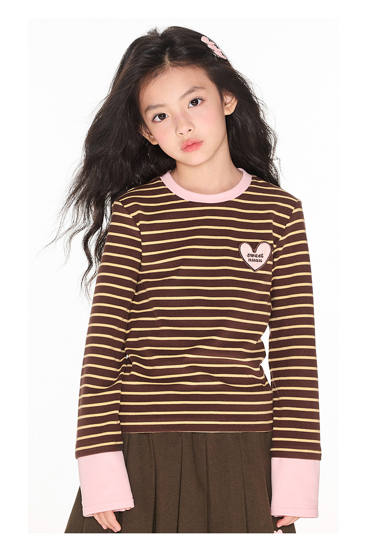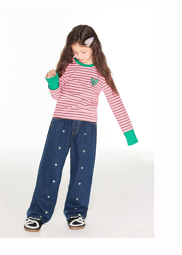 여아 하트 비트 의상, 배색 스트라이프 긴팔 티셔츠, 가을 투톤 러브 로고 슬림핏 셔츠스토어 가기