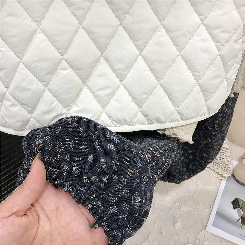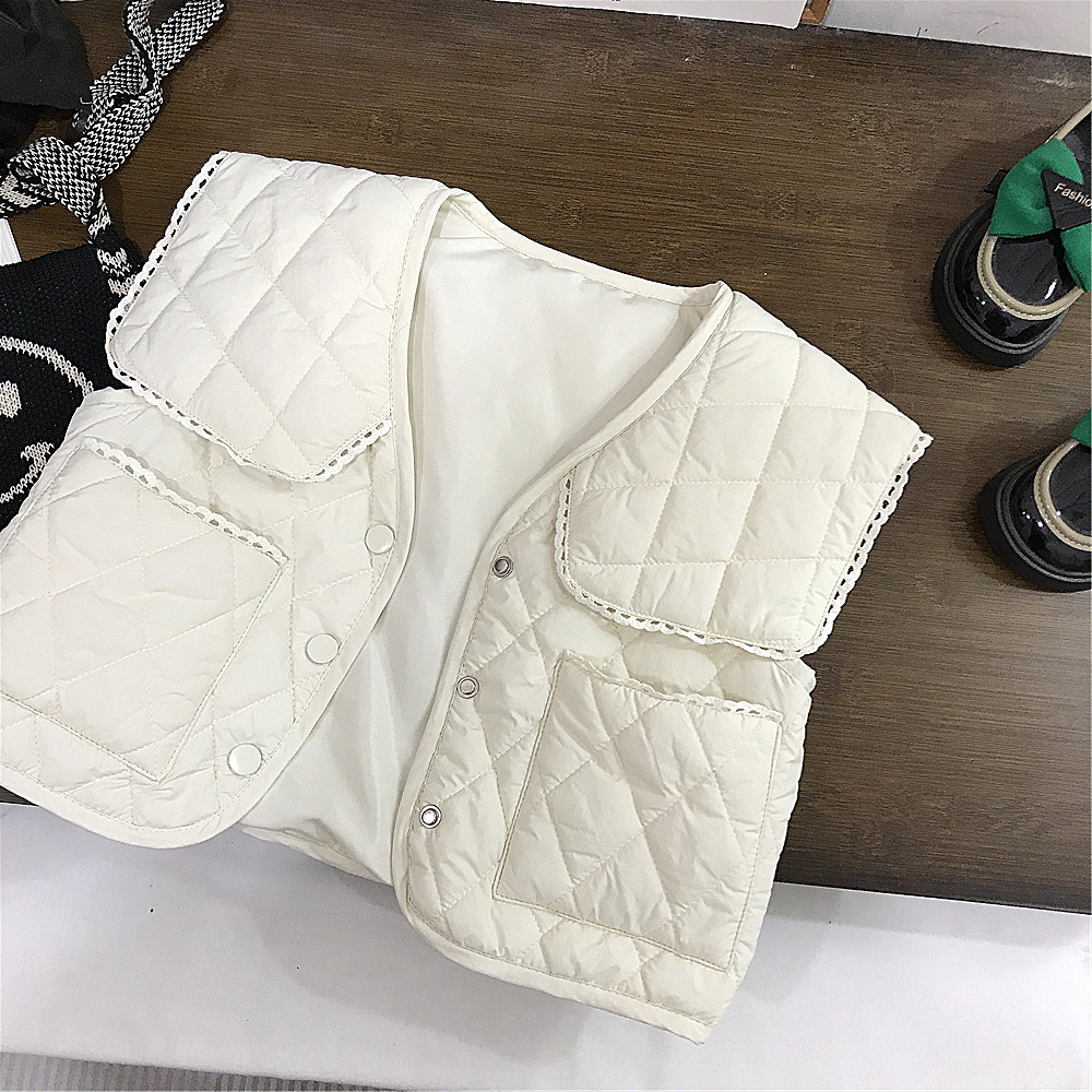 한국 아동복 가을소녀 조끼 단색 경량 퀼트면 대형 옷깃 민소매 자켓 꽃 블루머스 대외 무역