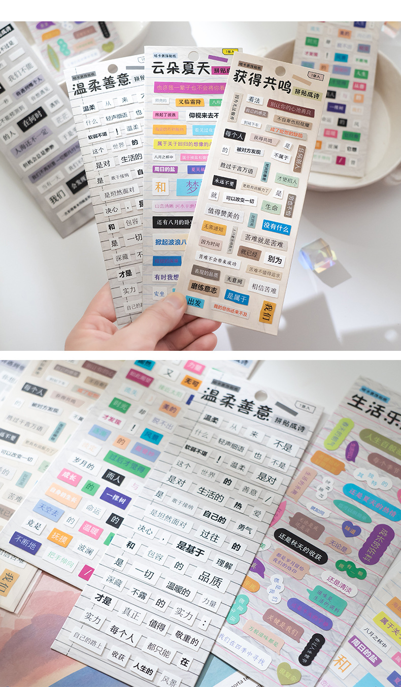 국경 간 단어 게임 스티커 스티커 콜라주 손으로 계정 창조적 인 바람 손 계정 장식 재료 스티커스토어 가기