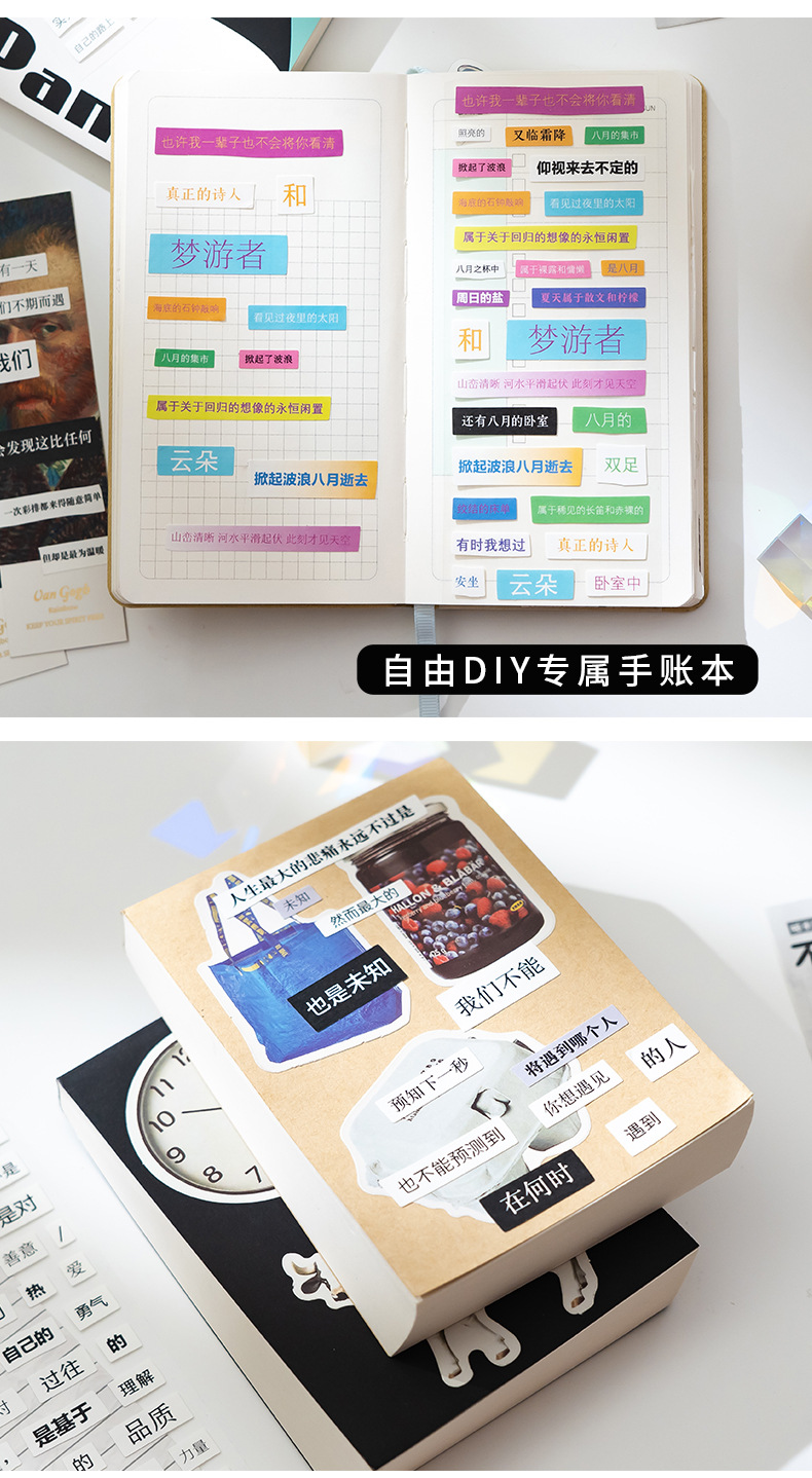 국경 간 단어 게임 스티커 스티커 콜라주 손으로 계정 창조적 인 바람 손 계정 장식 재료 스티커