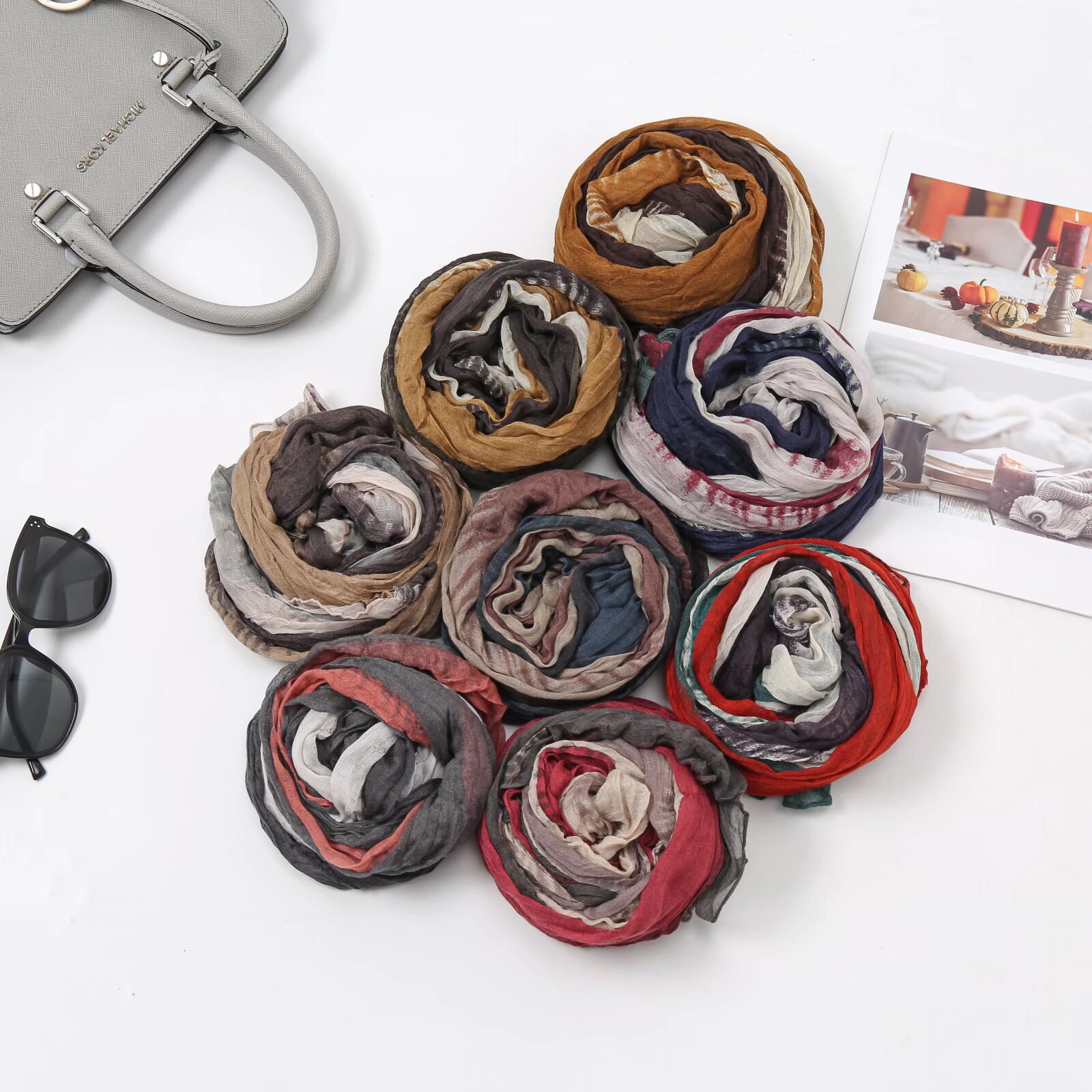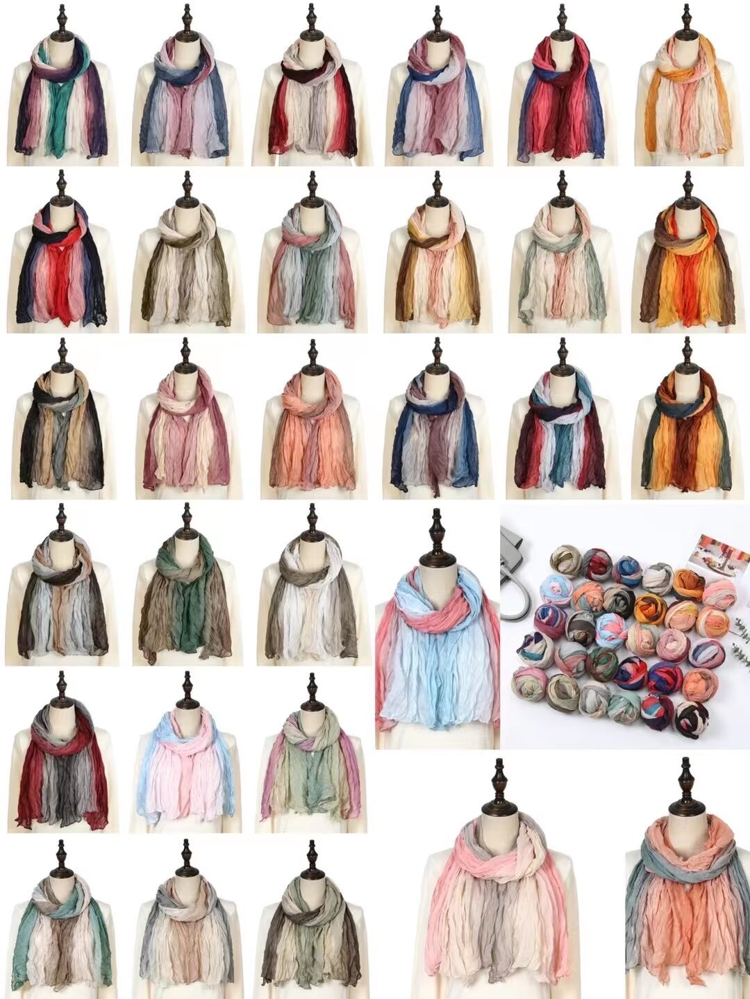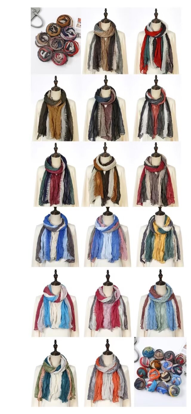 대외 무역 폭발 면 · 린넨 주름 4 색 그라디언트 한국 스카프 여성 가을 · 겨울 유행 스카프스토어 가기