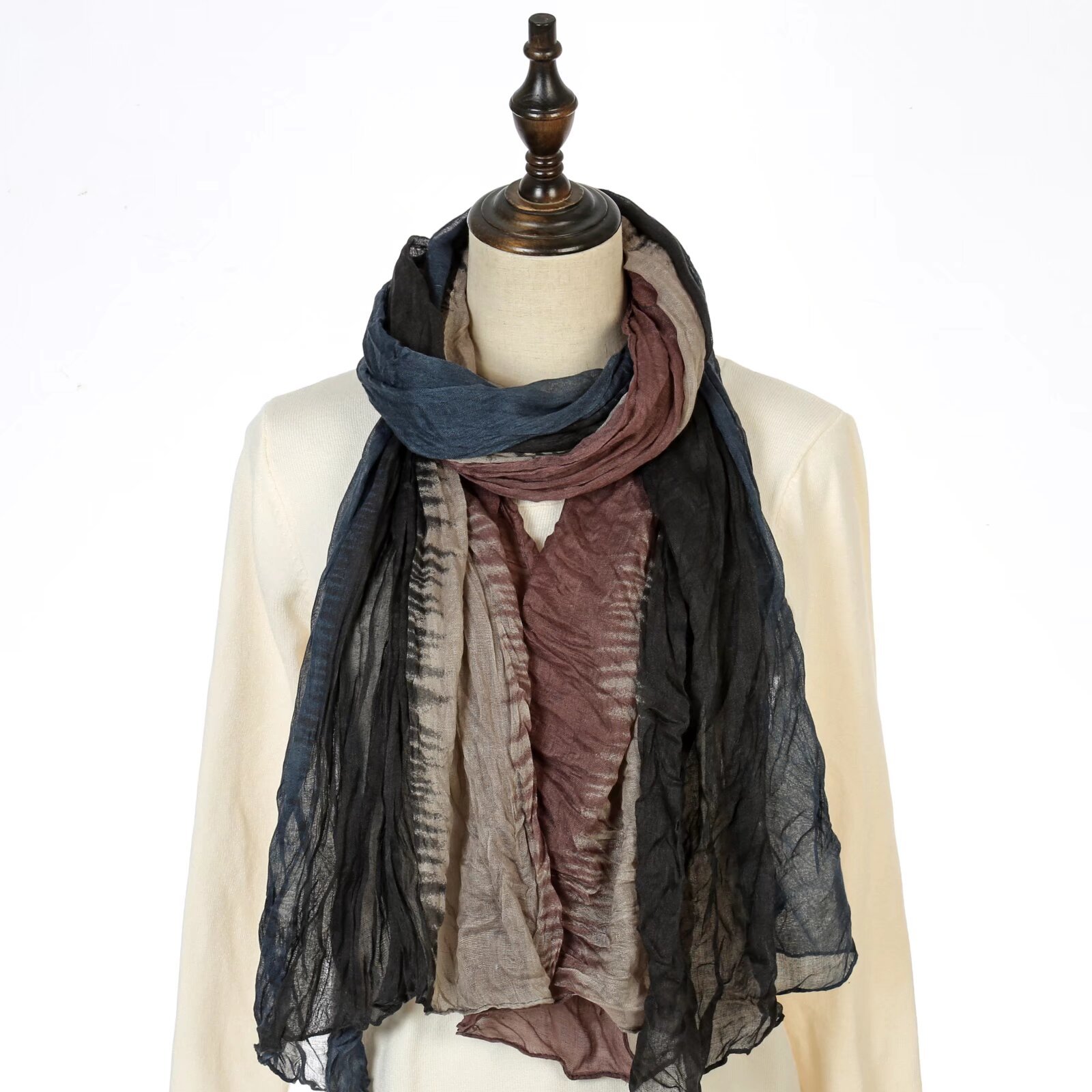 대외 무역 폭발 면 · 린넨 주름 4 색 그라디언트 한국 스카프 여성 가을 · 겨울 유행 스카프
