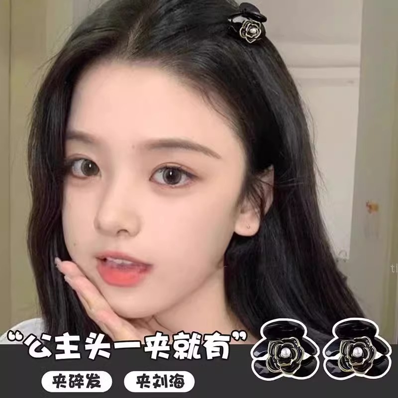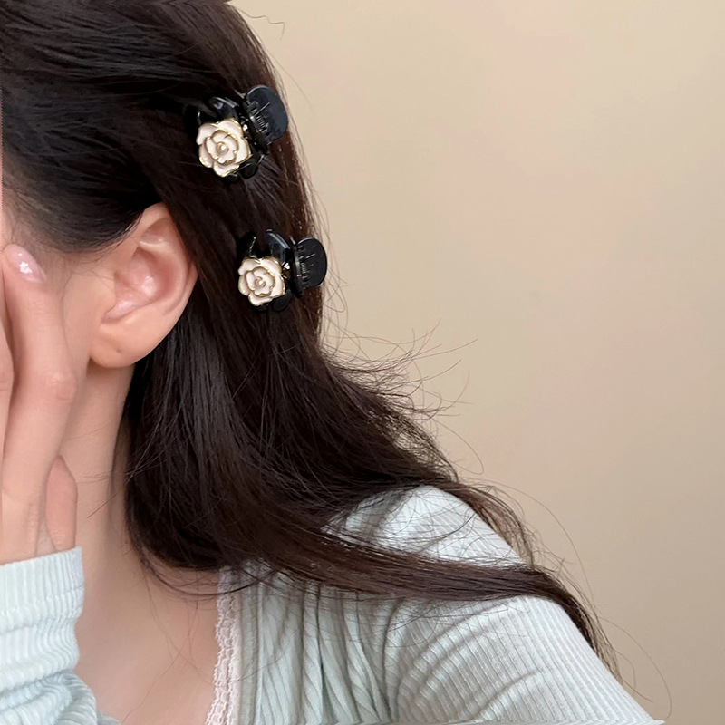 Camellia 작은 그래핑 클립 고급 스몰 사이즈 헤드웨어 반 묶은 헤어 클립 여성용 숄 헤어 클립 짧은 헤어 액세서리