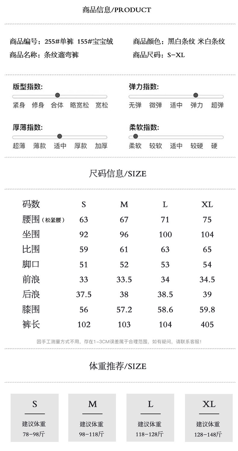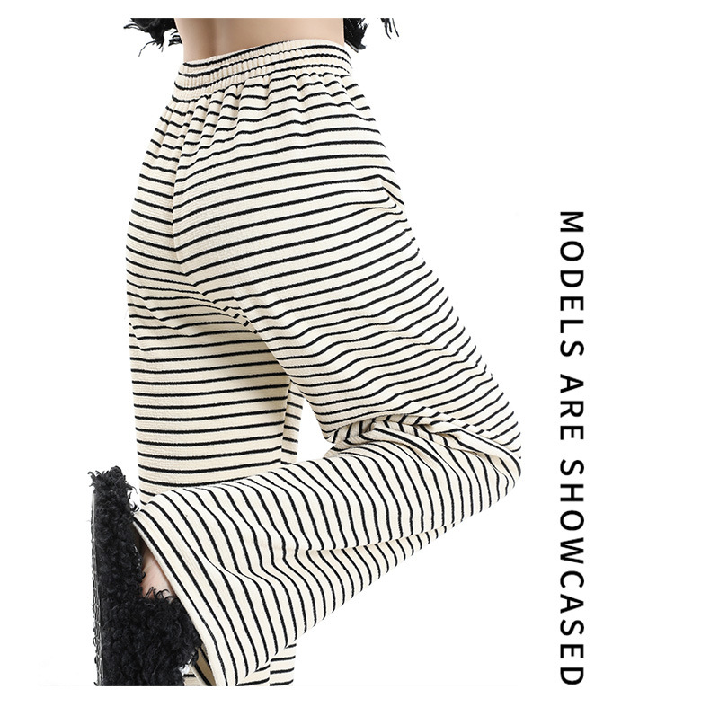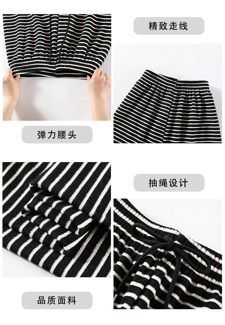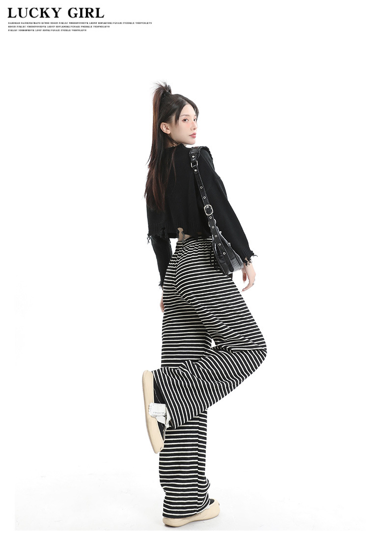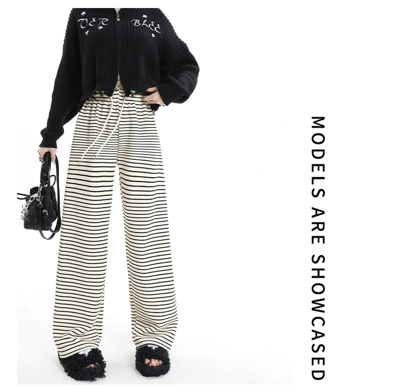 게으른 스타일 느슨한 넓은 다리 줄무늬 바지 Drawstring dipped 캐주얼 워킹 바지 여성용 검은 줄무늬 쌀 화이트 스트라이프스토어 가기