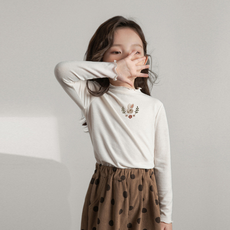 가을과 겨울 소녀 만화베이스 셔츠 2024 새로운 벨벳 따뜻한 나무 귀 탑 어린이 줄무늬 긴팔 티셔츠스토어 가기
