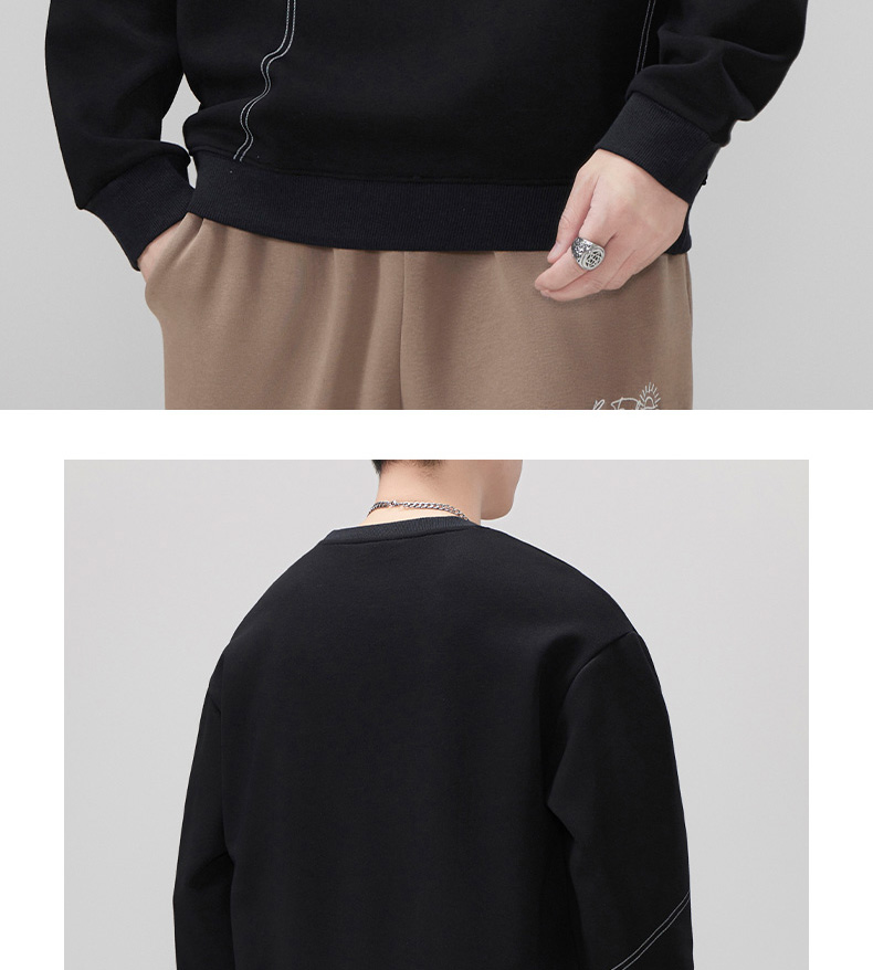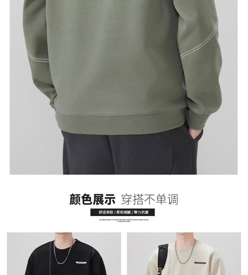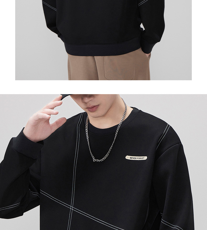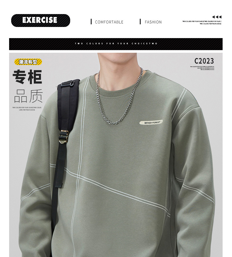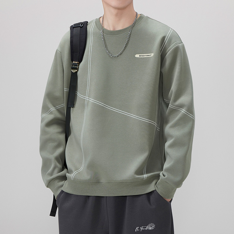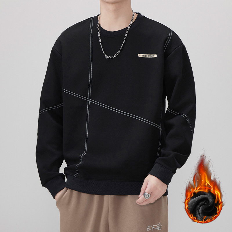 남자 땀 2025 봄과 가을 새로운 패션 올 매치 라운드 넥 긴 소매 옷 남자 기모 캐주얼 스포츠 탑스토어 가기