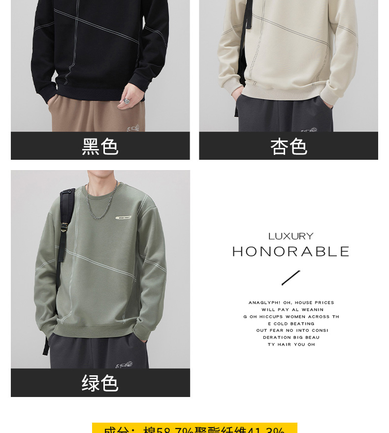남자 땀 2025 봄과 가을 새로운 패션 올 매치 라운드 넥 긴 소매 옷 남자 기모 캐주얼 스포츠 탑