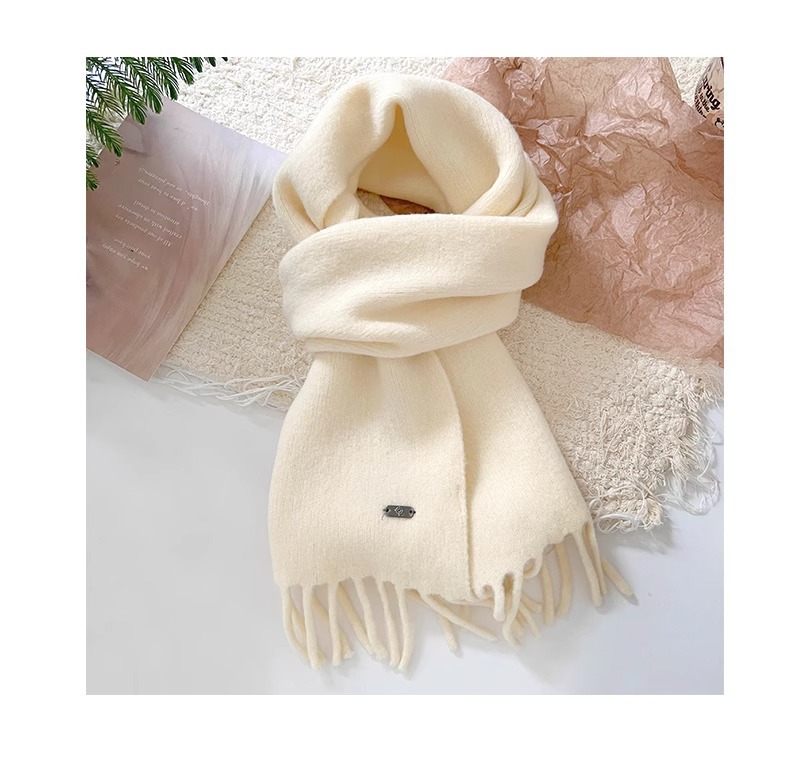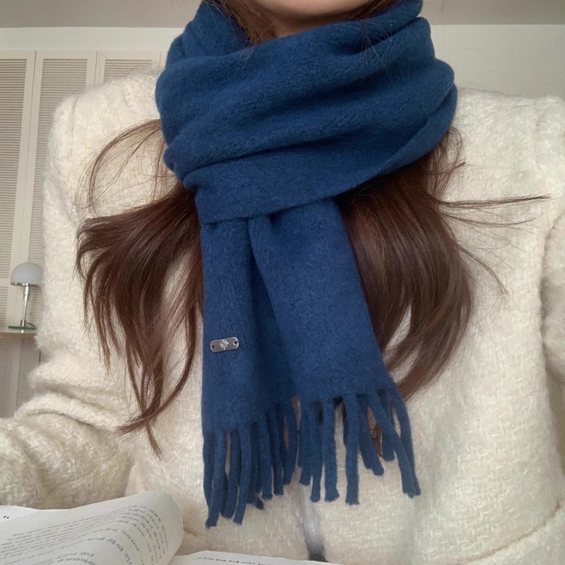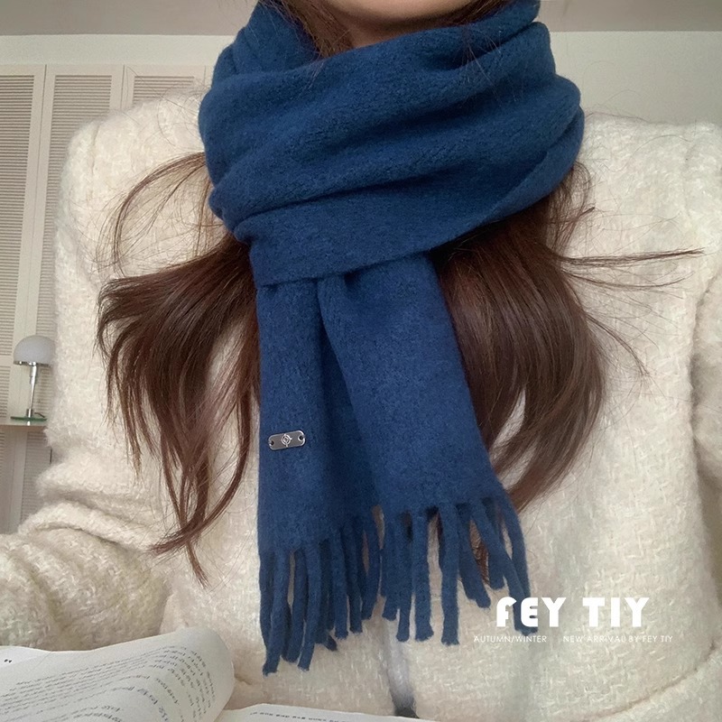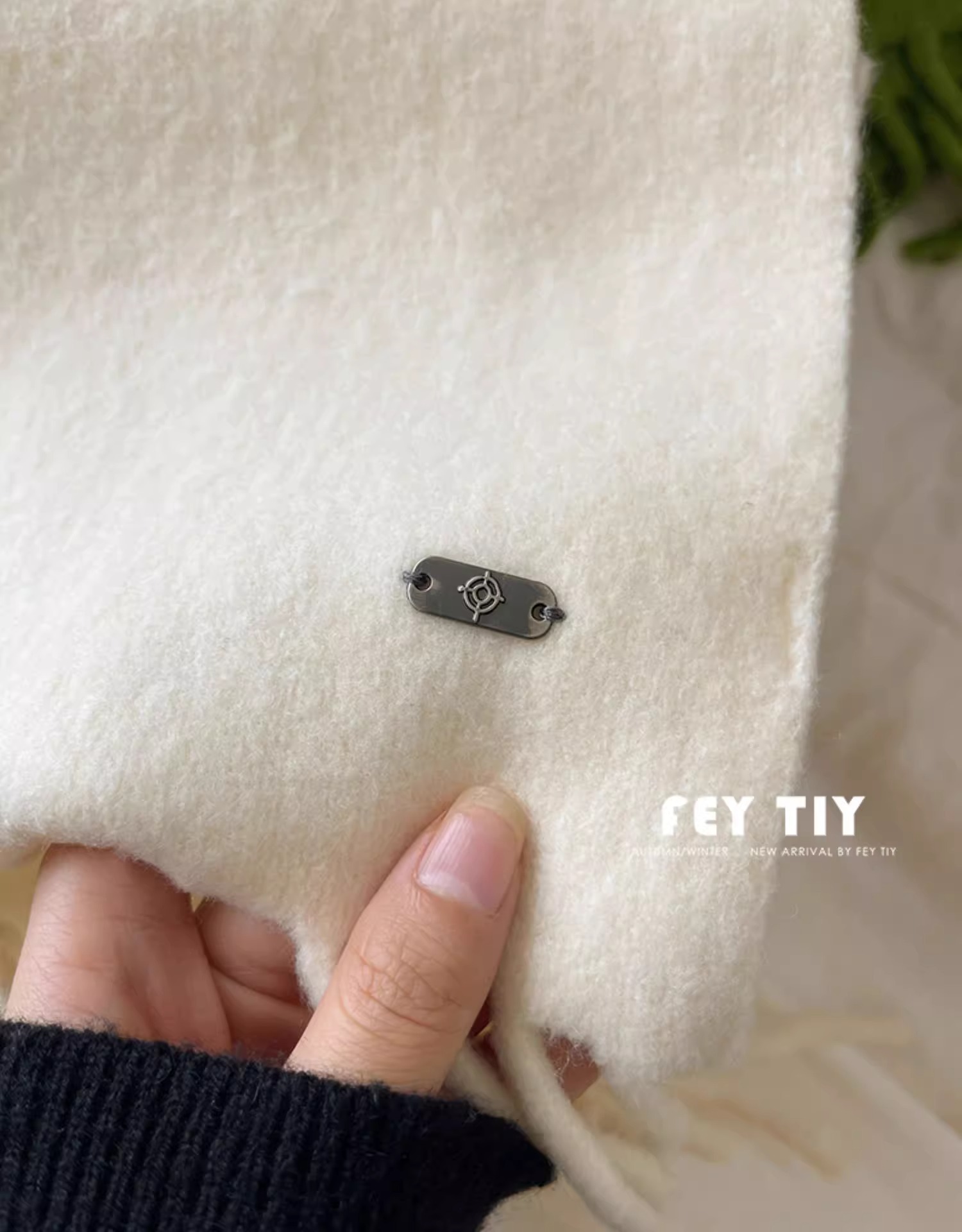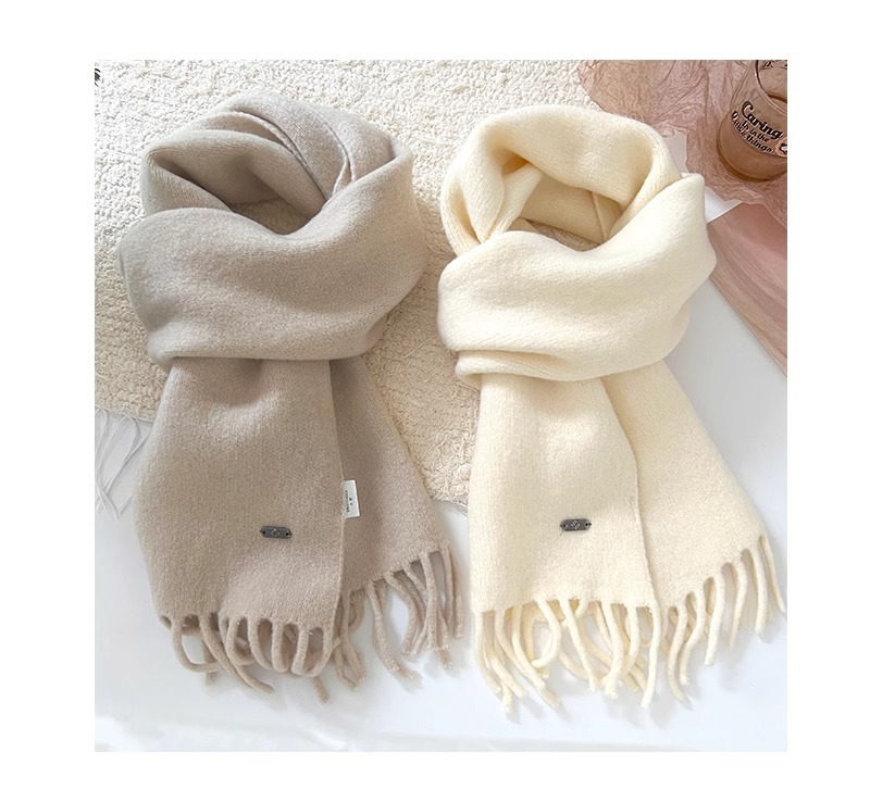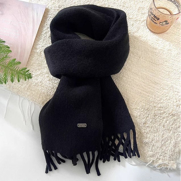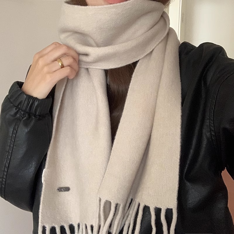 새로운 솔리드 컬러 울 스카프 금속 라벨 긴 술 부드러운 왁스 니트 올 매치 인 겨울 따뜻한 스카프 커플