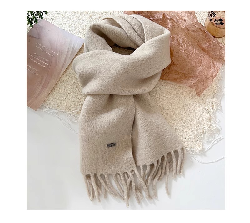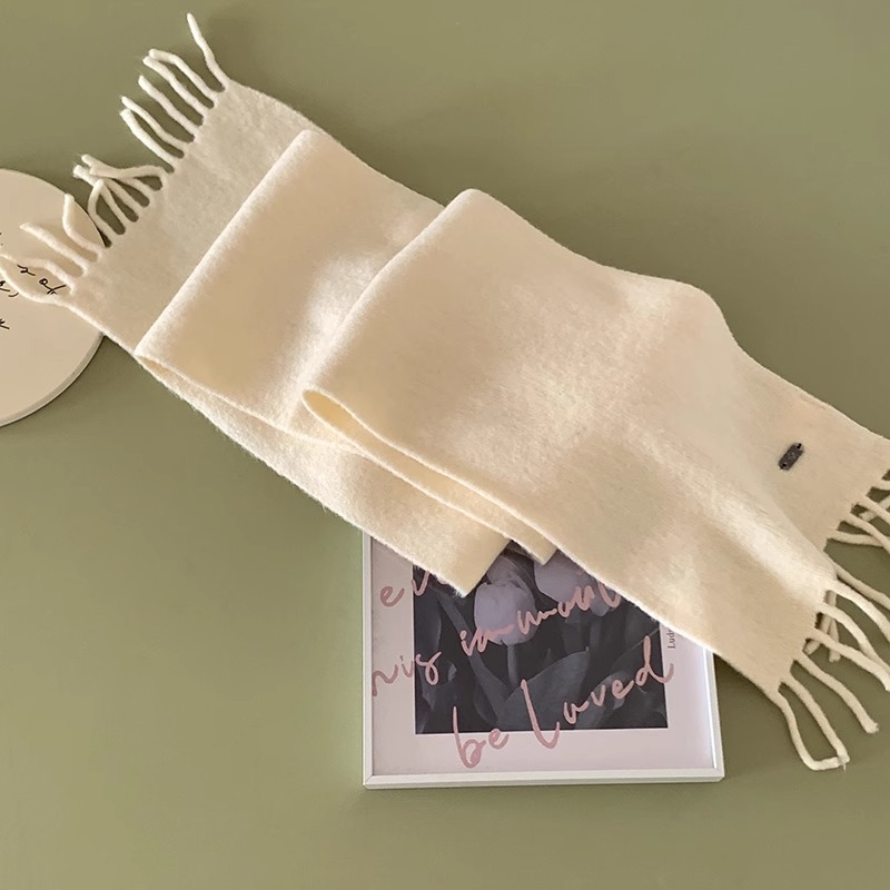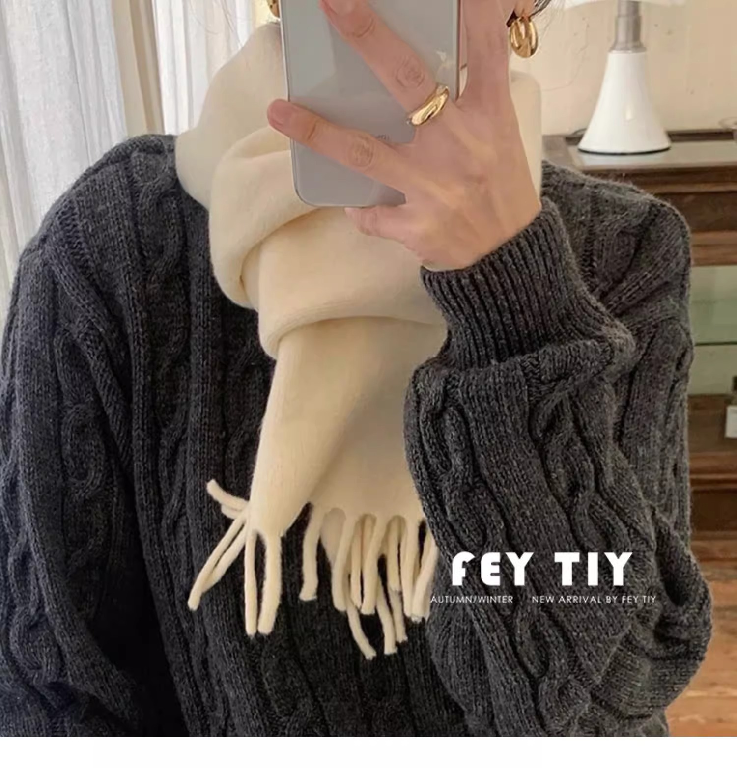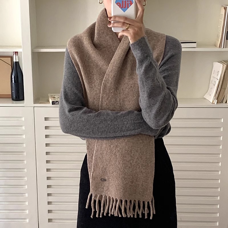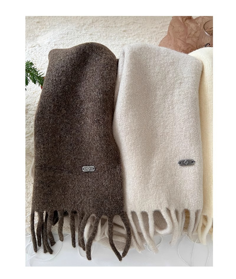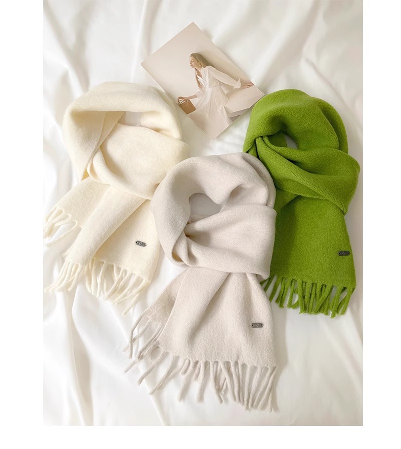 새로운 솔리드 컬러 울 스카프 금속 라벨 긴 술 부드러운 왁스 니트 올 매치 인 겨울 따뜻한 스카프 커플