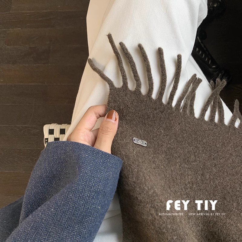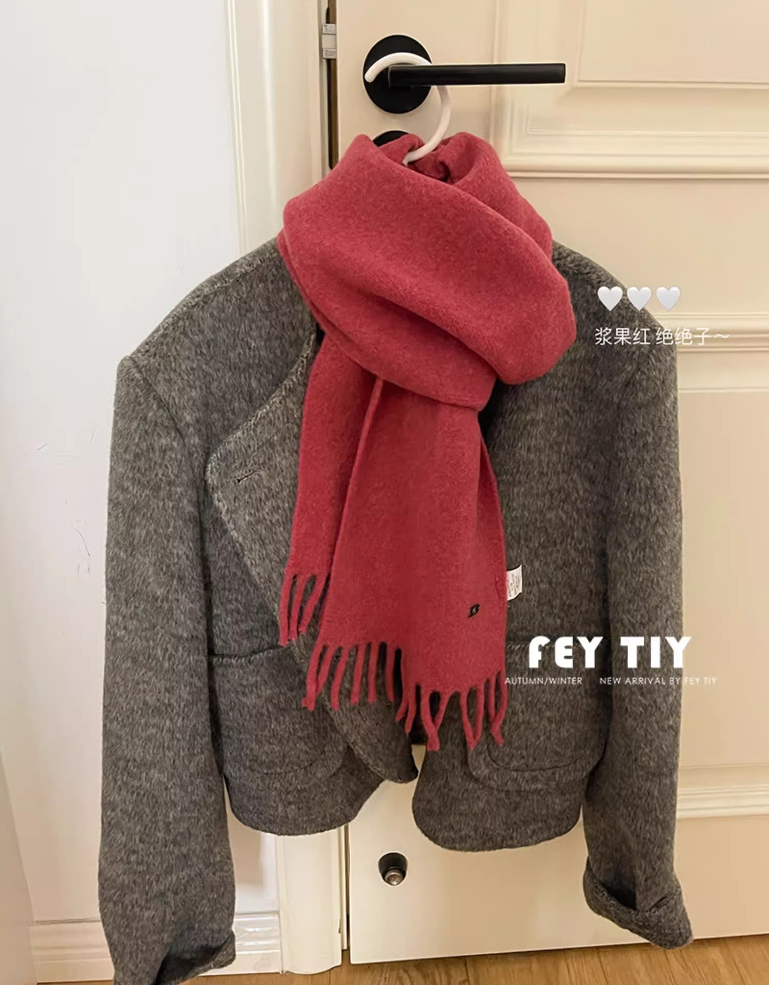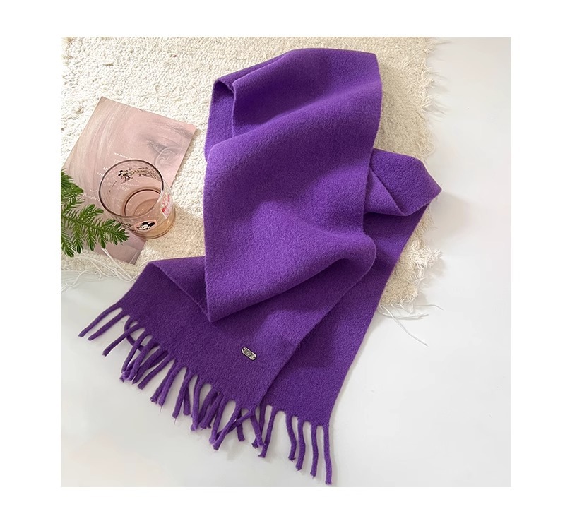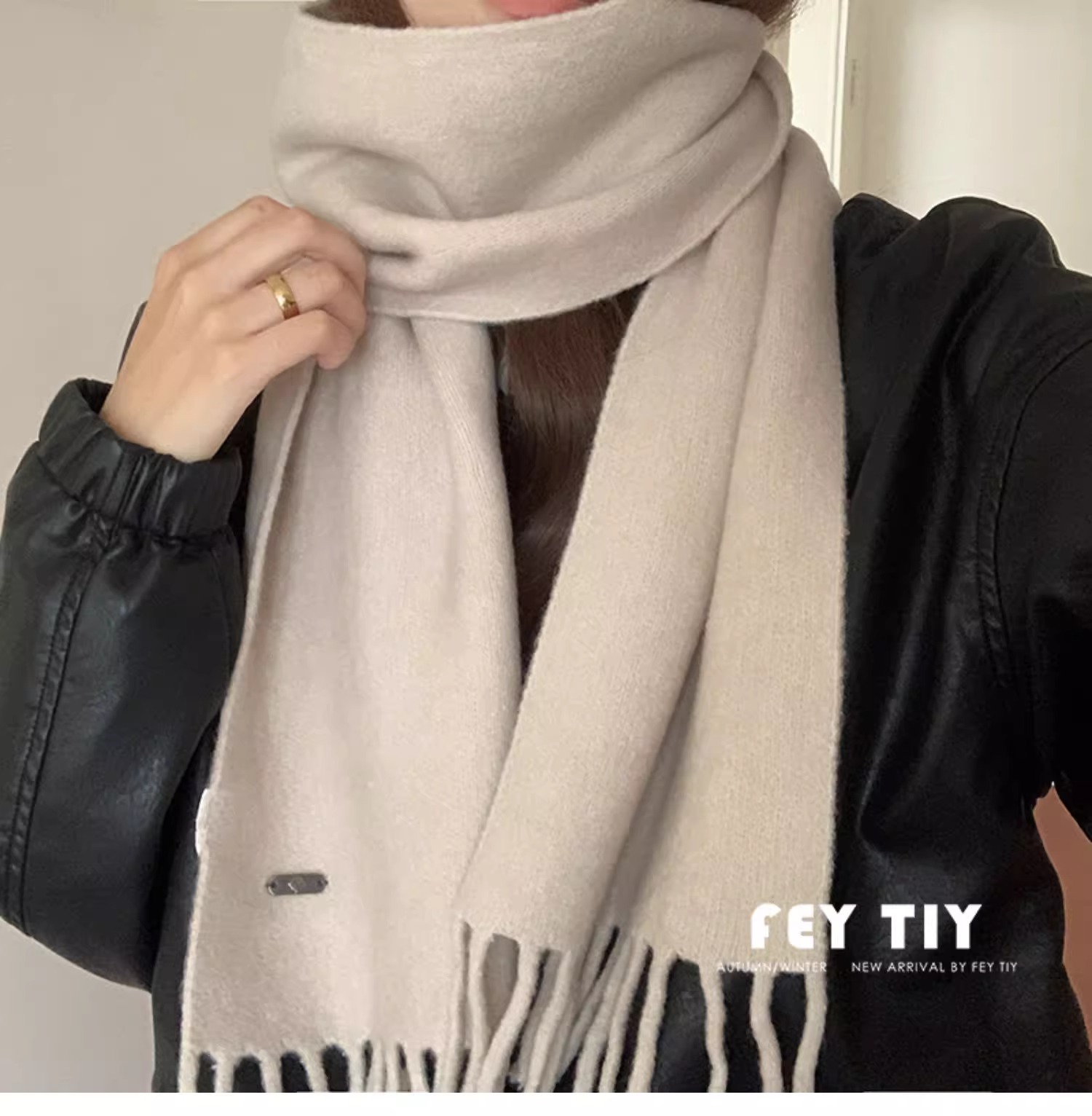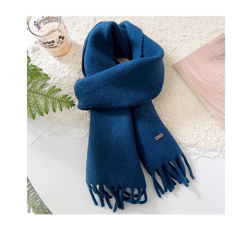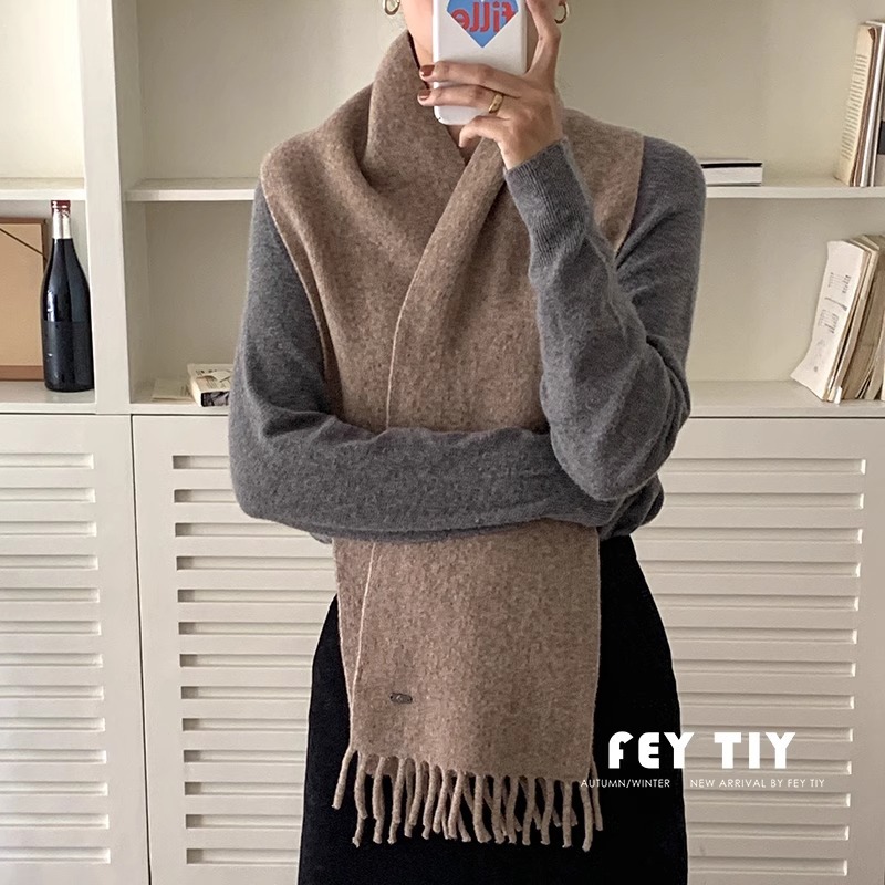 새로운 솔리드 컬러 울 스카프 금속 라벨 긴 술 부드러운 왁스 니트 올 매치 인 겨울 따뜻한 스카프 커플