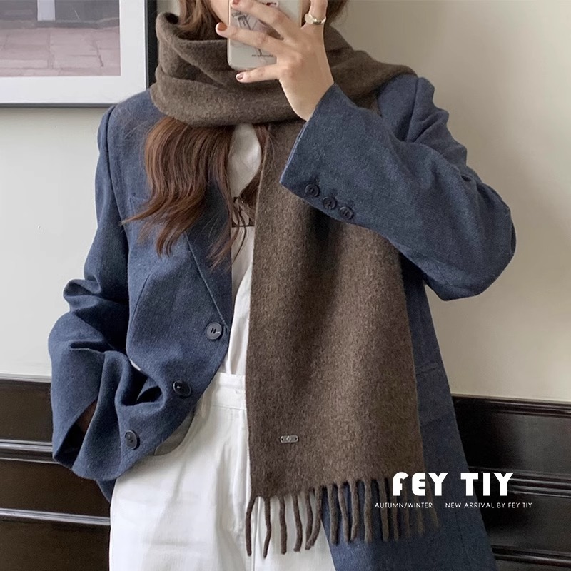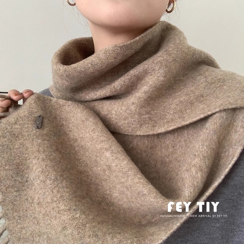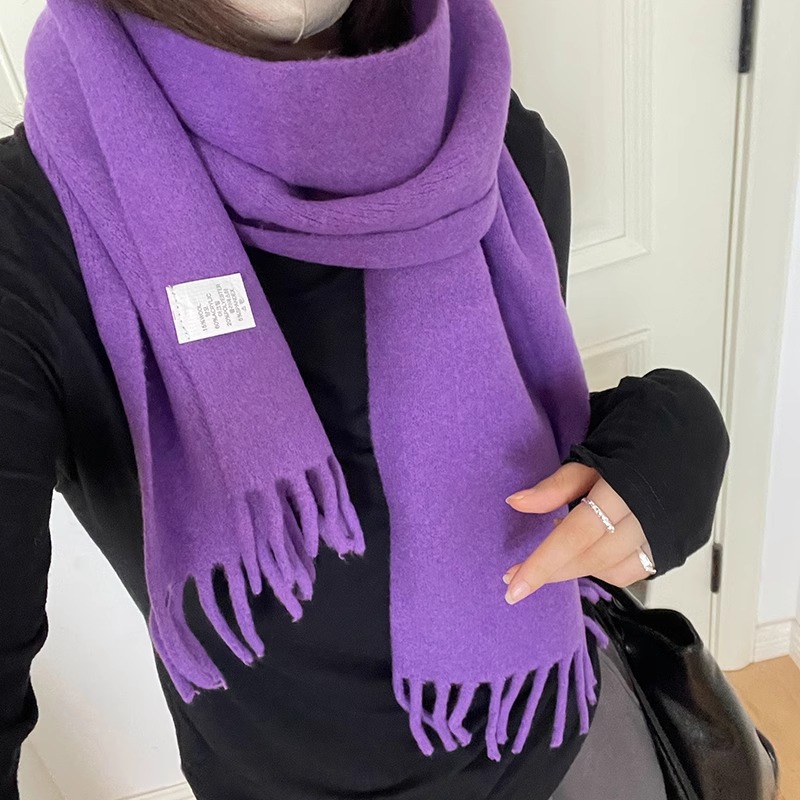 새로운 솔리드 컬러 울 스카프 금속 라벨 긴 술 부드러운 왁스 니트 올 매치 인 겨울 따뜻한 스카프 커플스토어 가기