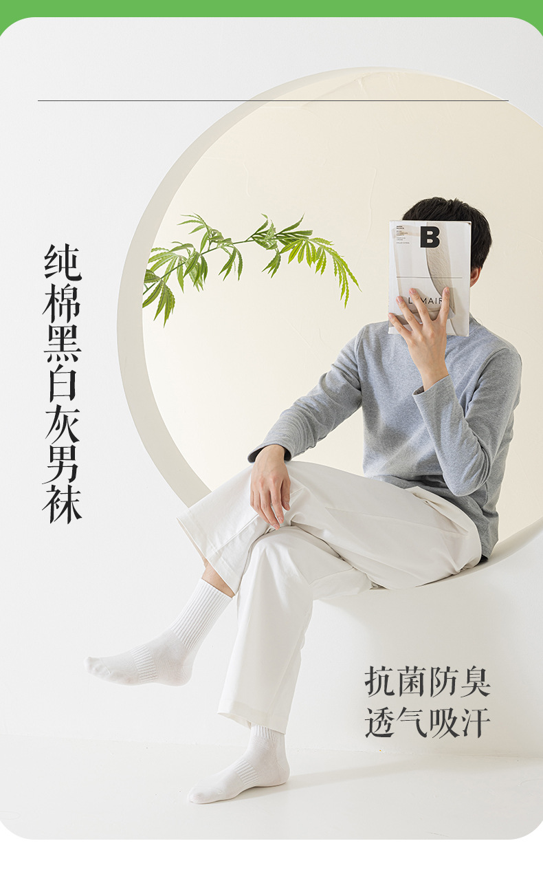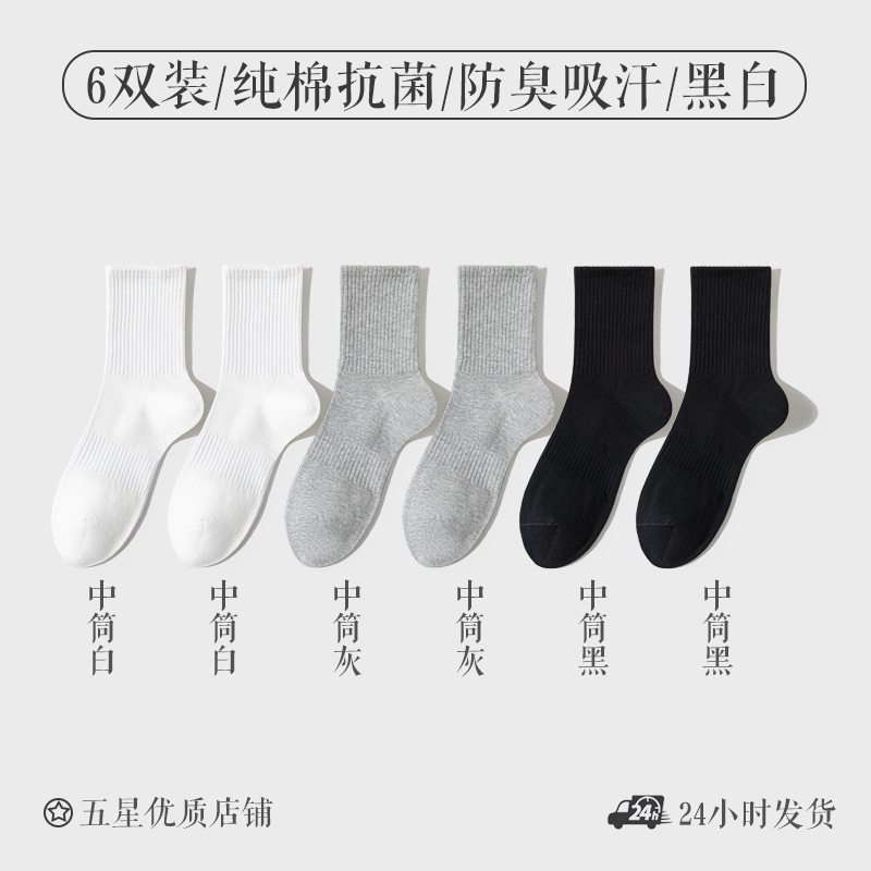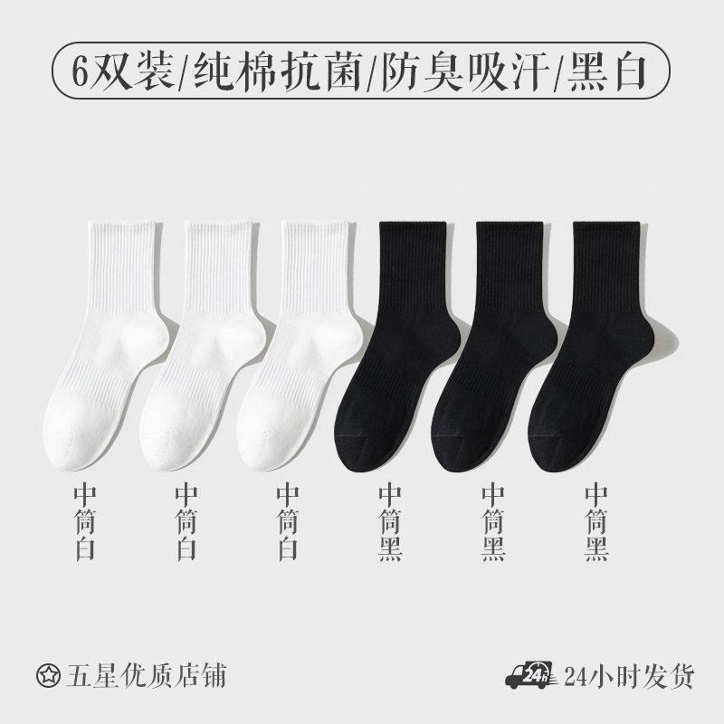 양말 남성면 봄과 가을 중반 튜브 양말 순면 탈취제 항균 가을과 겨울 화이트 스포츠 양말 통기성 뼈없는 짧은 튜브 양말스토어 가기