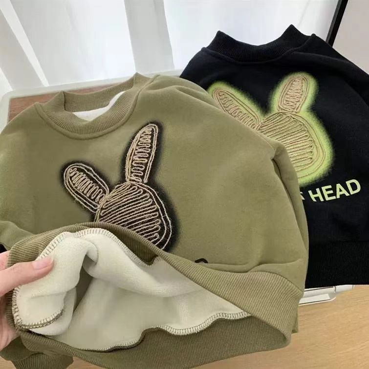 2024 새로운 어린이 겨울 기모 두꺼운 운동복 소년 원피스 벨벳 따뜻한 중소형 어린이 캐주얼 루스 베이스스토어 가기