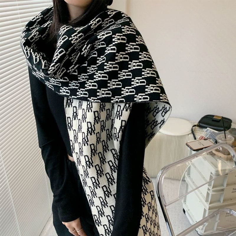 가을과 겨울 새로운 한국 스타일 트렌디 브랜드 편지 유니섹스 흑백 양면 울 니트 따뜻한 스카프 스카프스토어 가기