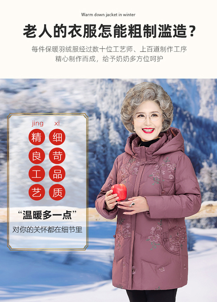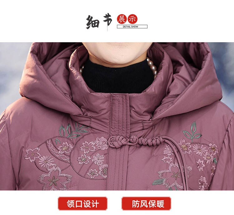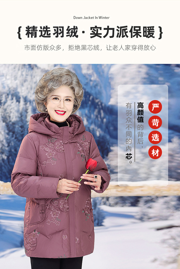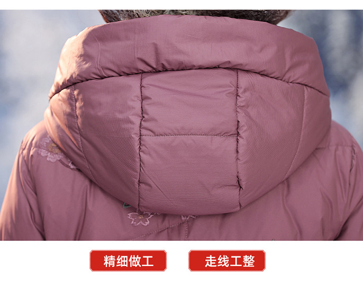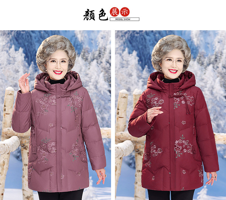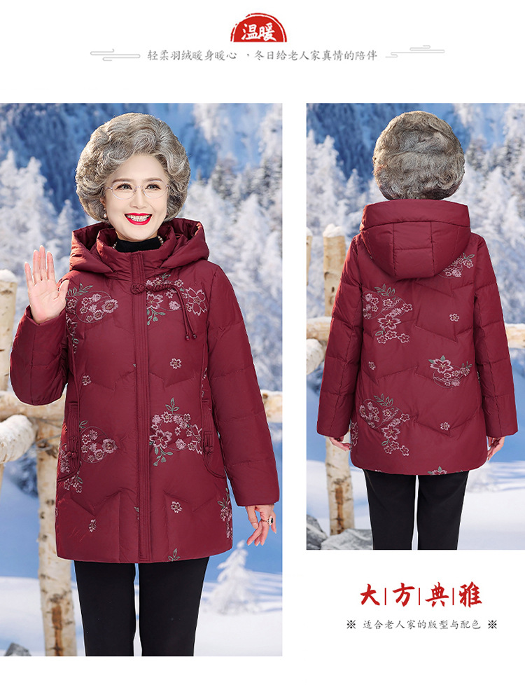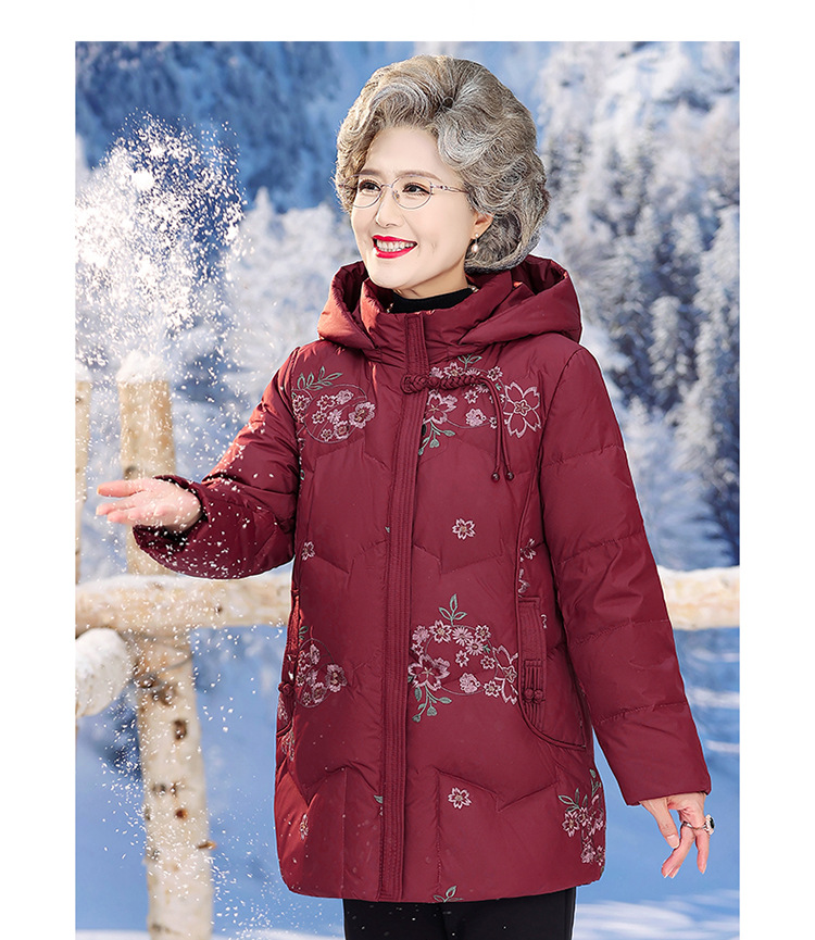 늙은 여자의 할머니의 겨울 긴 다운 자켓이 두껍게 된 70 세 여성 후드면 패딩 재킷 어머니 코트