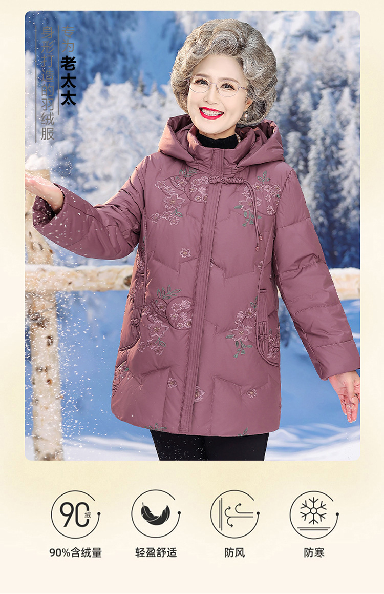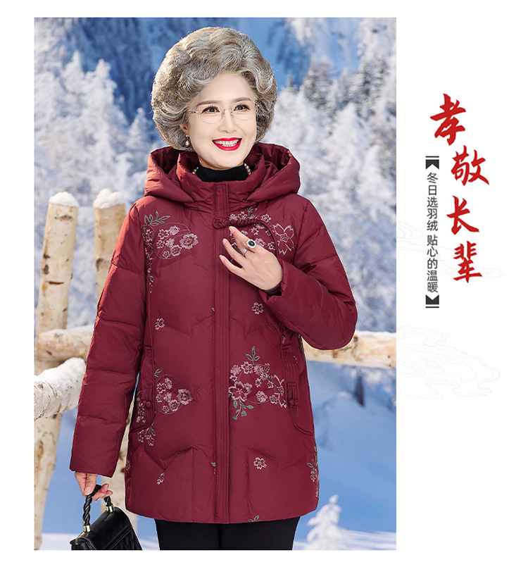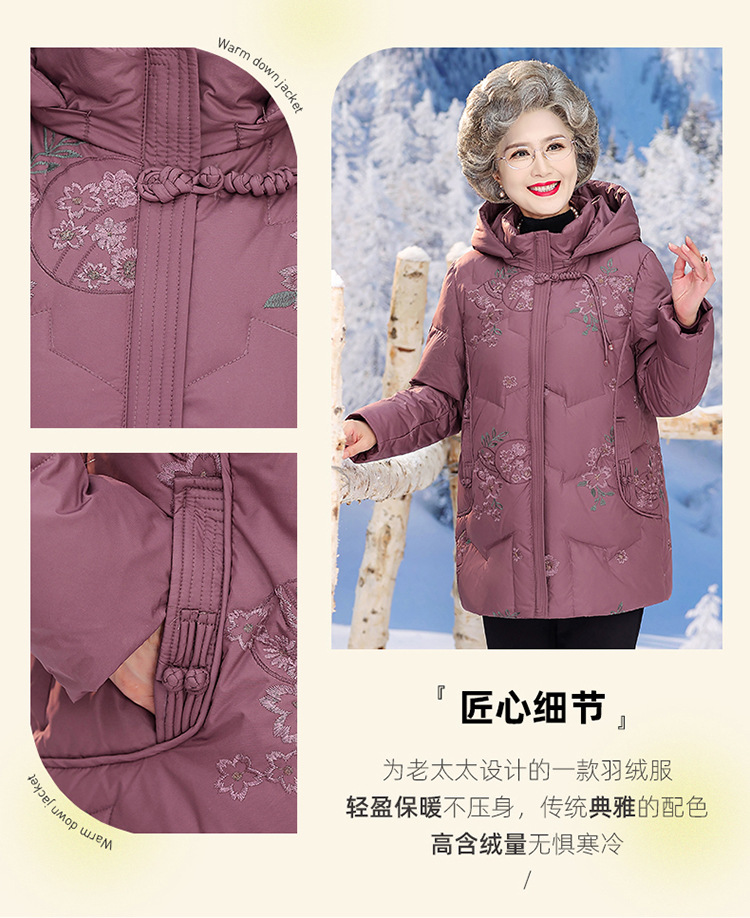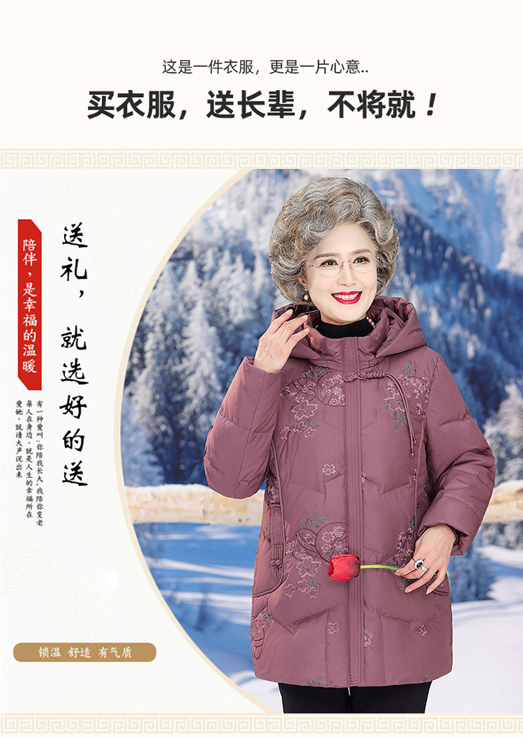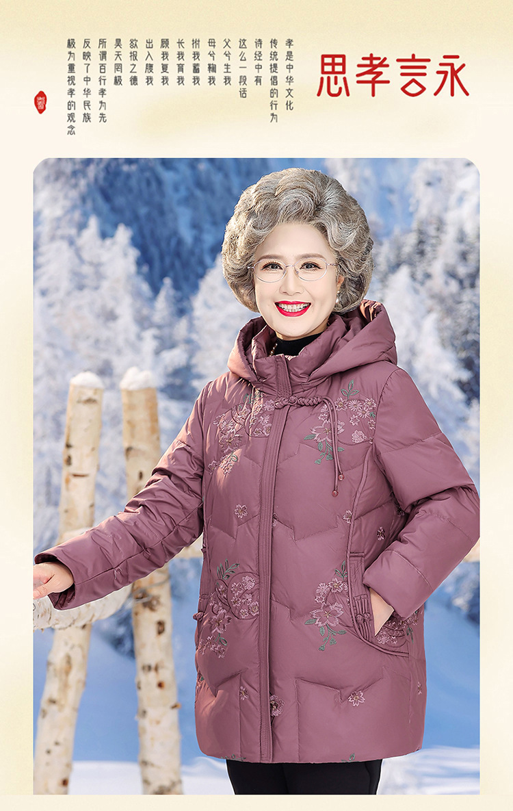 늙은 여자의 할머니의 겨울 긴 다운 자켓이 두껍게 된 70 세 여성 후드면 패딩 재킷 어머니 코트