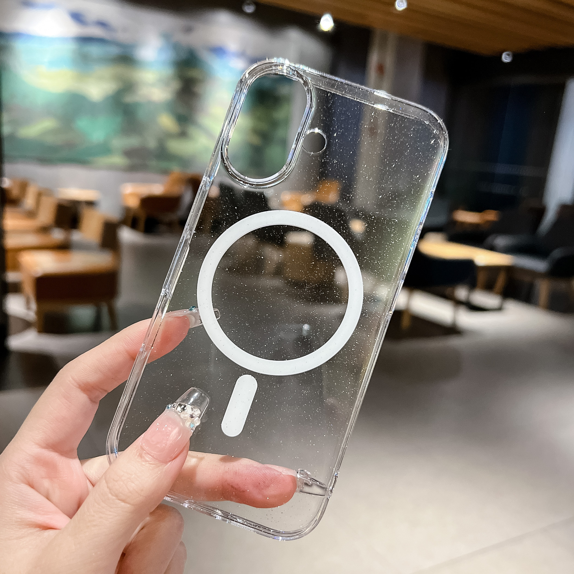애플 16프로맥스 글리터 PC 자석 휴대폰 케이스 아이폰15프로 투명 17 낙하 방지 보호 케이스스토어 가기