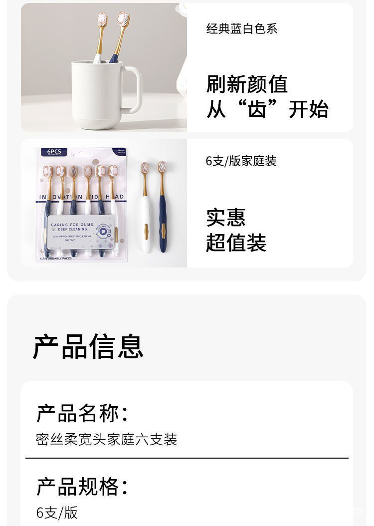 Shan Mu의 동일한 칫솔 허니 실크 6 팩 성인 가정용 와이드 헤드 소프트 칫솔 빅 헤드 소프트 칫솔 도매 공장스토어 가기