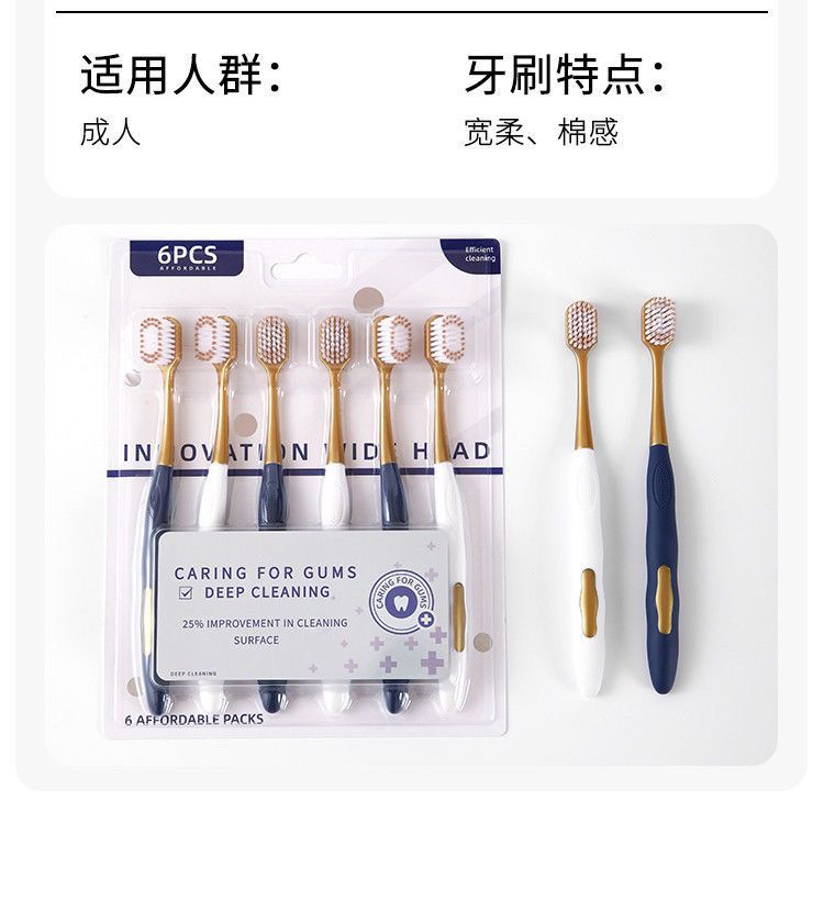Shan Mu의 동일한 칫솔 허니 실크 6 팩 성인 가정용 와이드 헤드 소프트 칫솔 빅 헤드 소프트 칫솔 도매 공장
