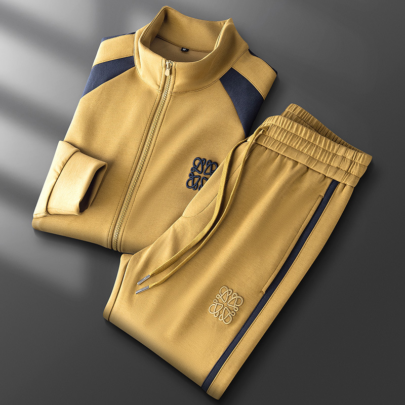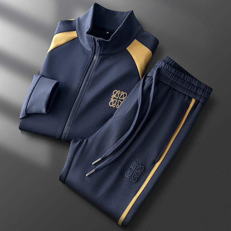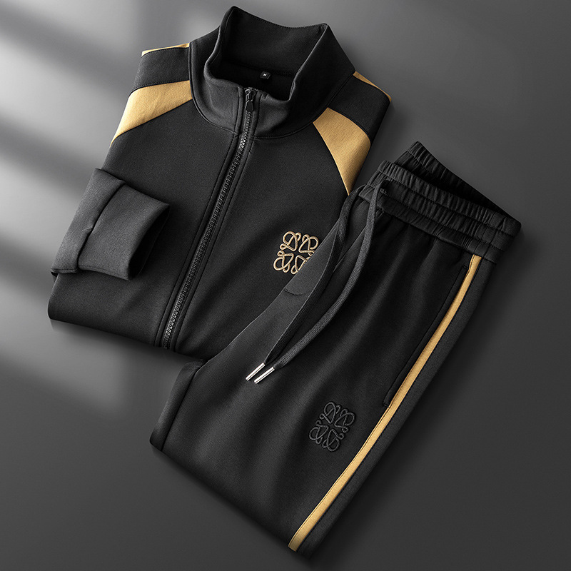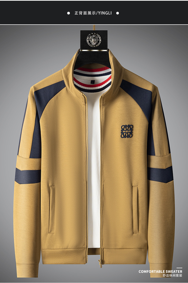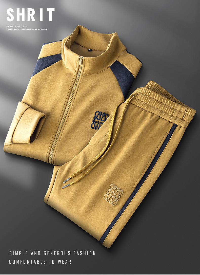 가을 겨울 패션 지퍼 카디건 재킷 세트 남성 캐주얼 하이 엔드 스티칭 모달 자수 스트레이트 바지 남성스토어 가기