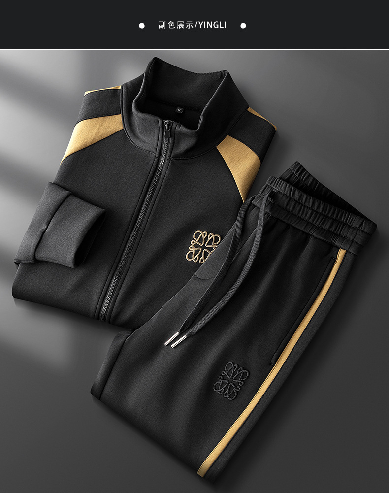 가을 겨울 패션 지퍼 카디건 재킷 세트 남성 캐주얼 하이 엔드 스티칭 모달 자수 스트레이트 바지 남성
