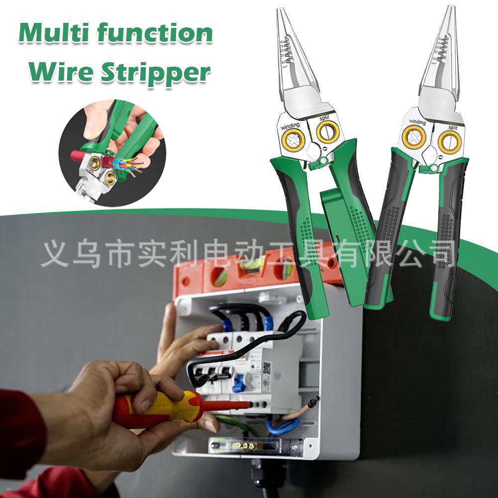 다기능 8-in -1 스트리핑 전단 절단 풀 크림 스트립 전단 케이블 전단 전기 측정 집게