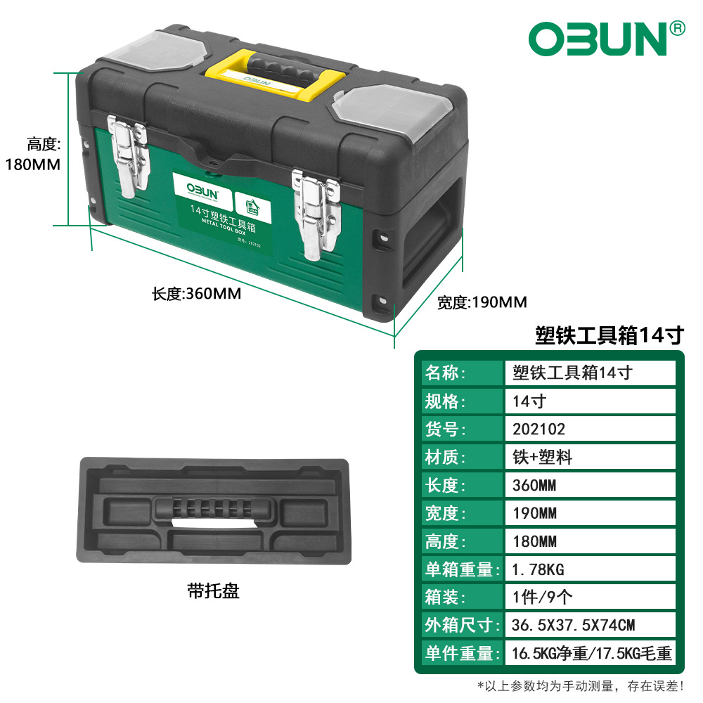 Oubang 도구 상자 제조업체는 14/17/19 인치 대형 플라스틱 철 도구 상자 가정용 저장 공간을 판매합니다.스토어 가기