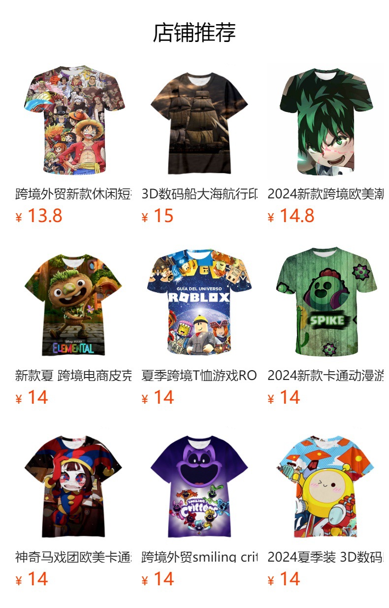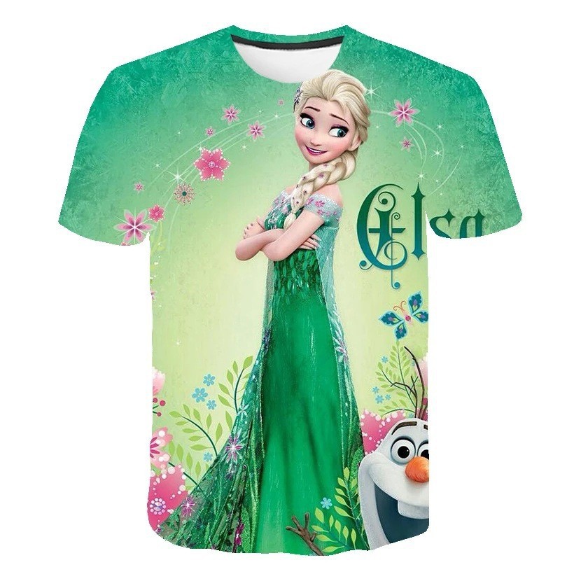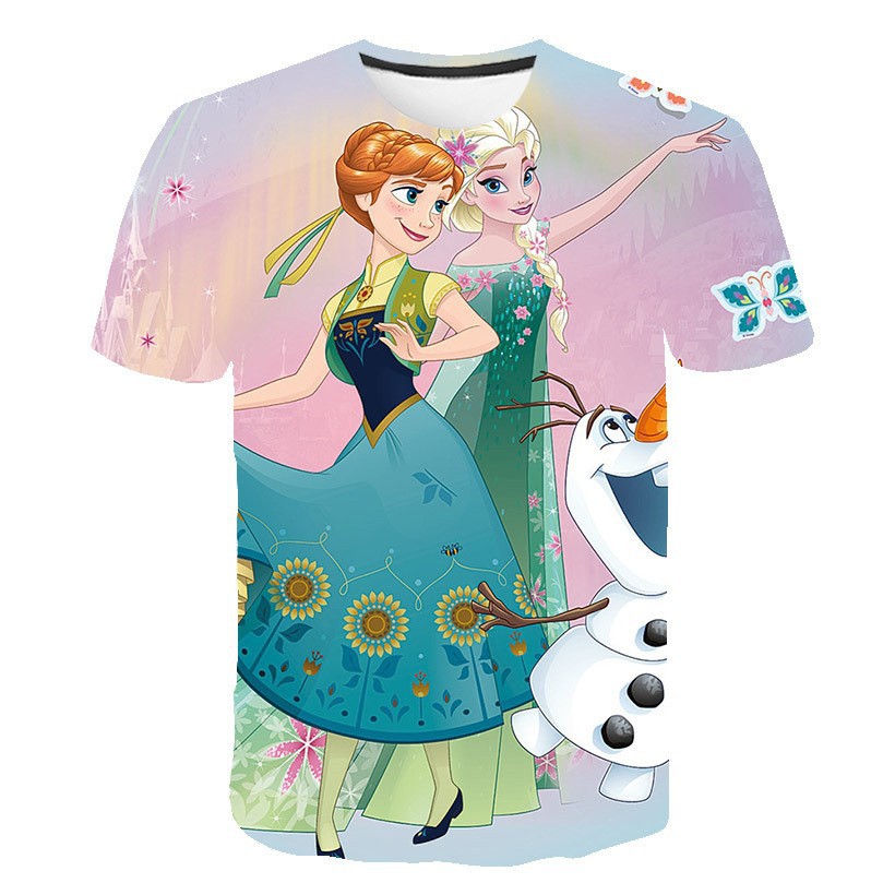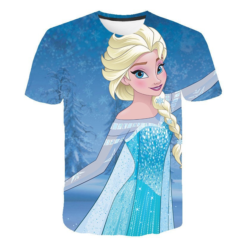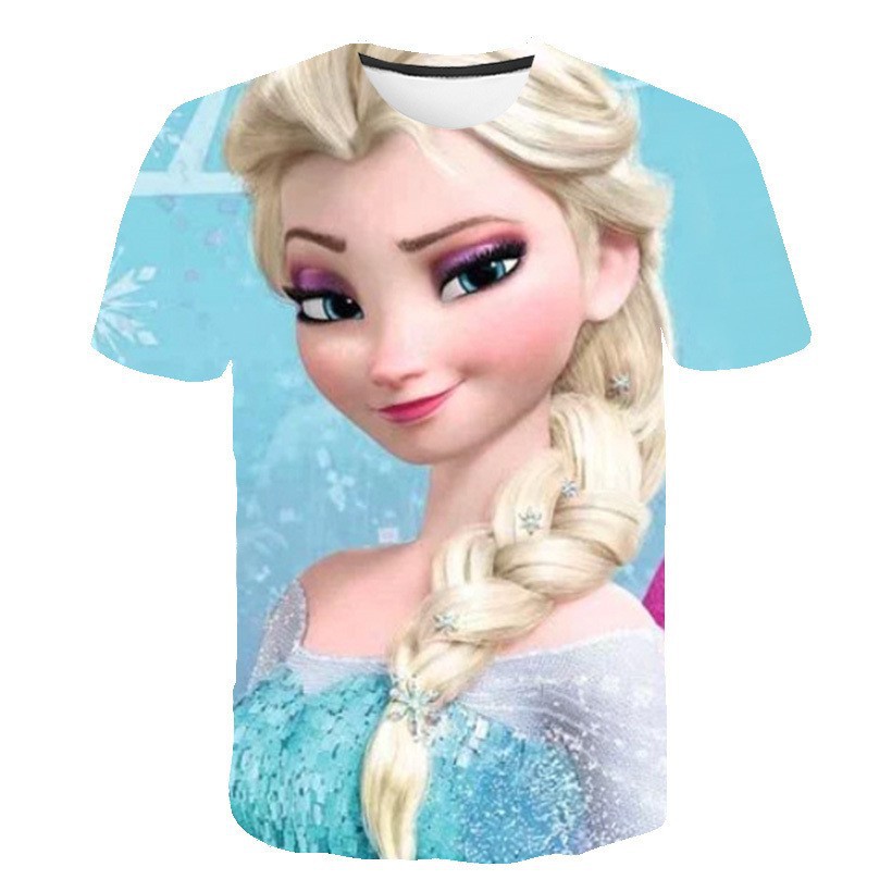국경 간 여름 만화 애니메이션 cospaly 3D 디지털 인쇄 반팔 티셔츠를 둘러싼 냉동 아동복스토어 가기
