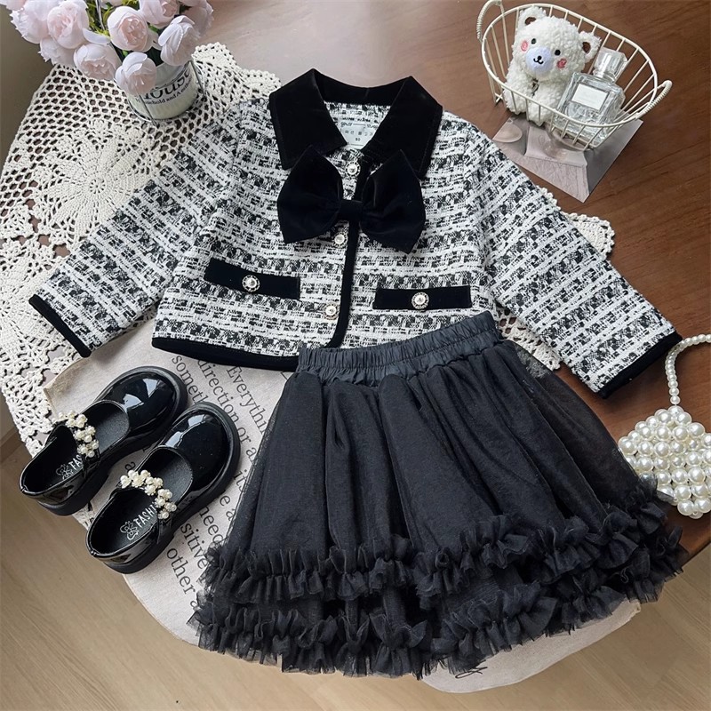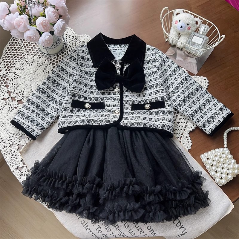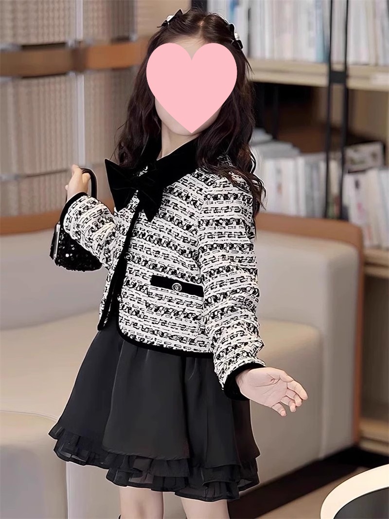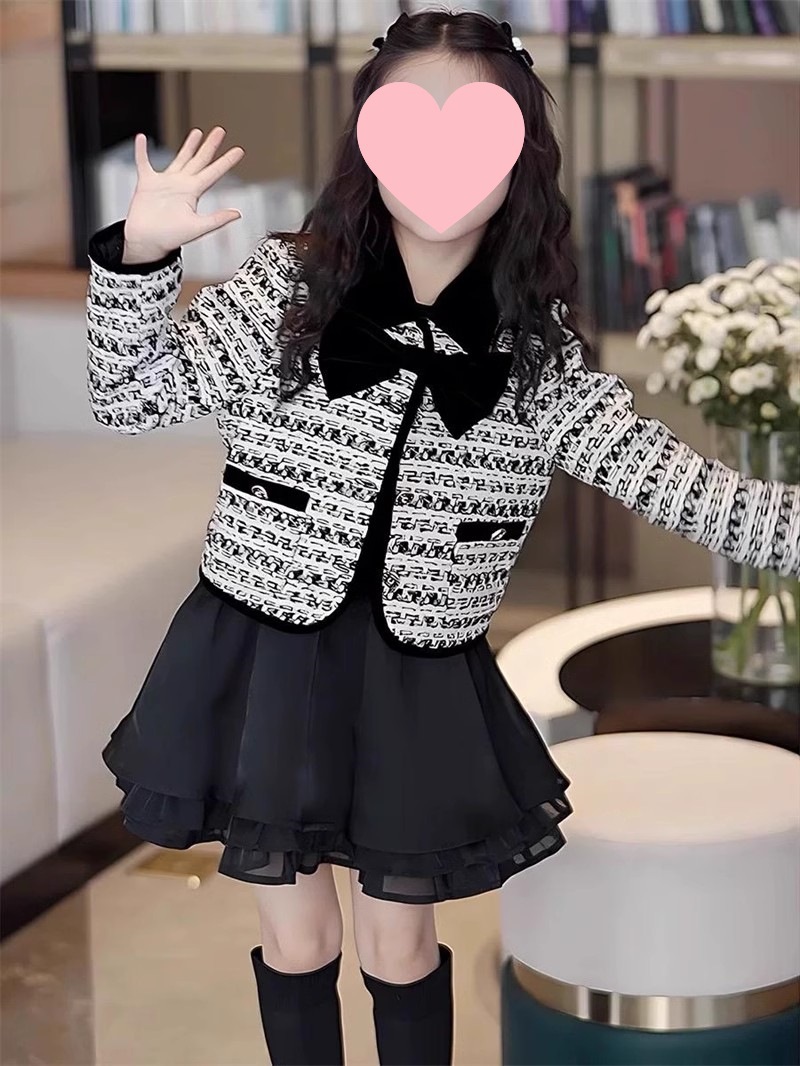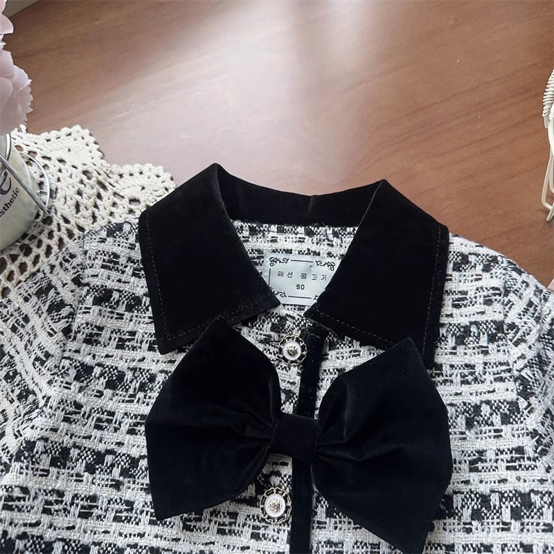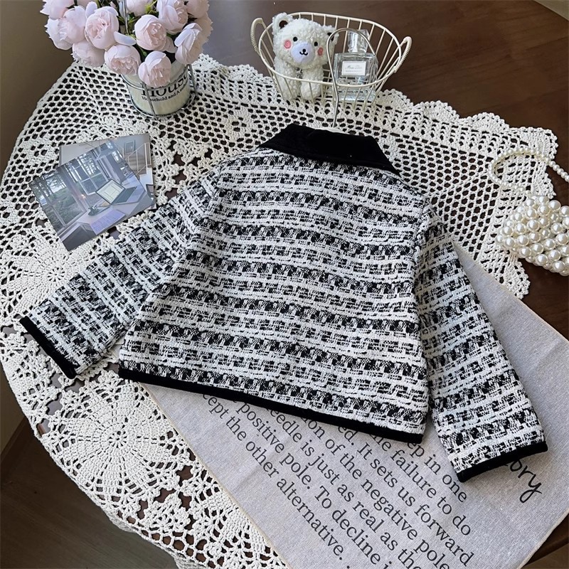소녀 활 샤넬 봄과 가을 자켓 어린이 최고 중소 어린이 격자 무늬 짧은 소녀 코트