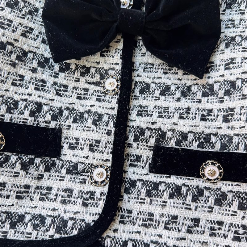 • 흑백 리본 체크 무늬 재킷