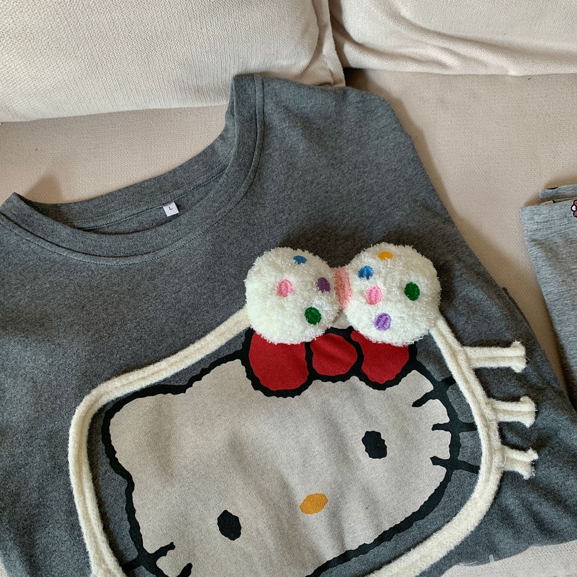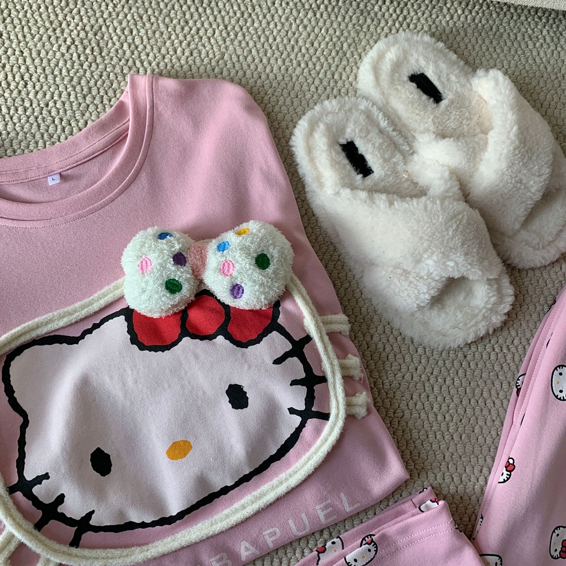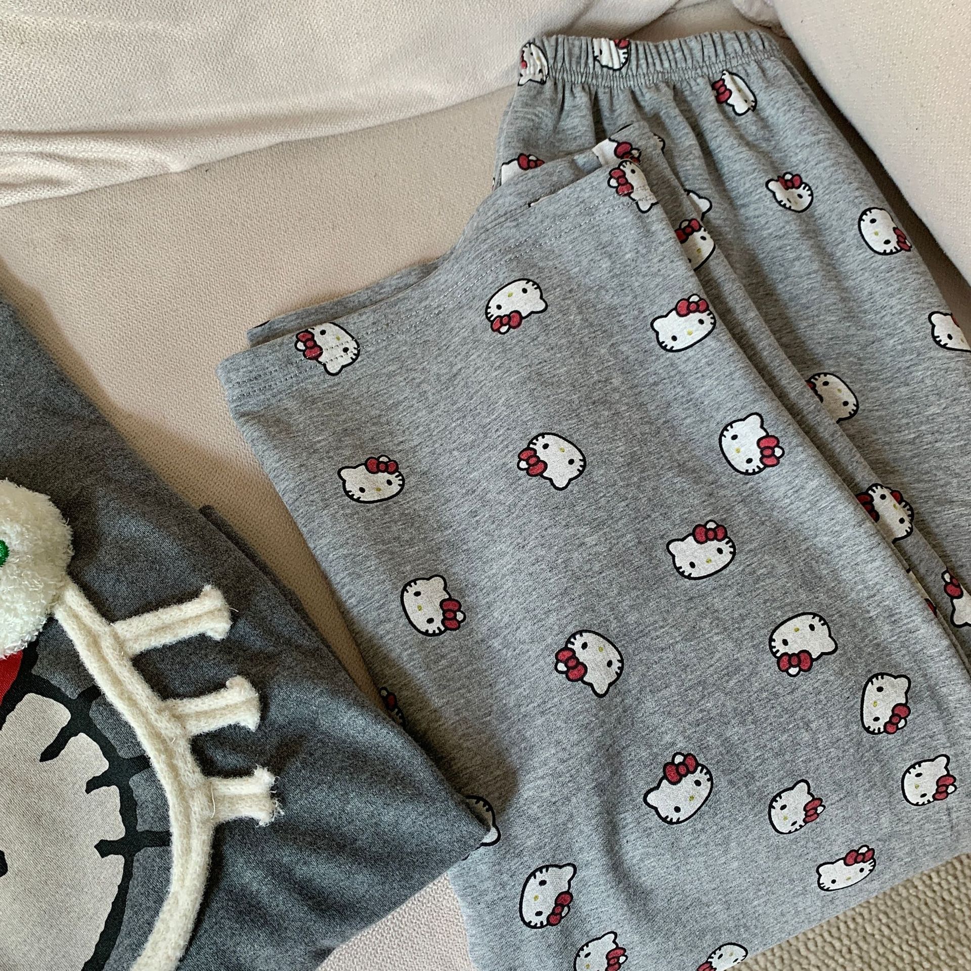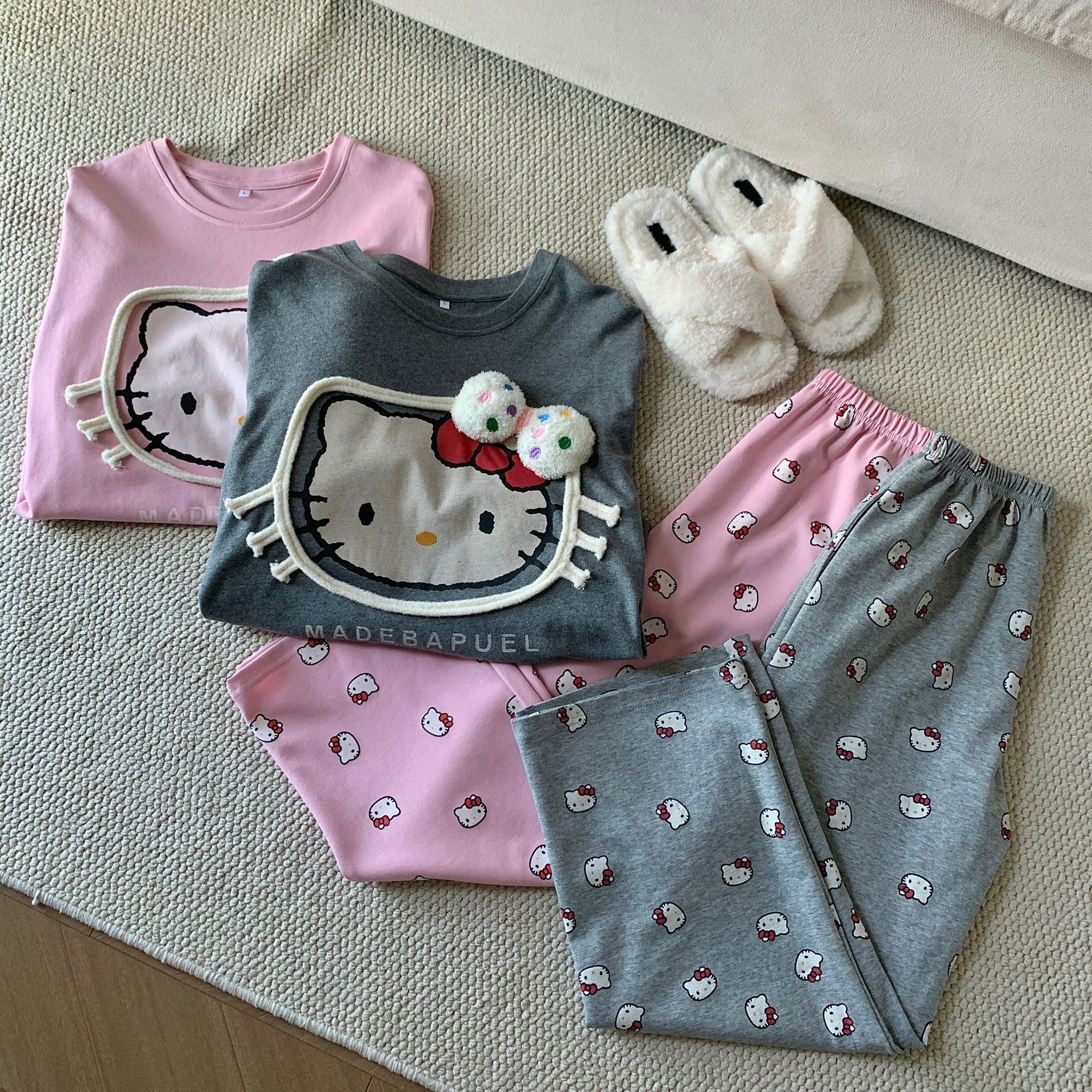잠옷 여성의 가을과 겨울 새로운 달콤한 소녀의 귀여운 헬로 키티 인쇄 긴 소매 바지 외부 착용 세트 홈 옷스토어 가기