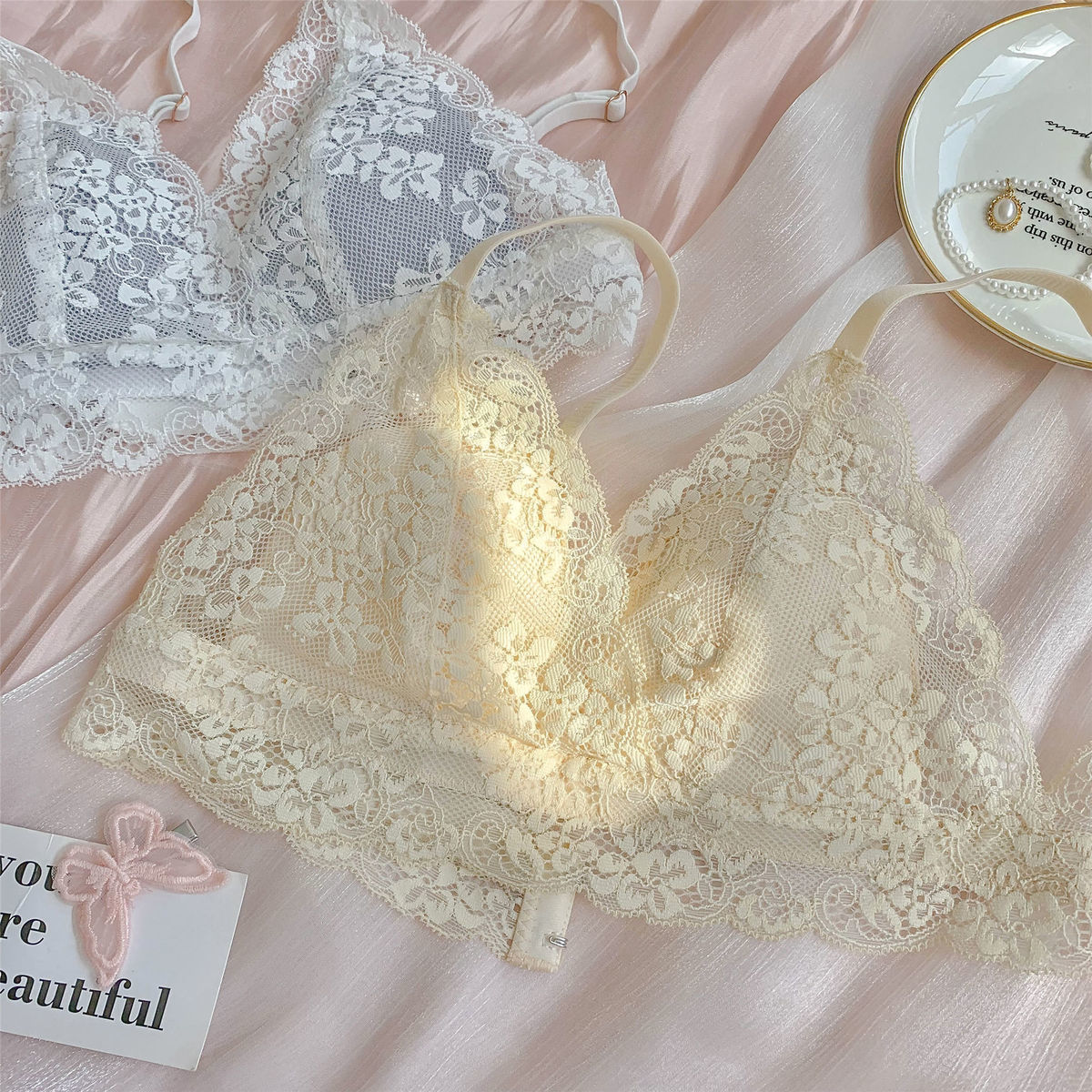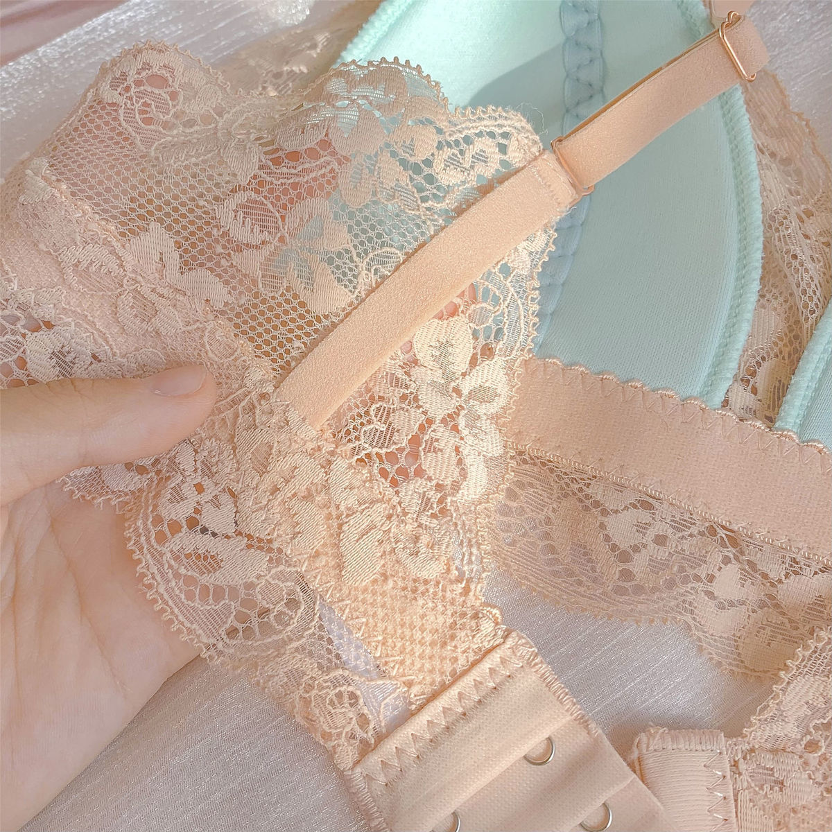 프랑스 스타일 여름 초박형 큰 가슴 작은 브래지어 속옷 여성용 작은 가슴 모임 비 스틸 링 삼각형 컵 브래지어 세트