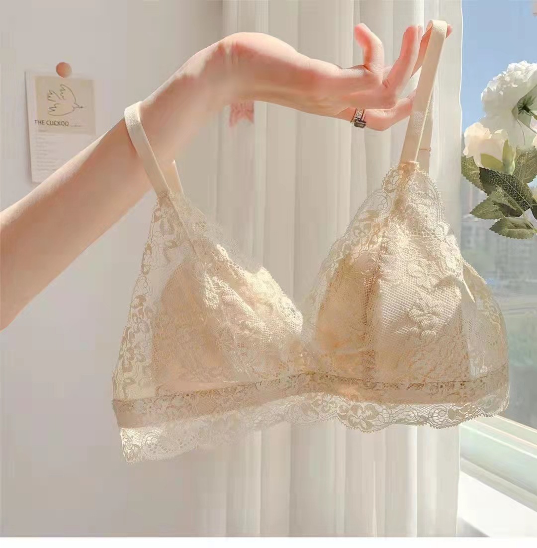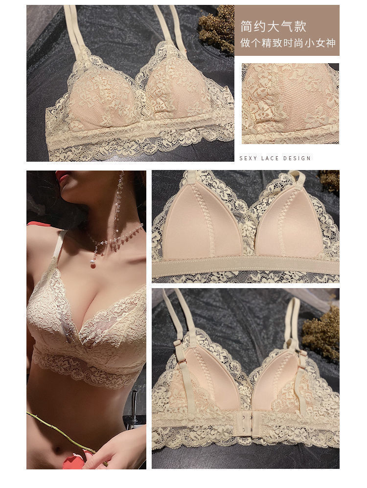 프랑스 스타일 여름 초박형 큰 가슴 작은 브래지어 속옷 여성용 작은 가슴 모임 비 스틸 링 삼각형 컵 브래지어 세트스토어 가기