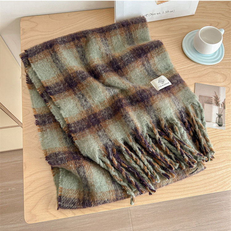 폭발성 Ankora Red Mauhair 크리스마스 격자 무늬 스카프 여성의 겨울 높은 감각 한국 아카데미 스타일 커플 목도리