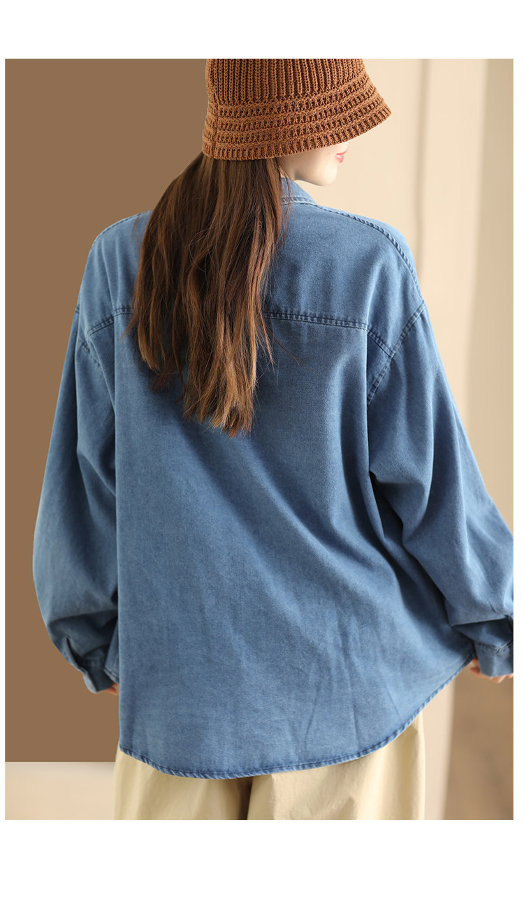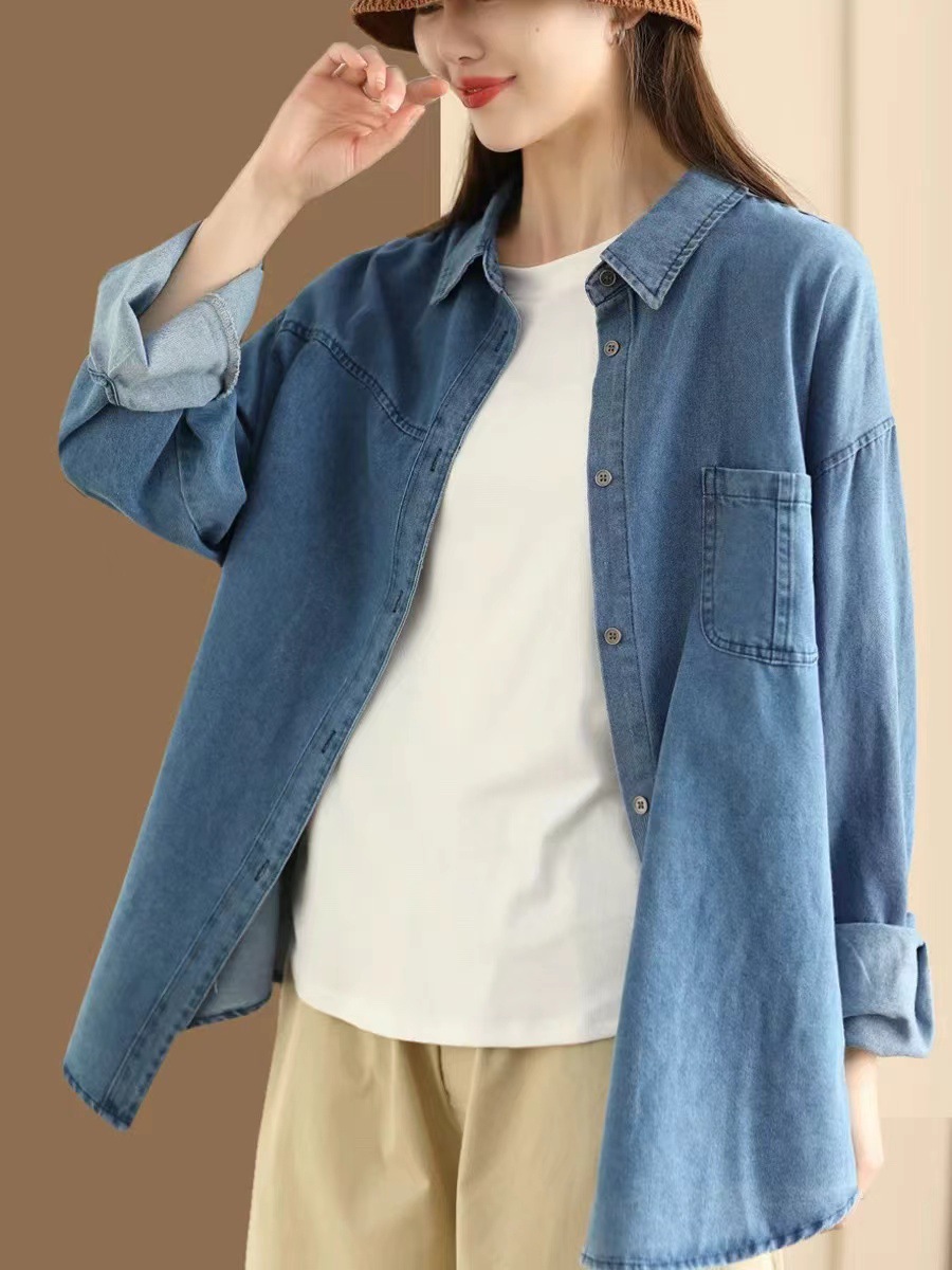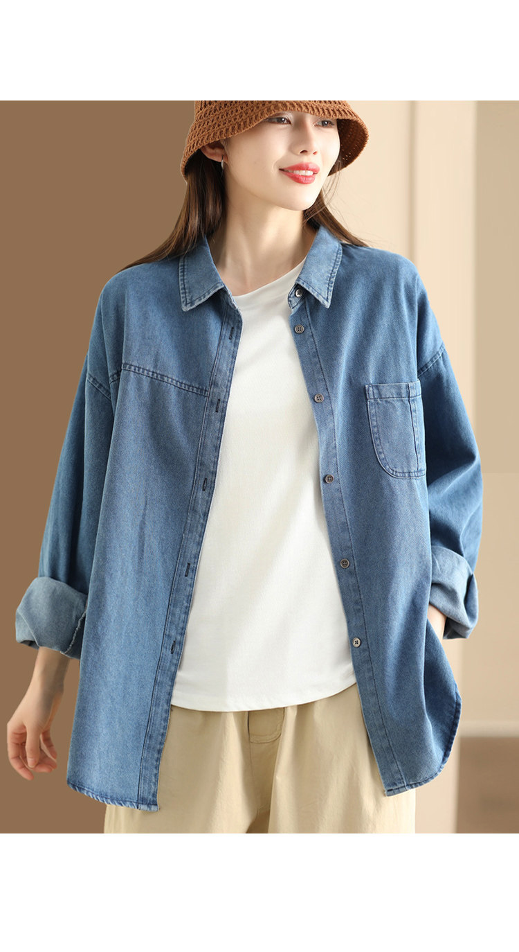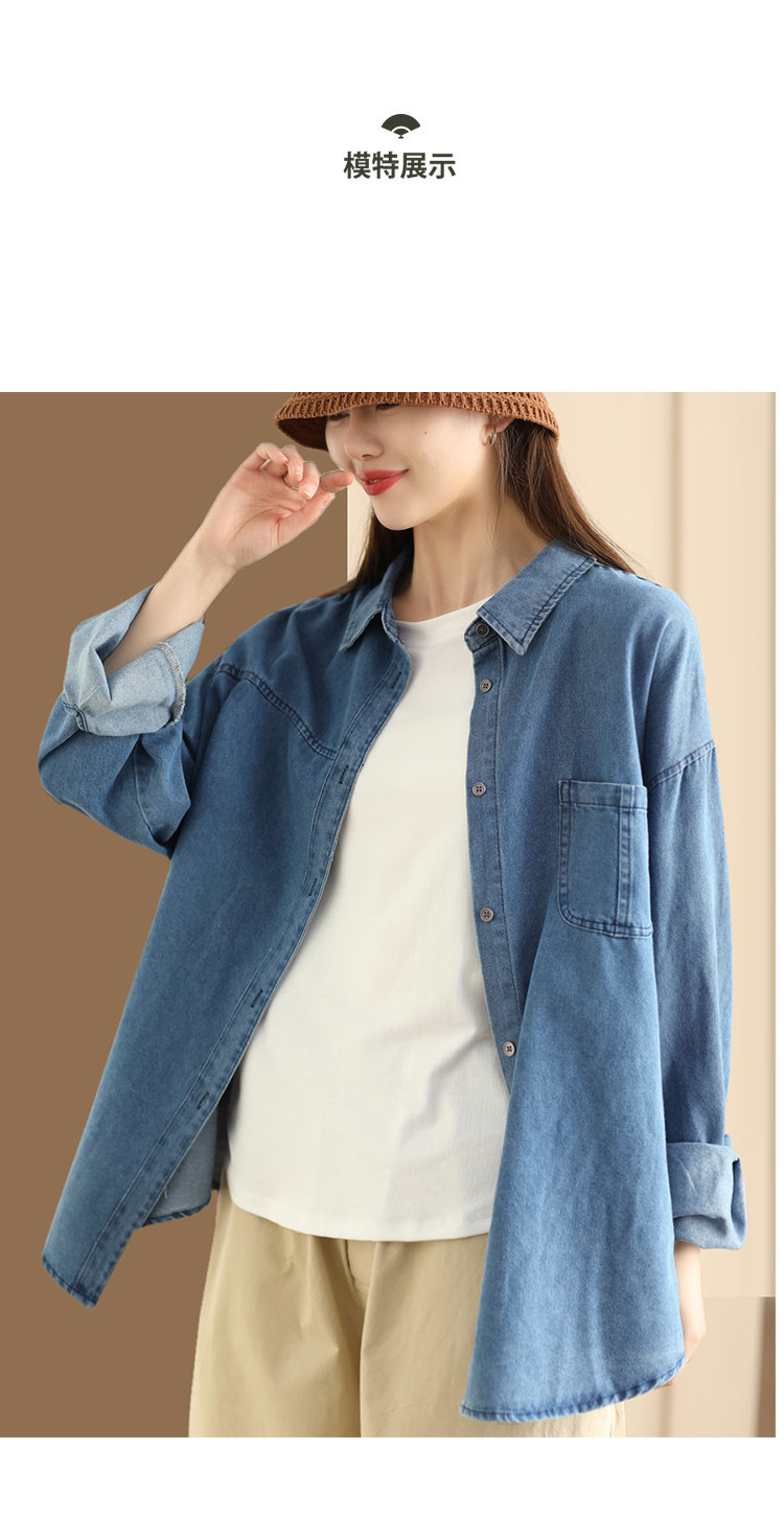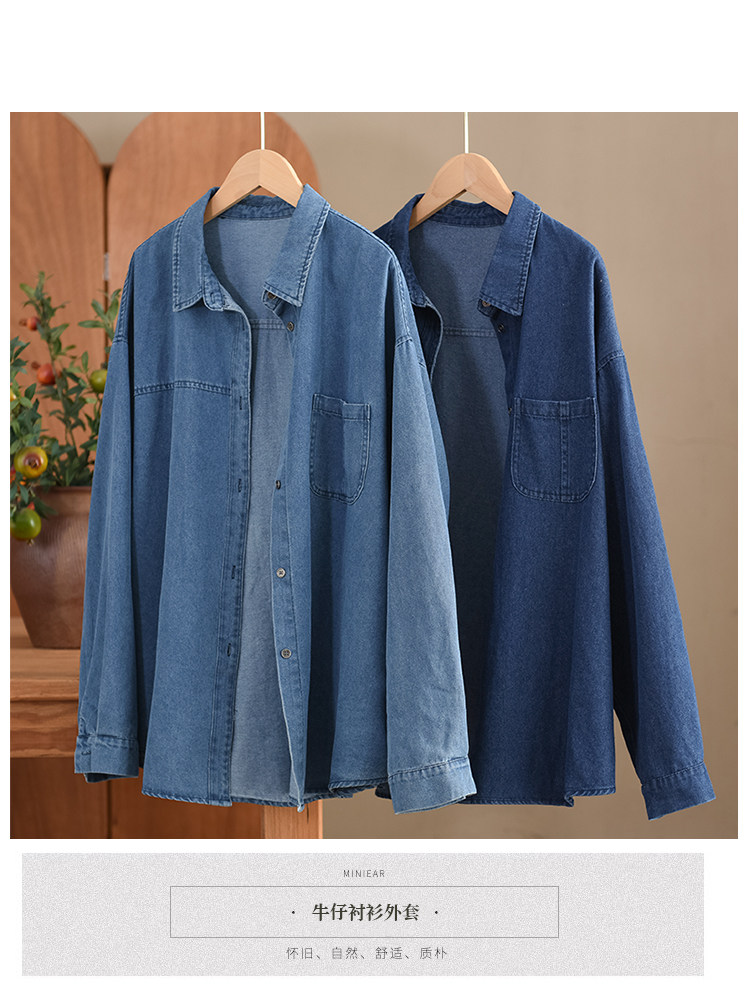 가을 새로운 빈티지 워터 텐셀 데님 셔츠 느슨한 긴 소매 셔츠 재킷 캐주얼 카디건 탑 098