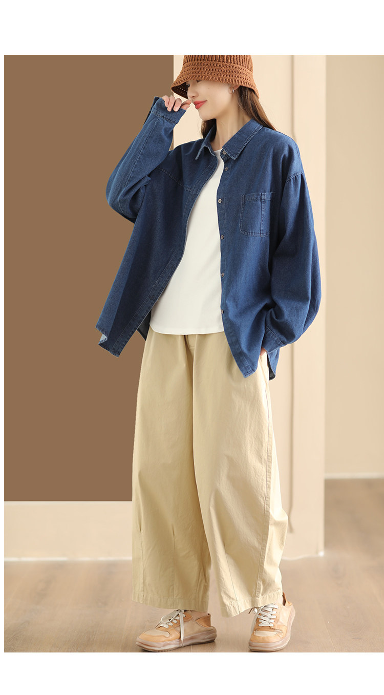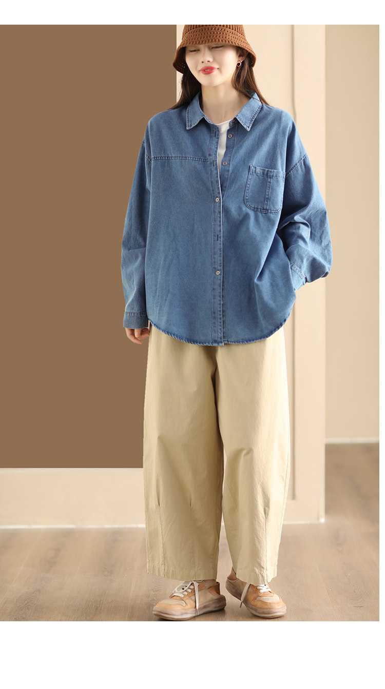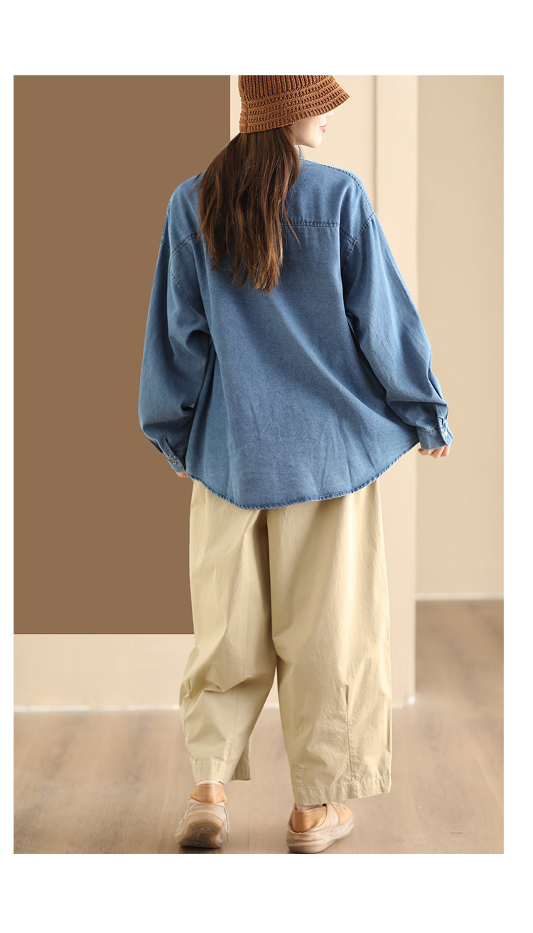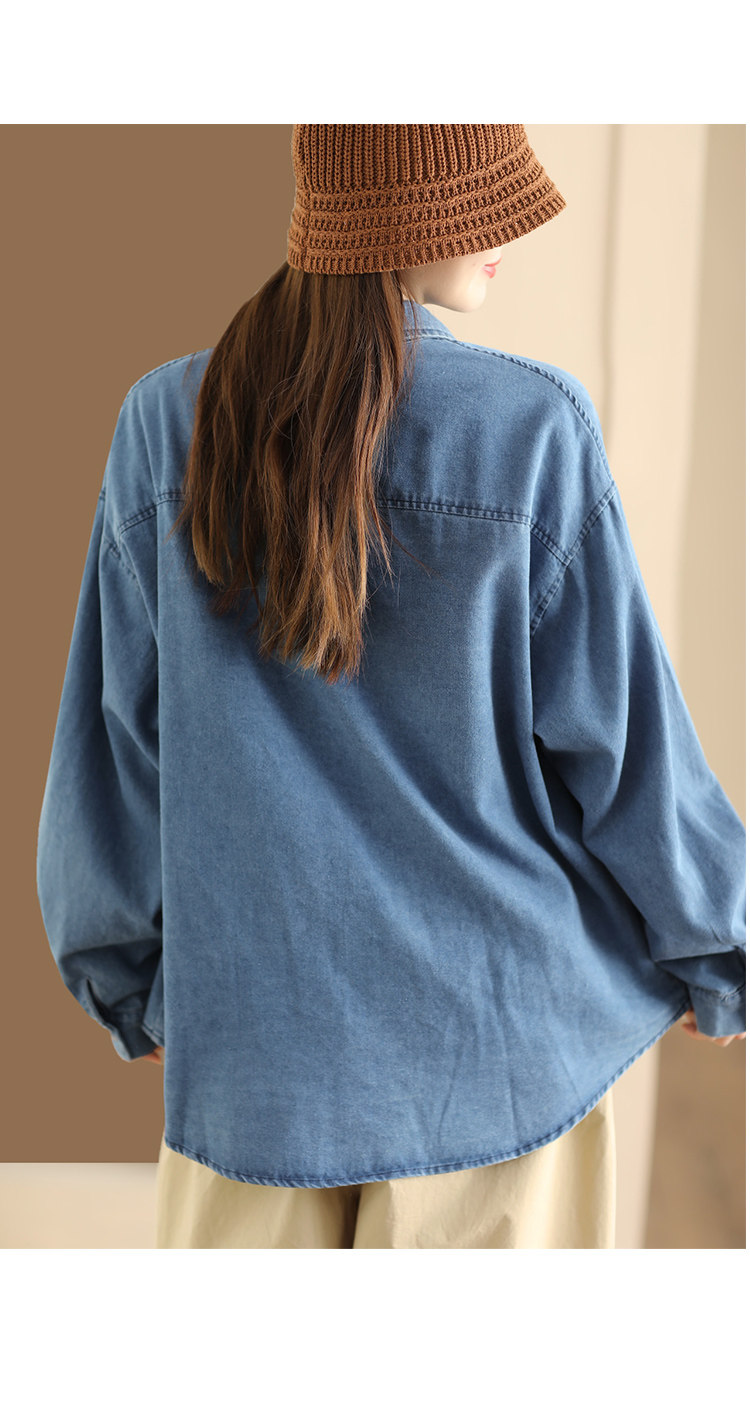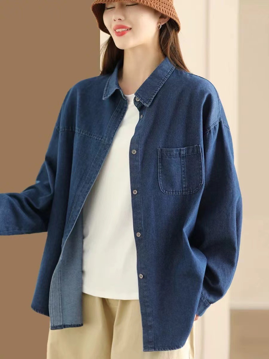 가을 새로운 빈티지 워터 텐셀 데님 셔츠 느슨한 긴 소매 셔츠 재킷 캐주얼 카디건 탑 098