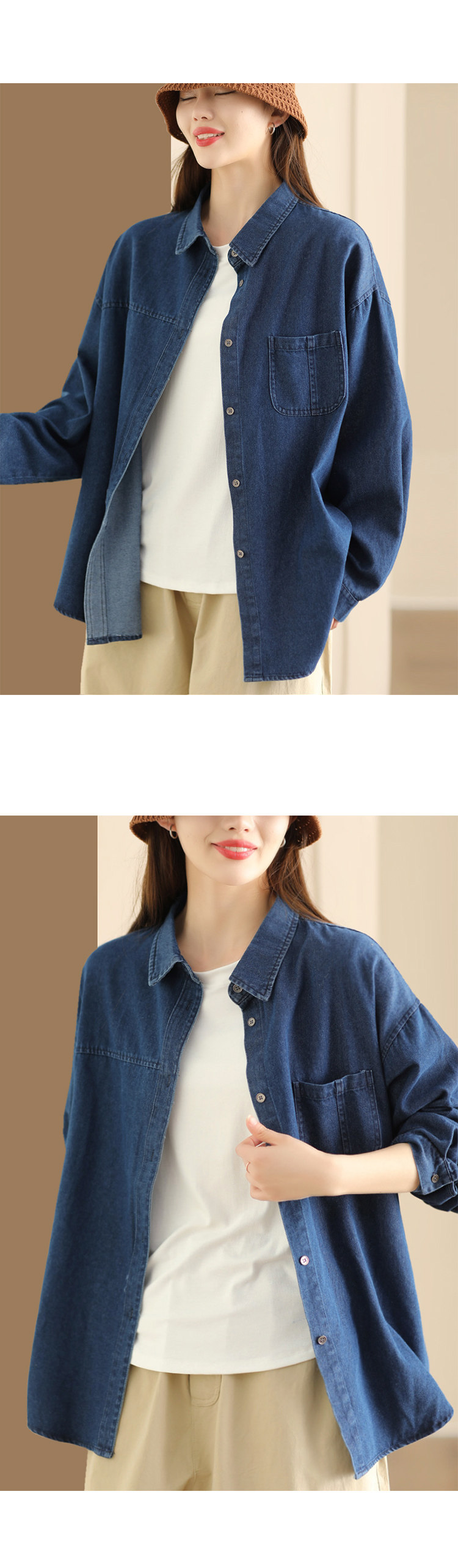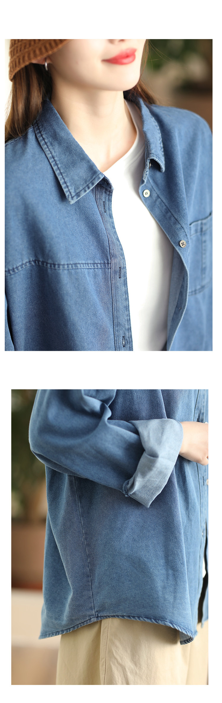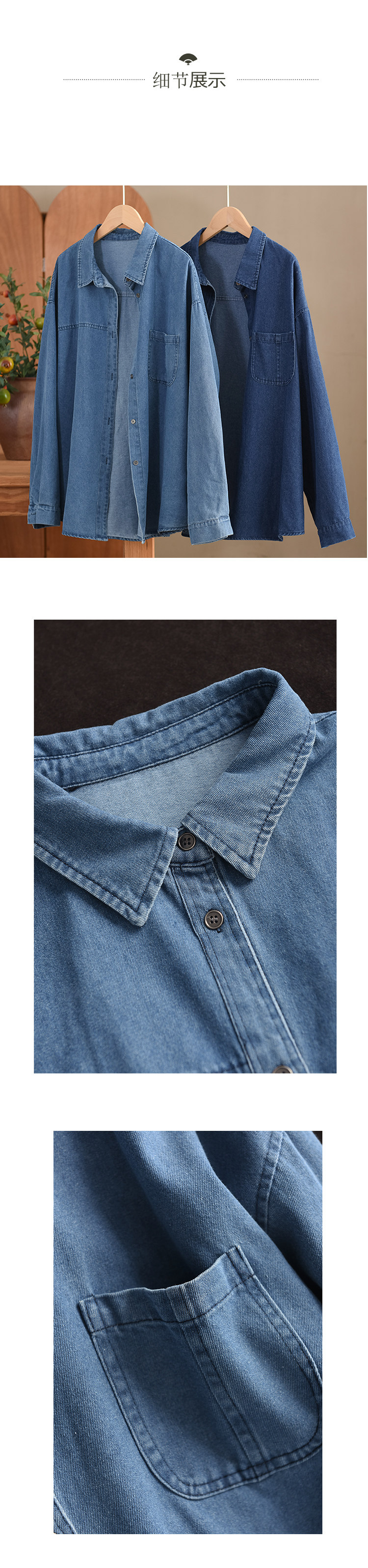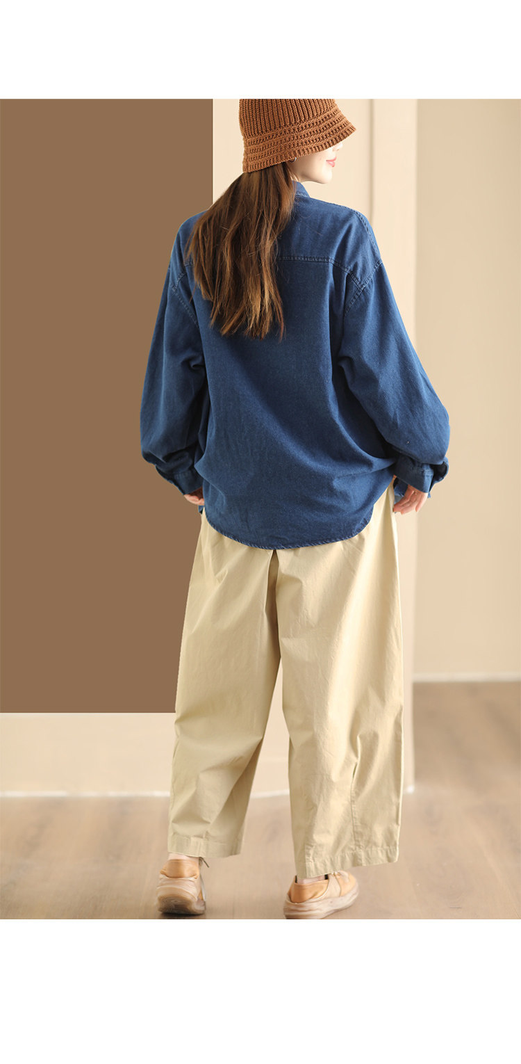 가을 새로운 빈티지 워터 텐셀 데님 셔츠 느슨한 긴 소매 셔츠 재킷 캐주얼 카디건 탑 098