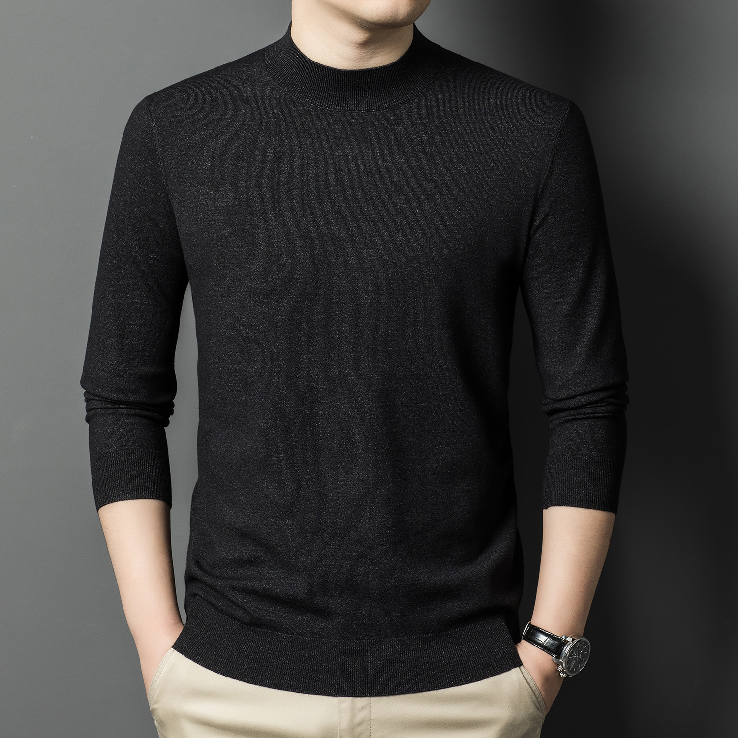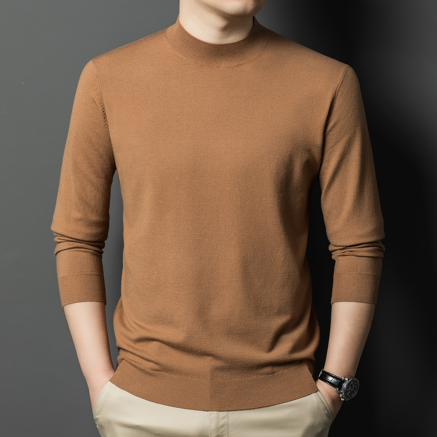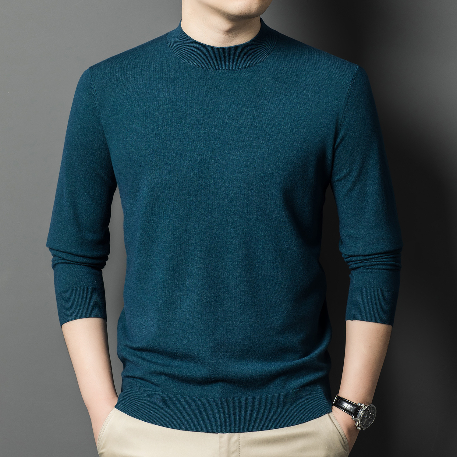 가을과 겨울 새로운 솔리드 컬러 긴팔 남성 세미 하이 칼라 베이스 니트 전나무 슬림 핏 패션 캐주얼 스웨터