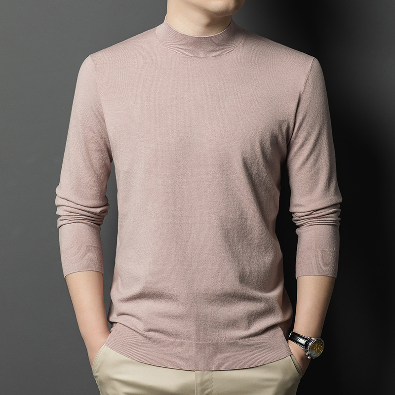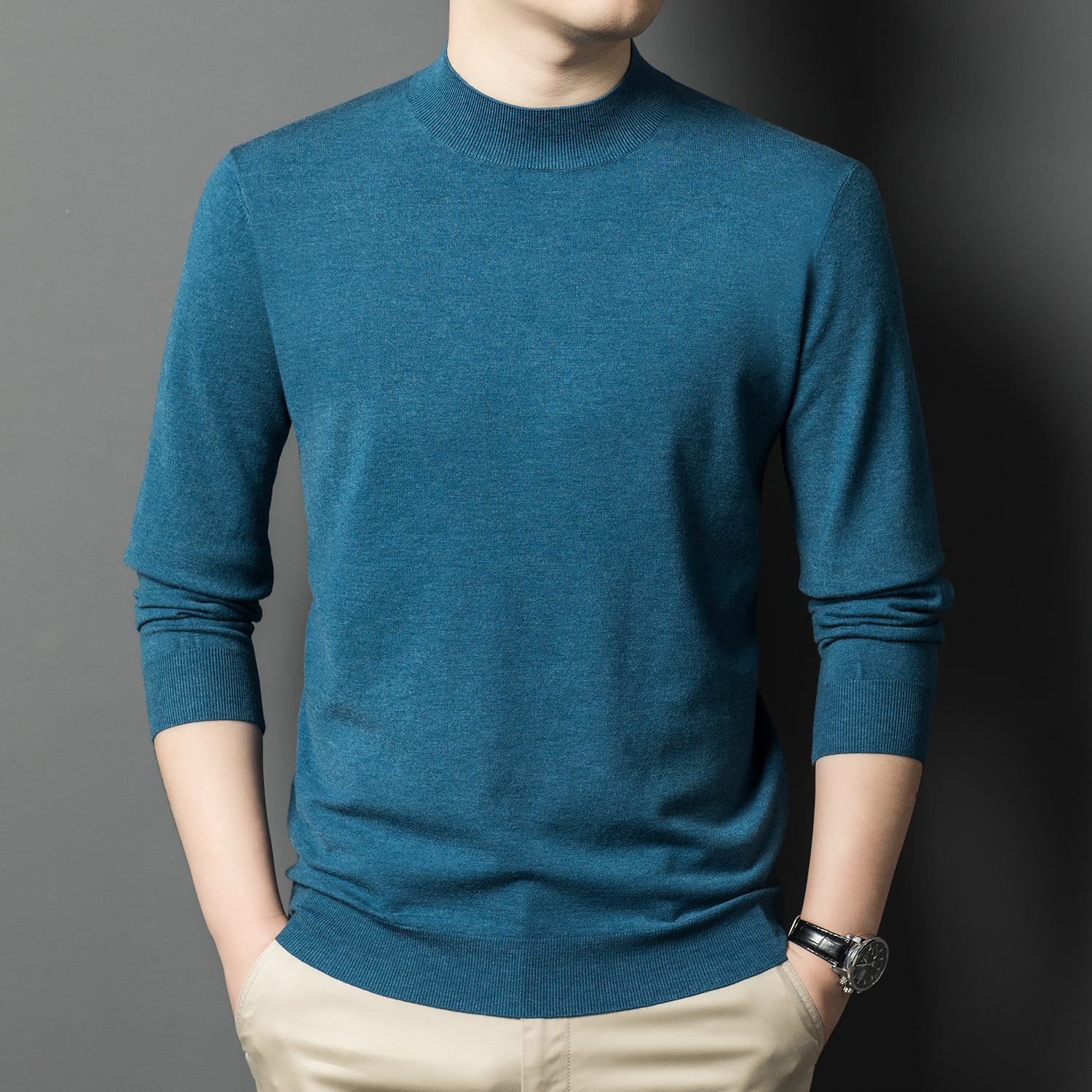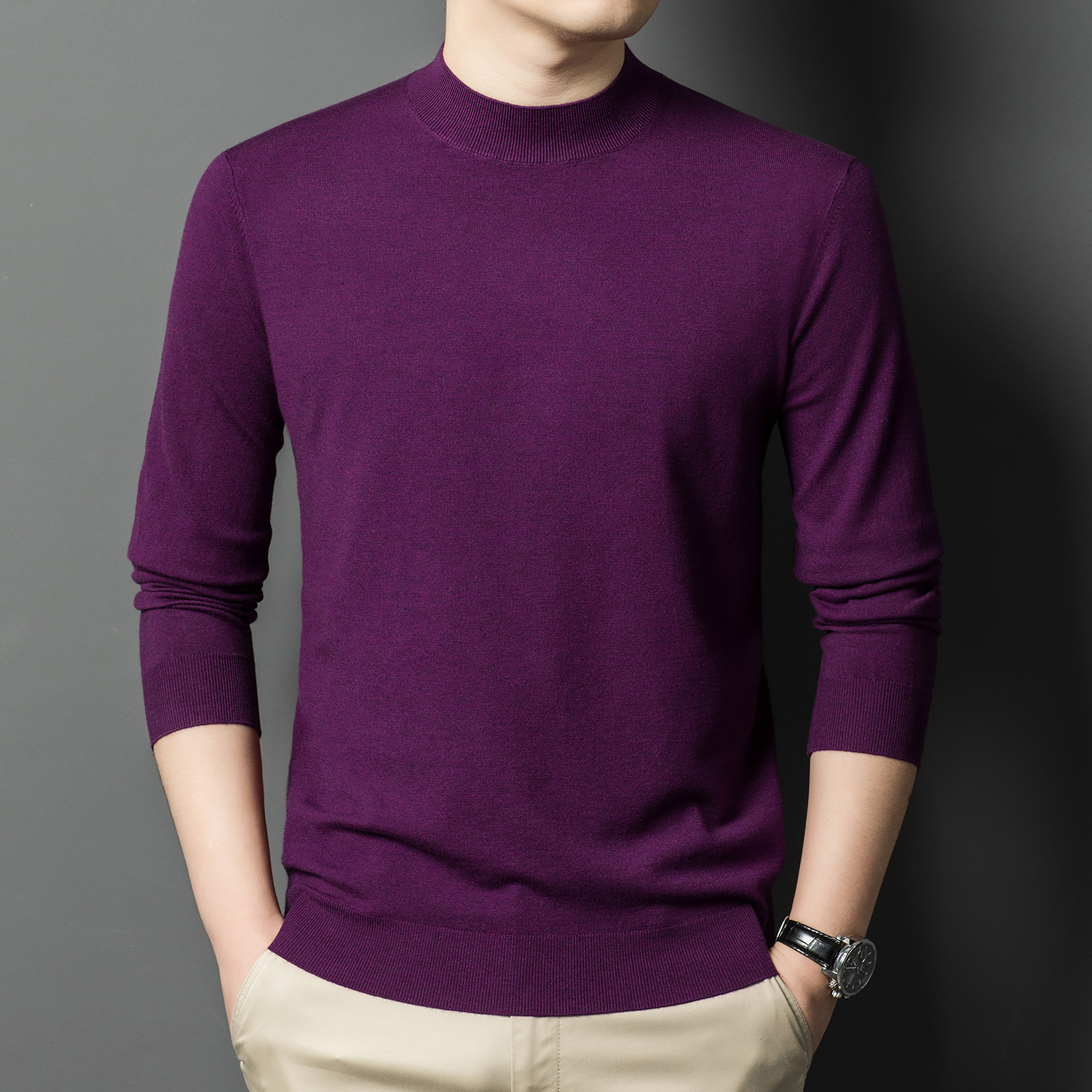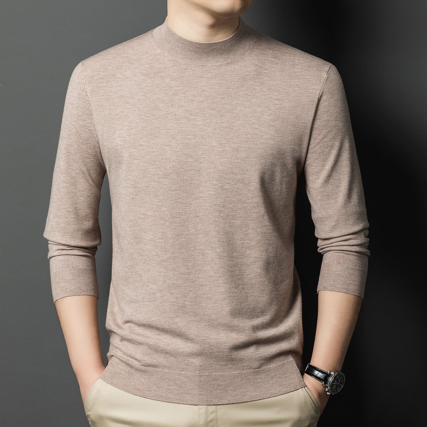 가을과 겨울 새로운 솔리드 컬러 긴팔 남성 세미 하이 칼라 베이스 니트 전나무 슬림 핏 패션 캐주얼 스웨터