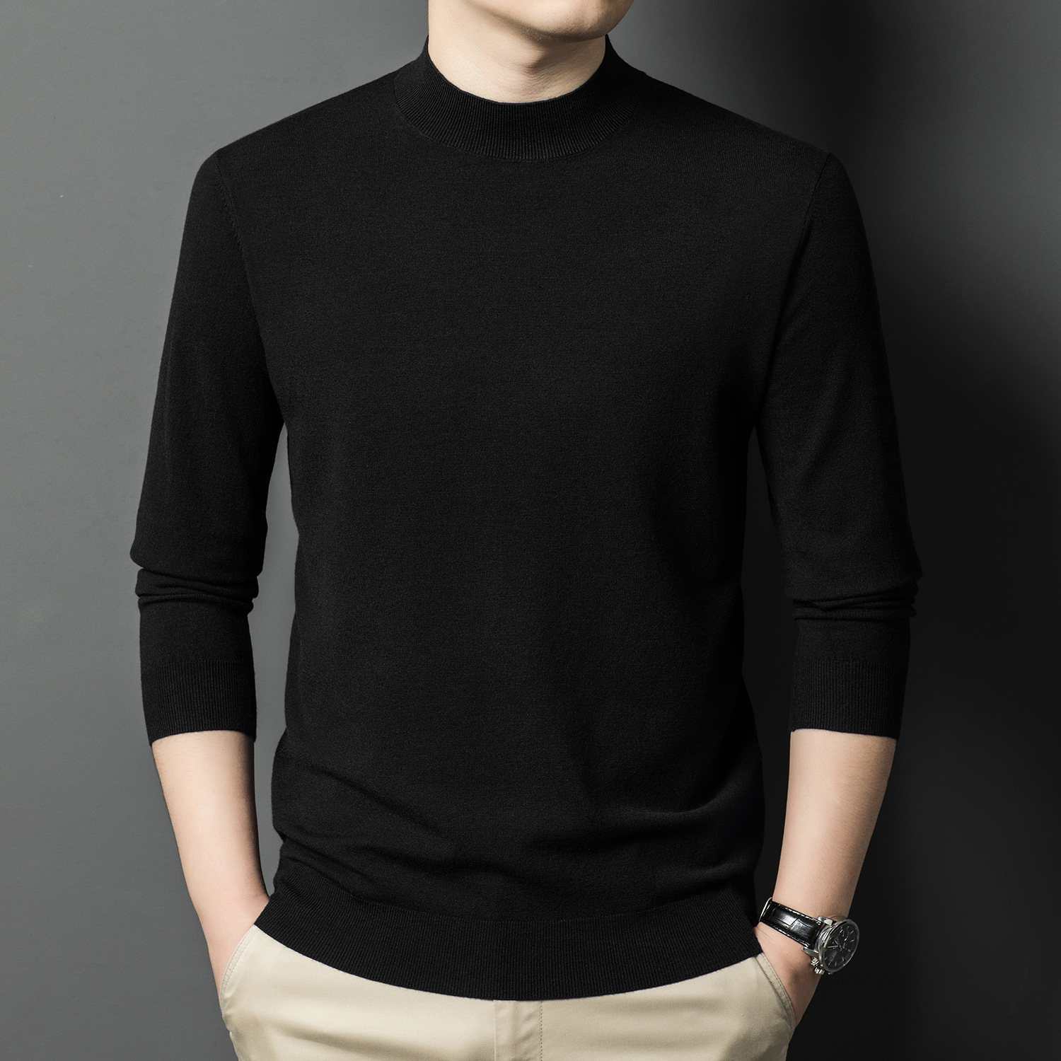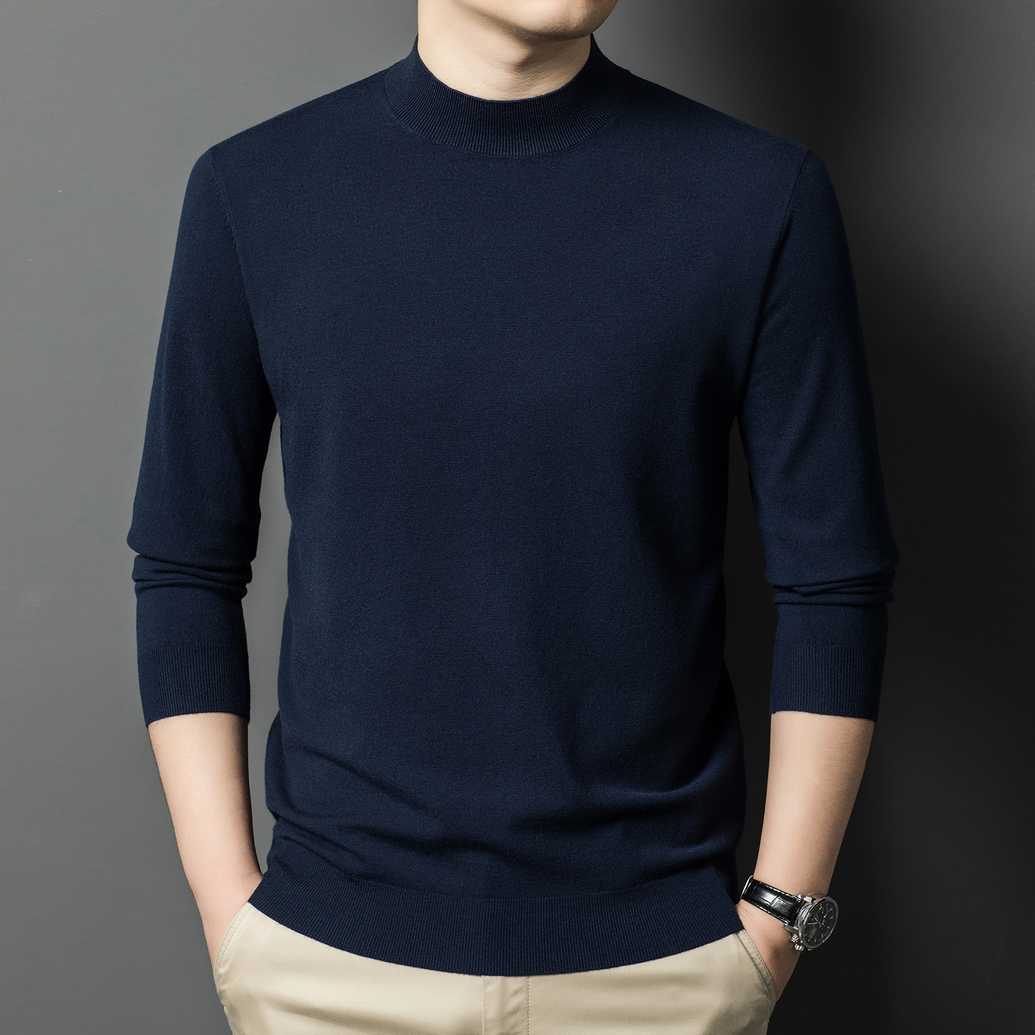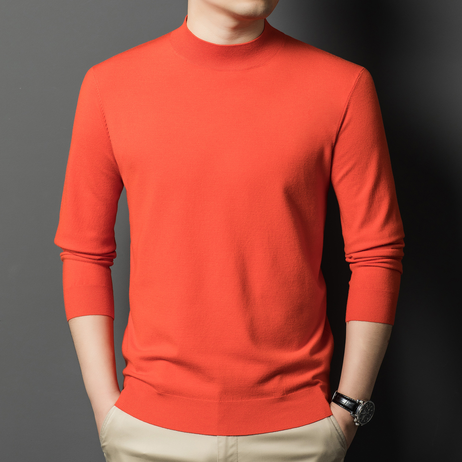 가을과 겨울 새로운 솔리드 컬러 긴팔 남성 세미 하이 칼라 베이스 니트 전나무 슬림 핏 패션 캐주얼 스웨터스토어 가기