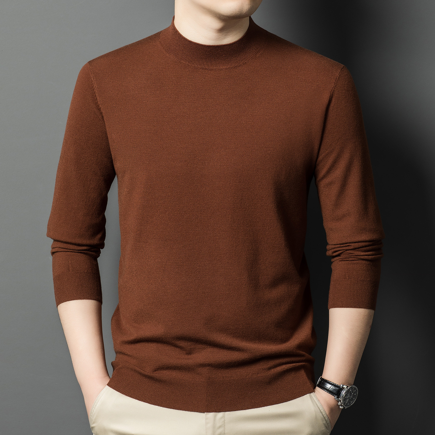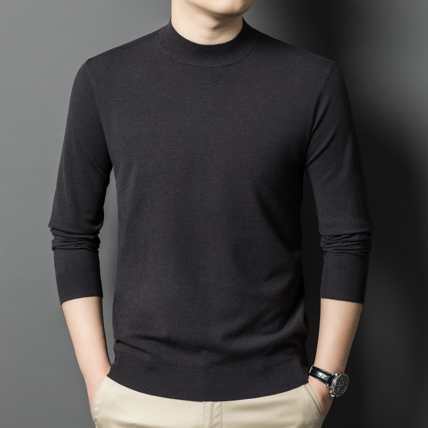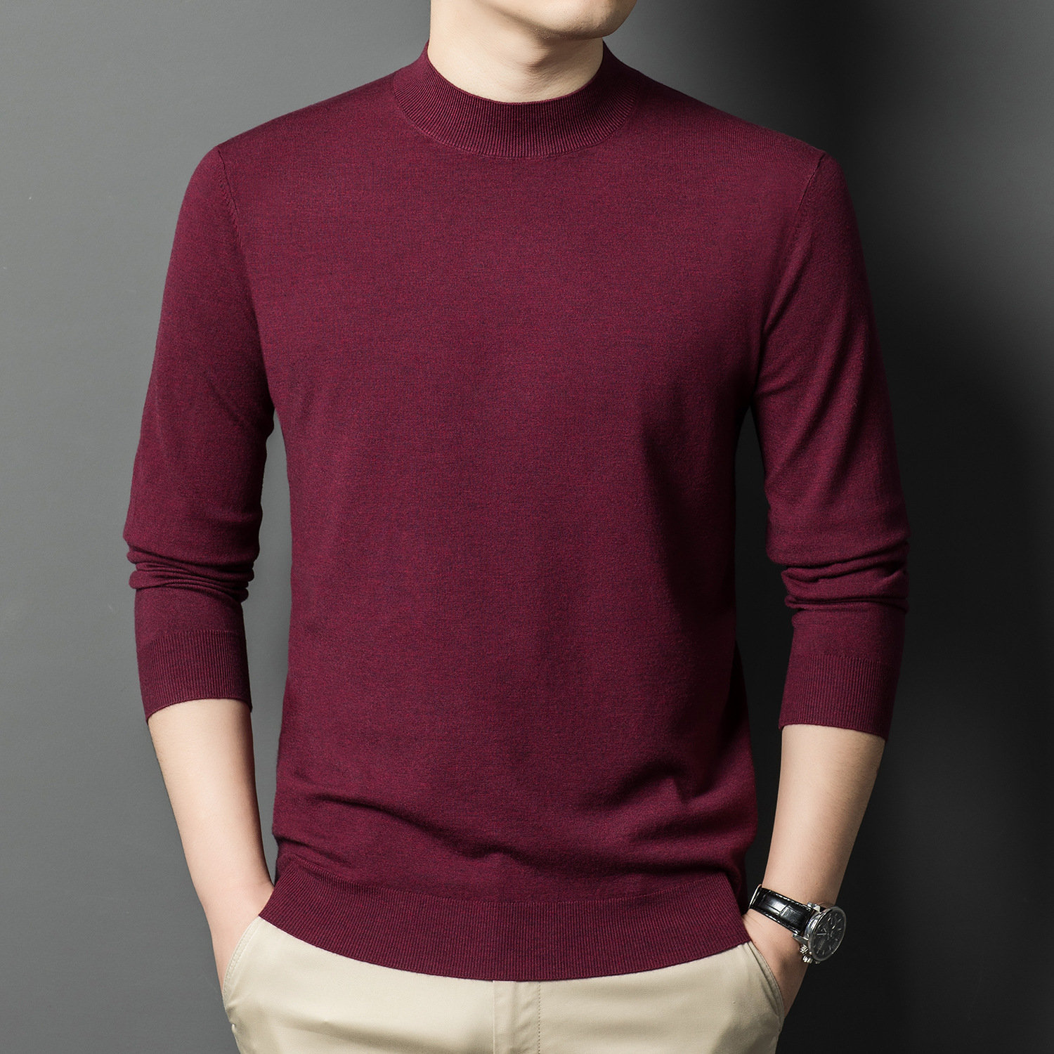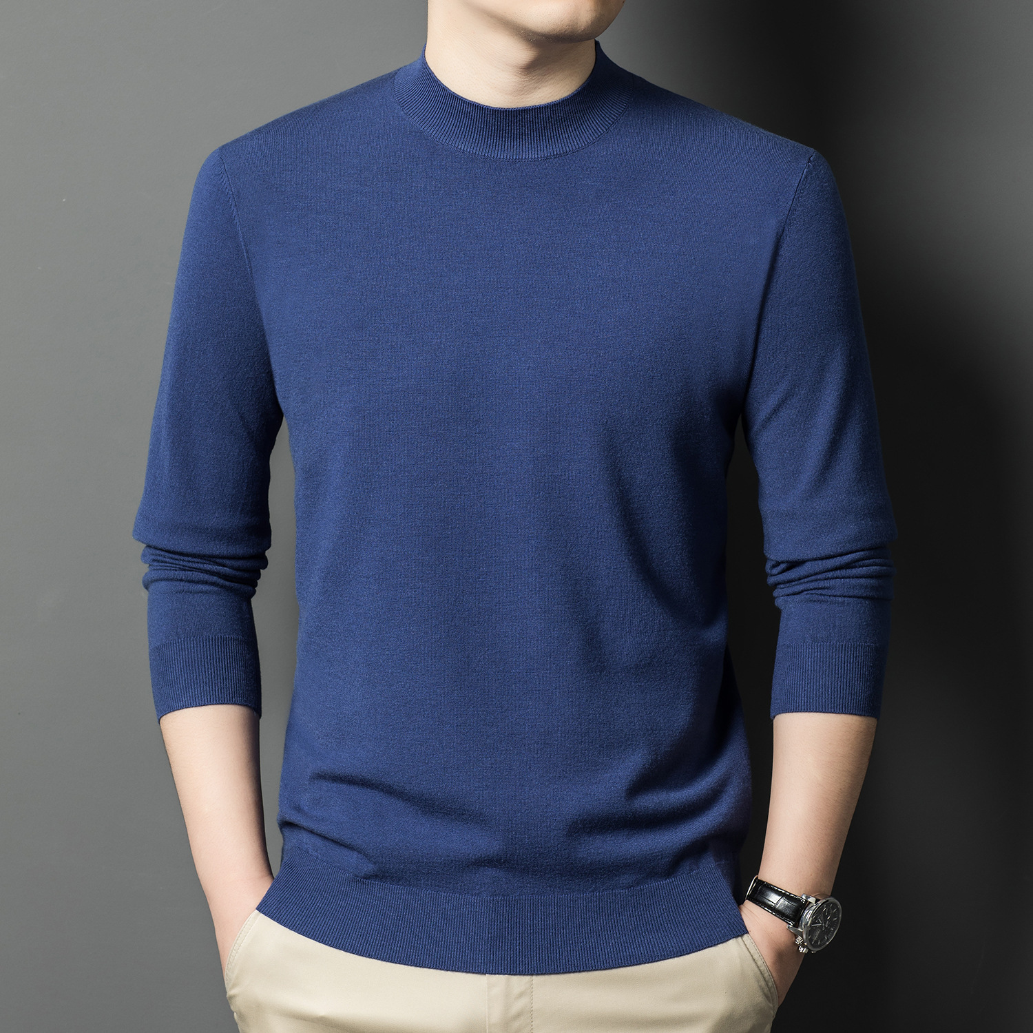가을과 겨울 새로운 솔리드 컬러 긴팔 남성 세미 하이 칼라 베이스 니트 전나무 슬림 핏 패션 캐주얼 스웨터스토어 가기