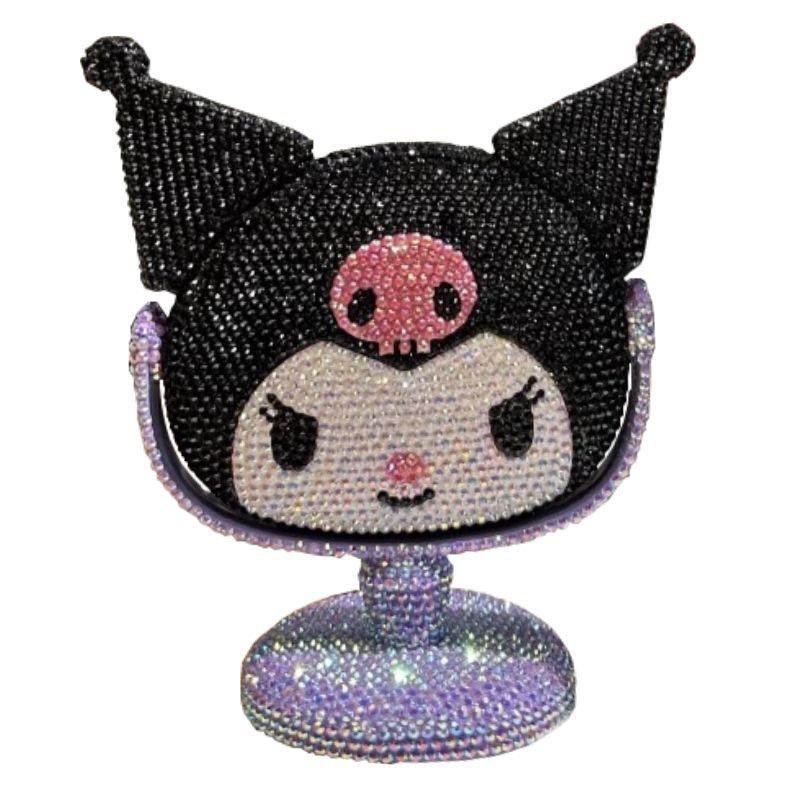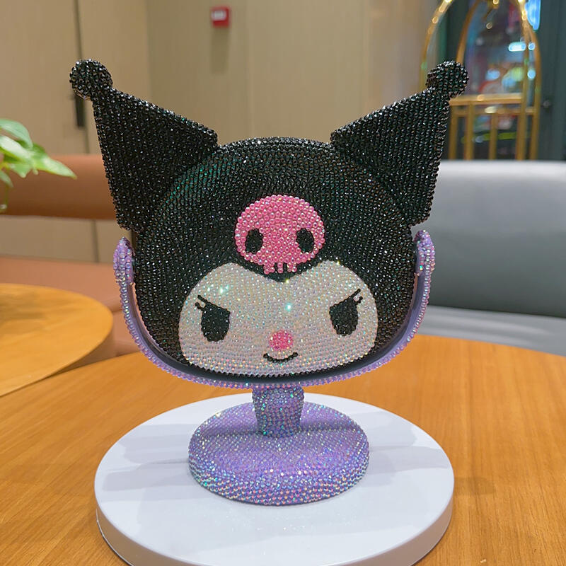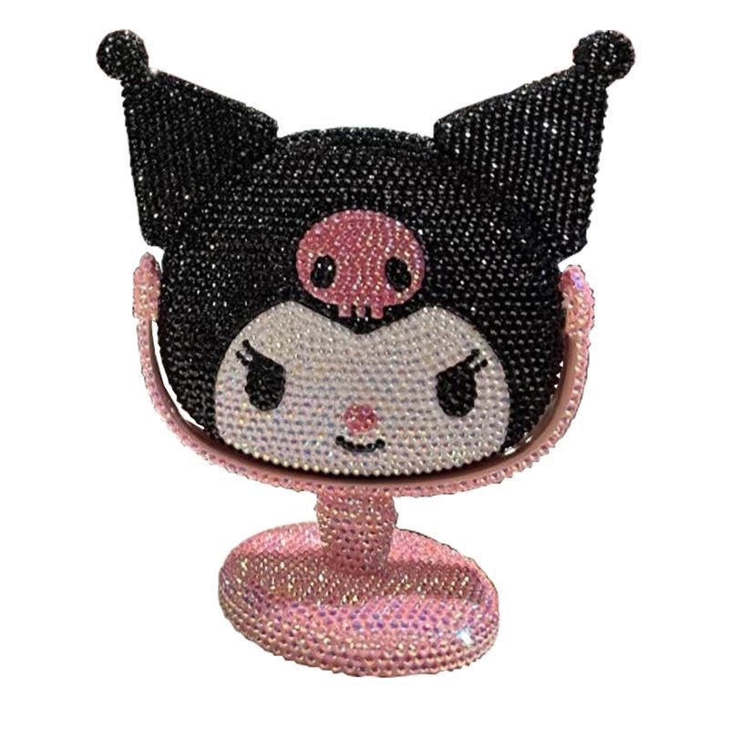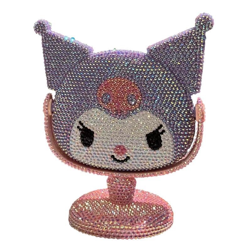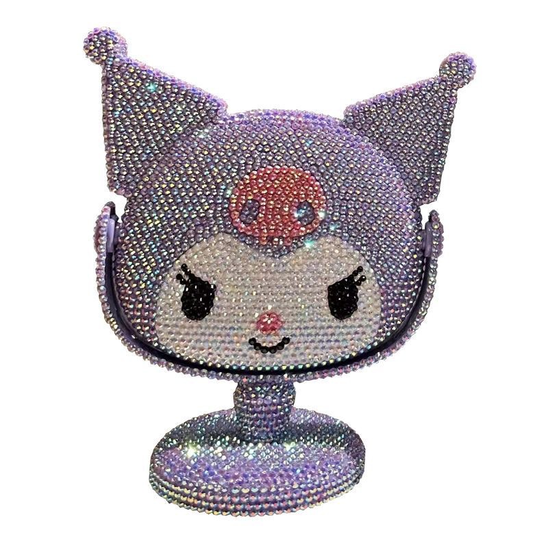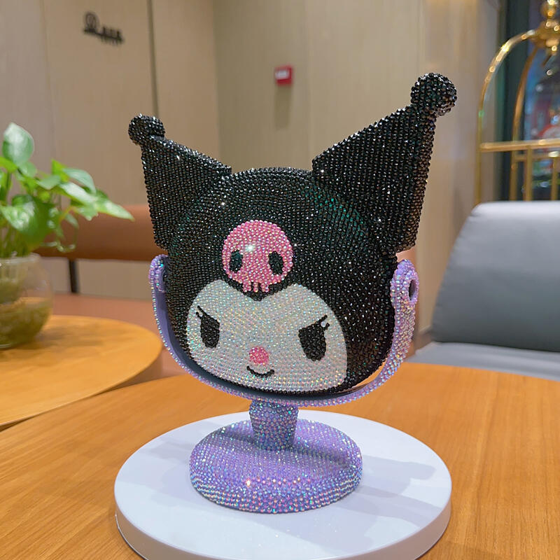 새로운 다이아몬드로 장식 된 Kulomi 스타일 데스크탑 미러 여성 침실 데스크탑 화장품 거울 귀여운 만화 장식품 단면 거울